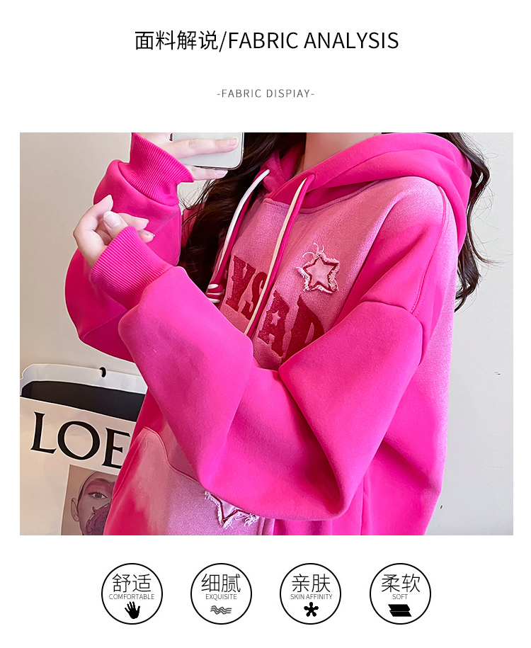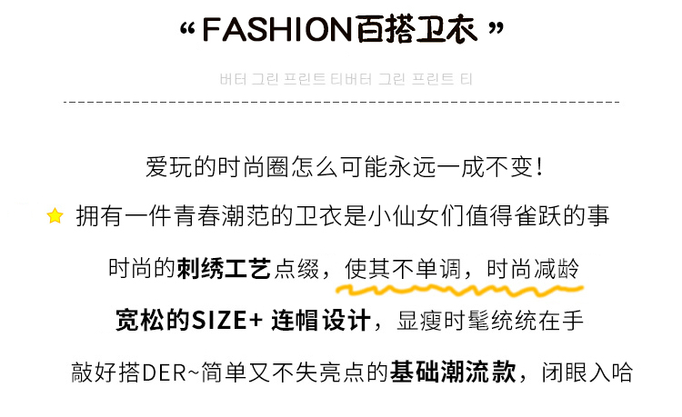 RM33189#韩版宽松华棉复合连帽字母刺绣大码薄款卫衣女