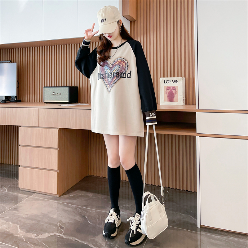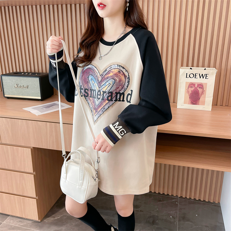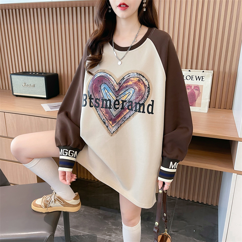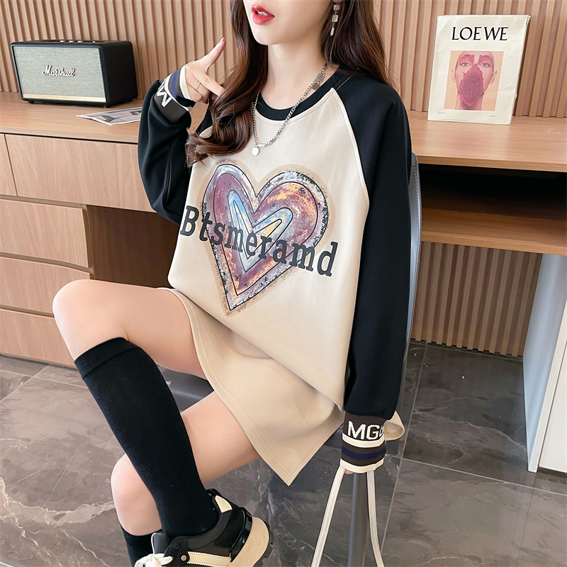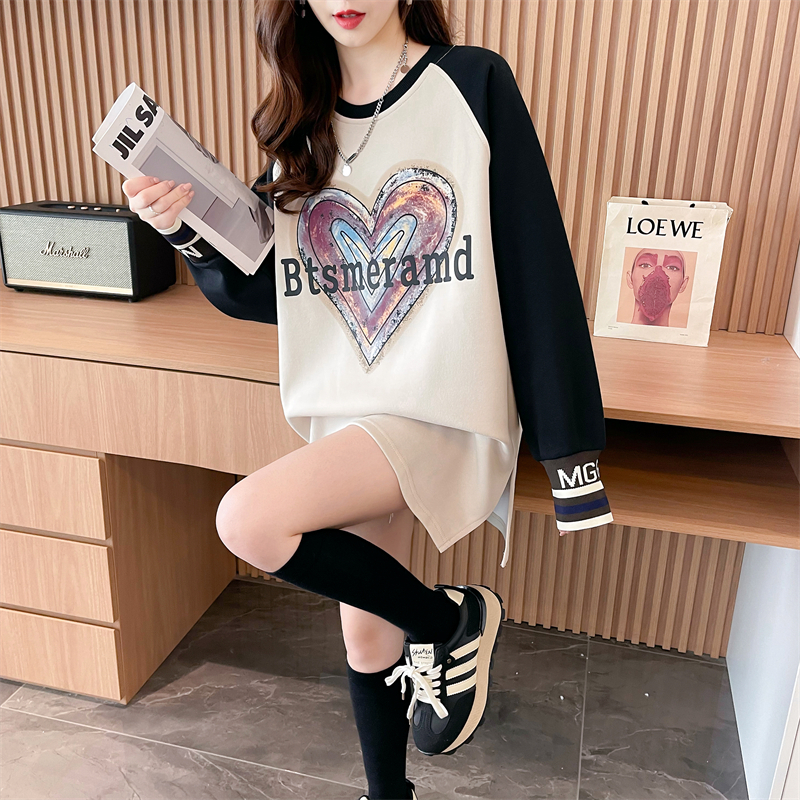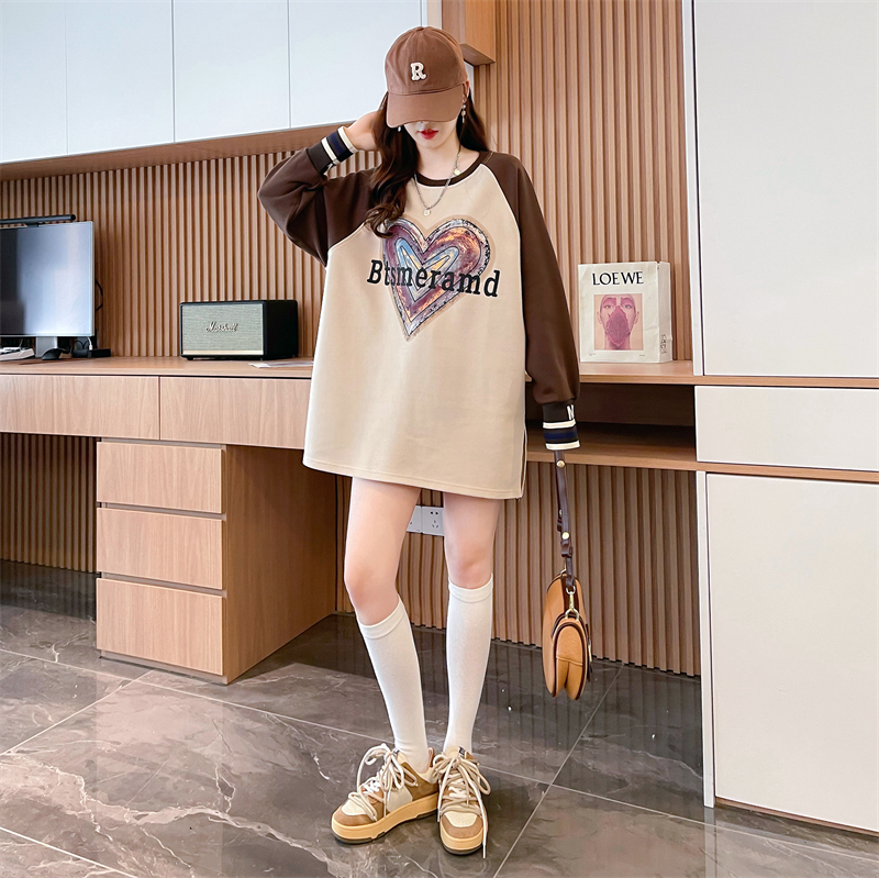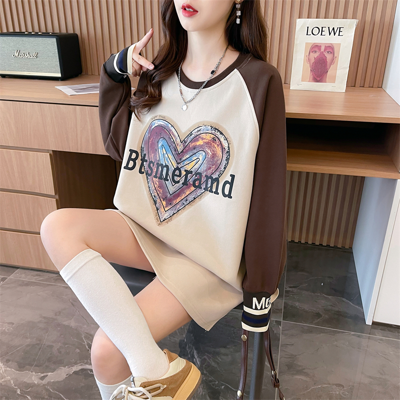 RM33193#新款 宽松双面德绒圆领拼接长袖打底衫T恤女