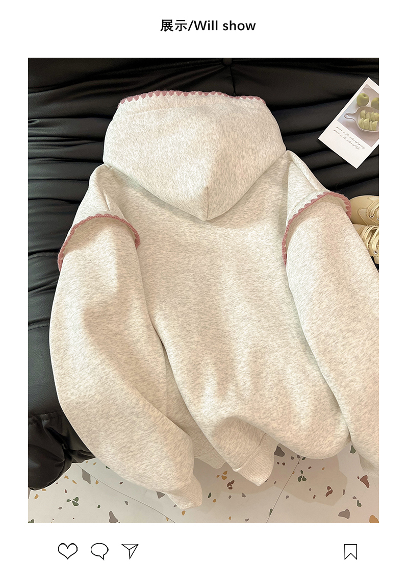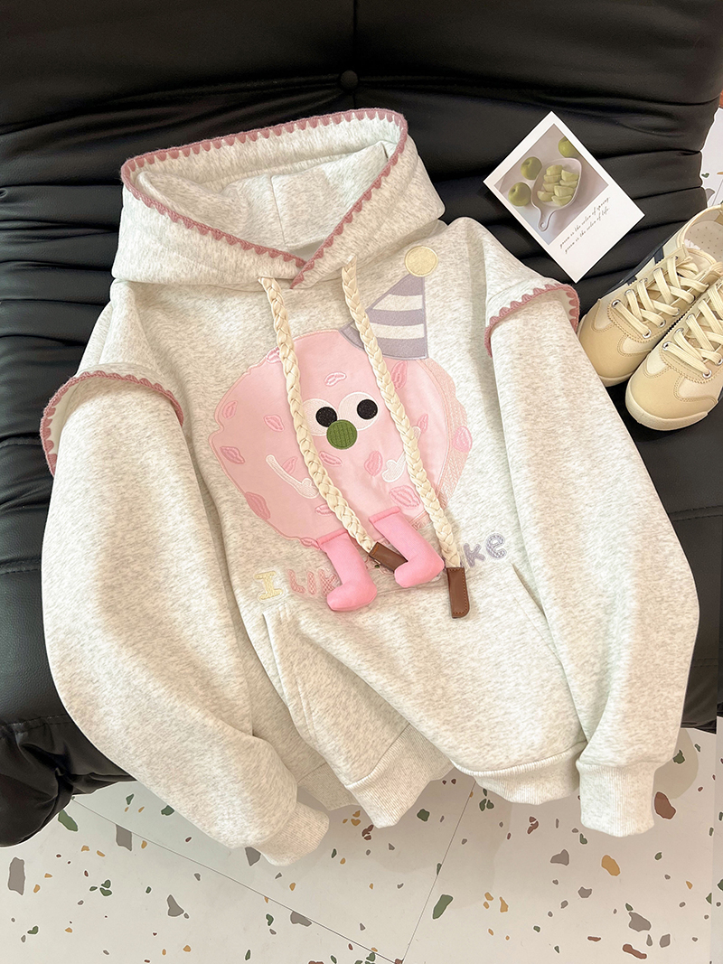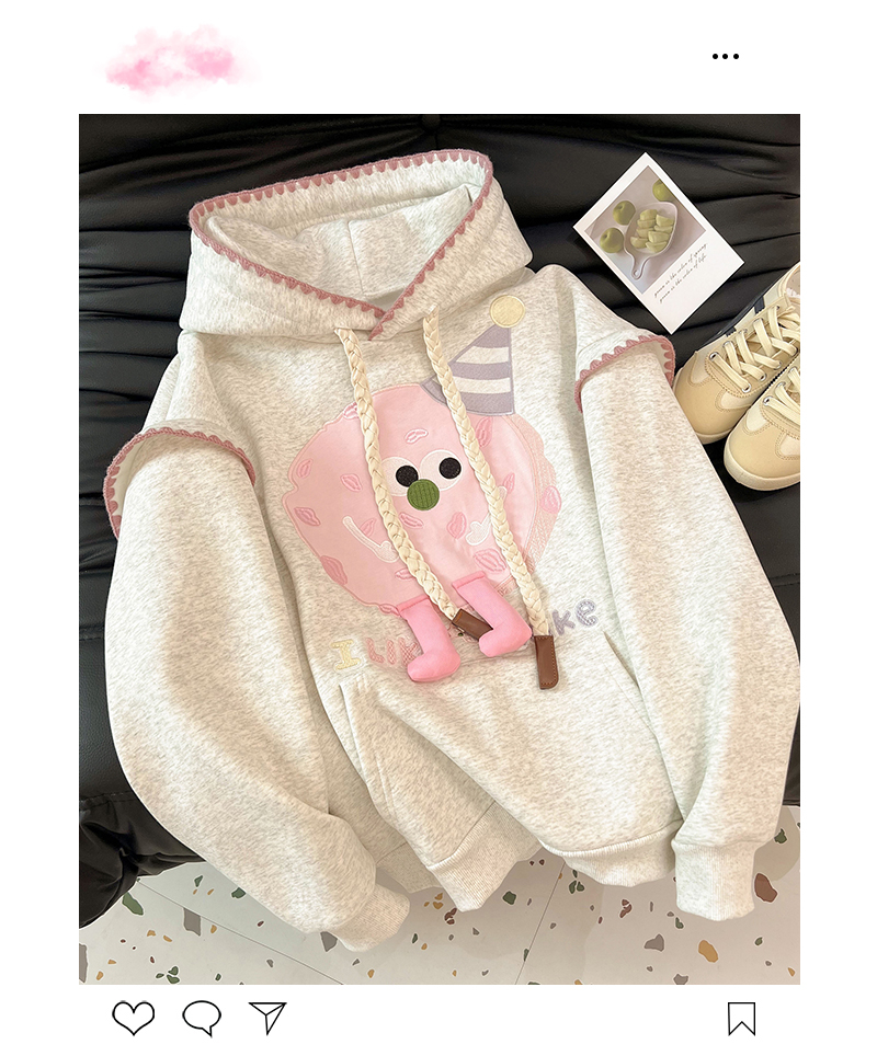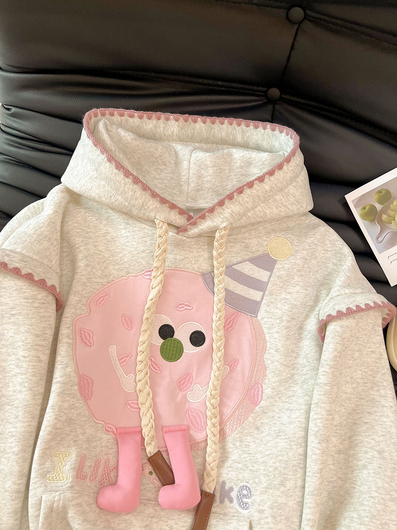 RM33194#韩版宽松华棉复合连帽卡通刺绣中长款大码加绒卫衣女