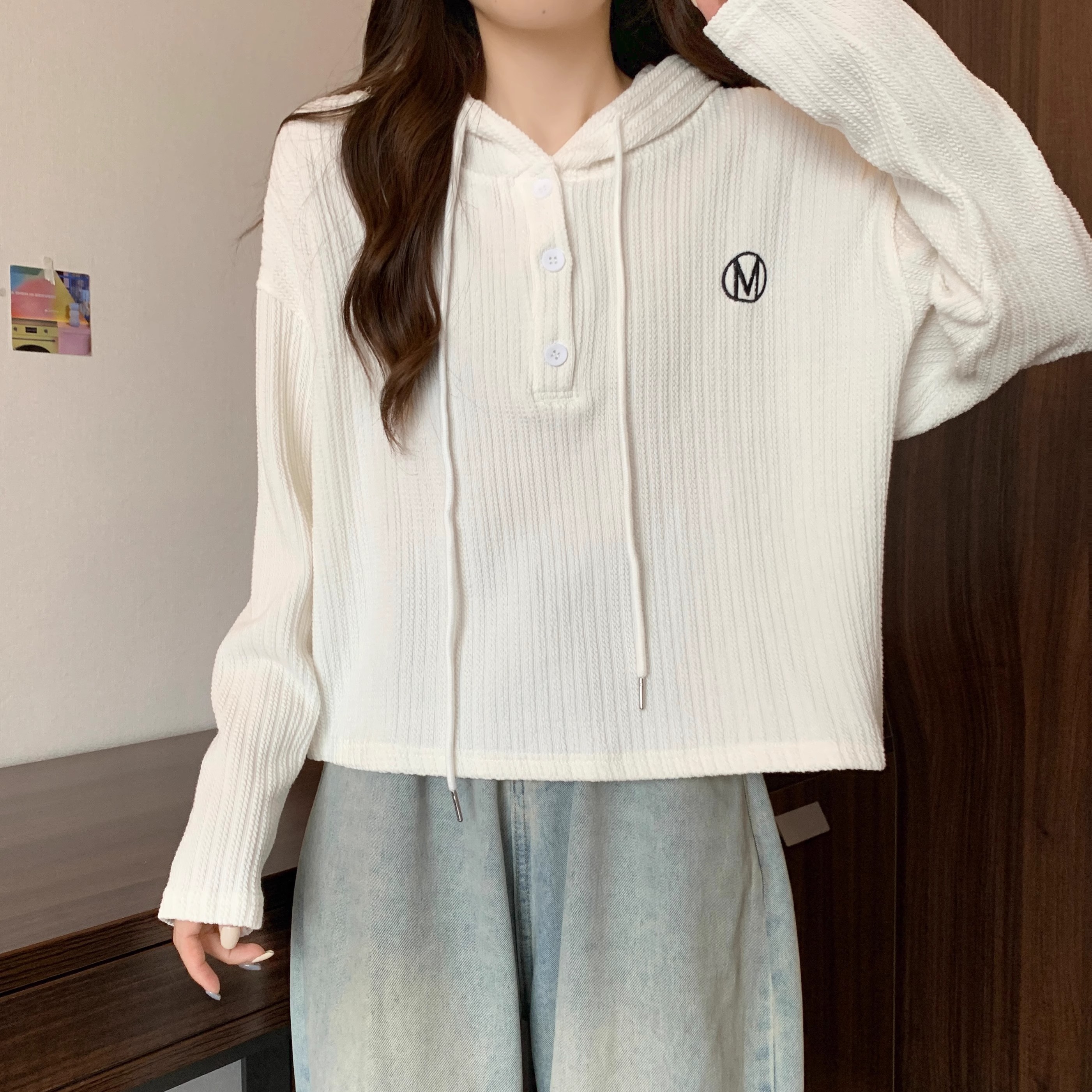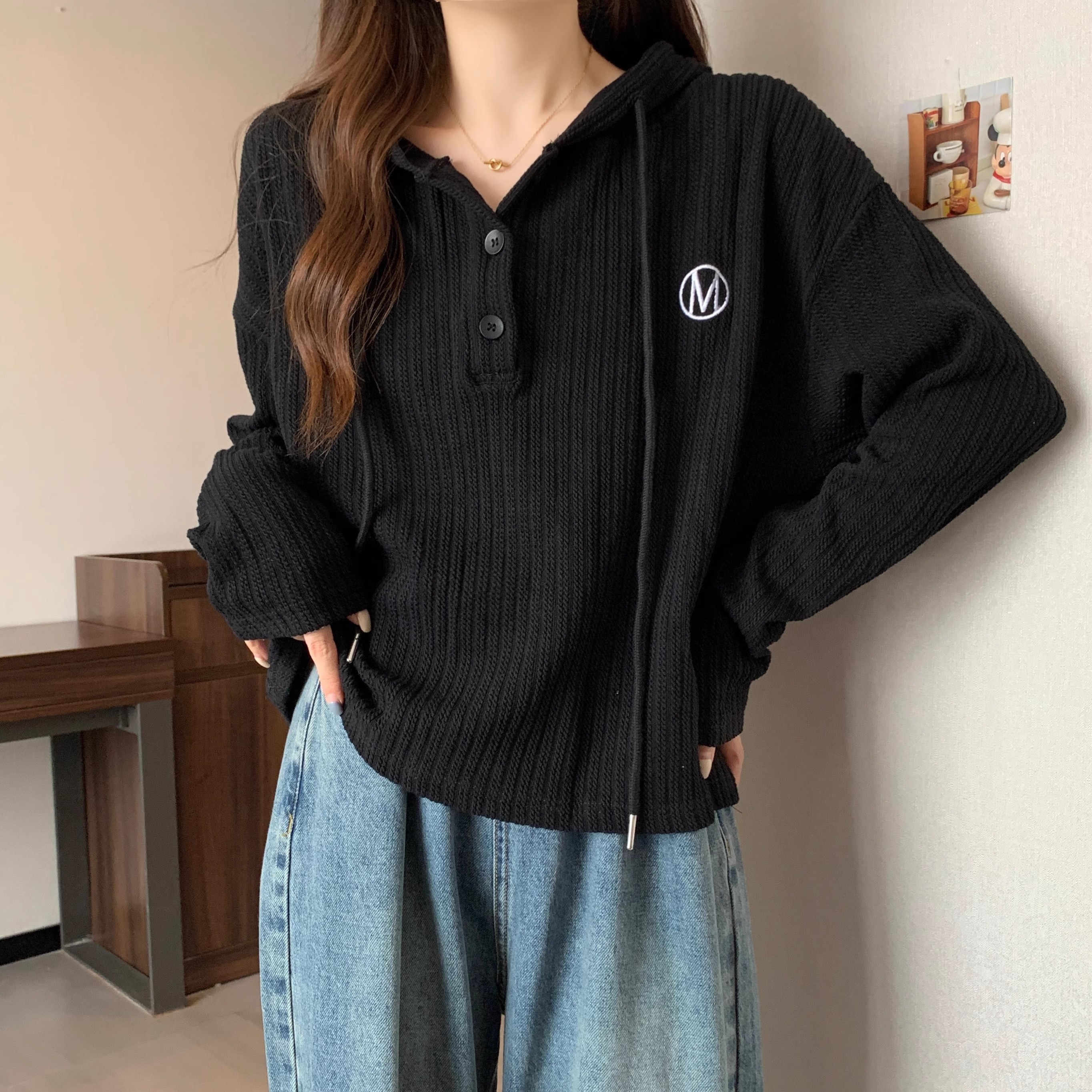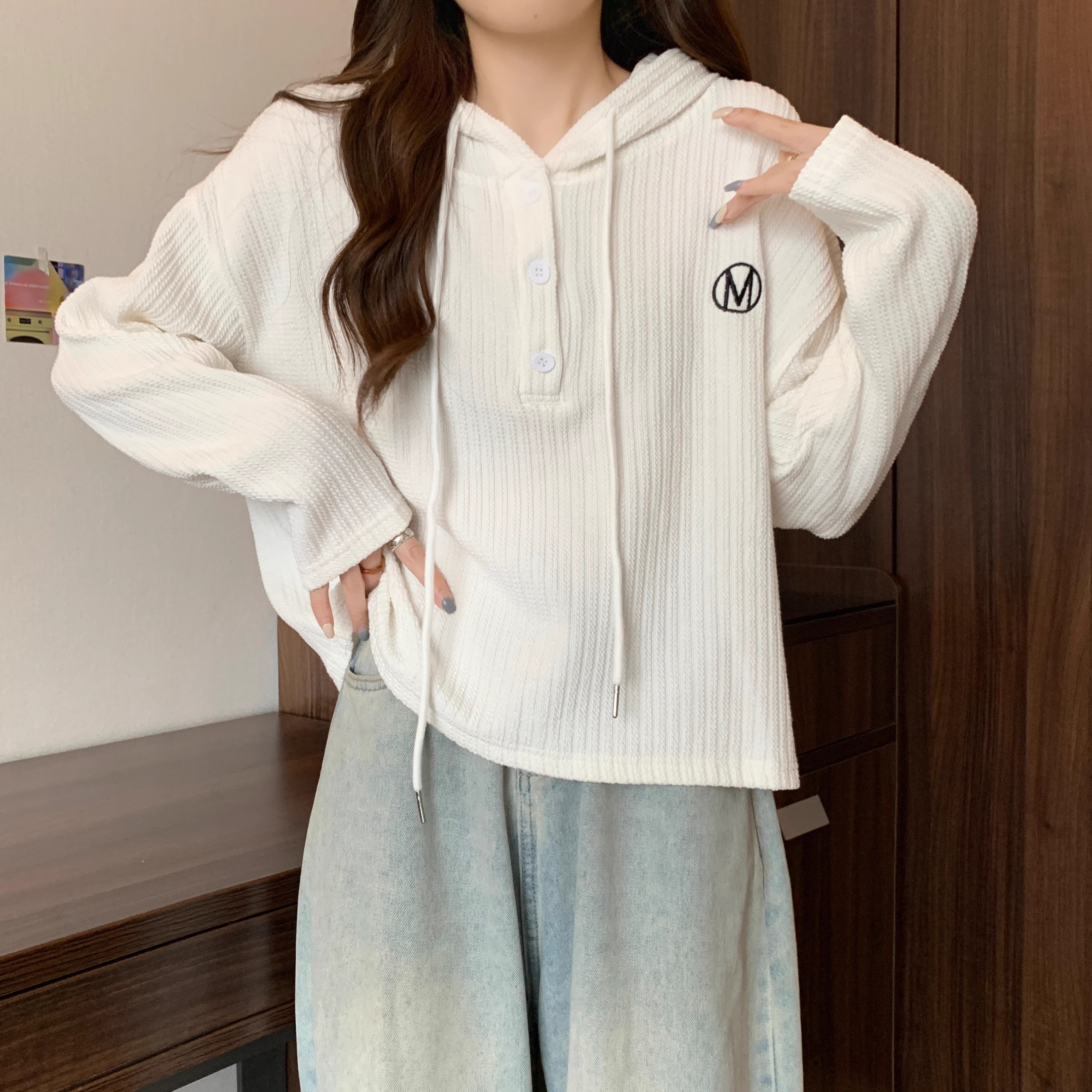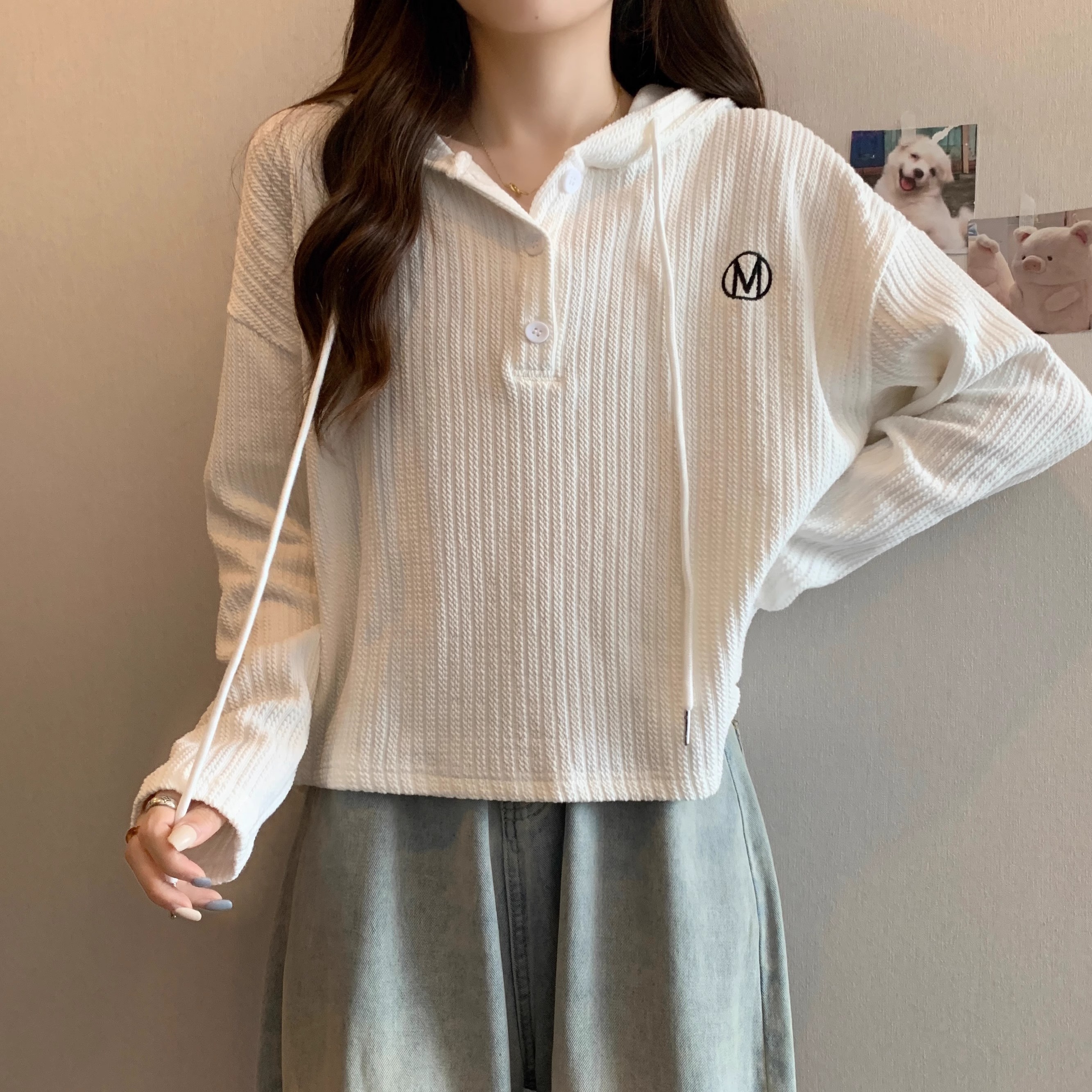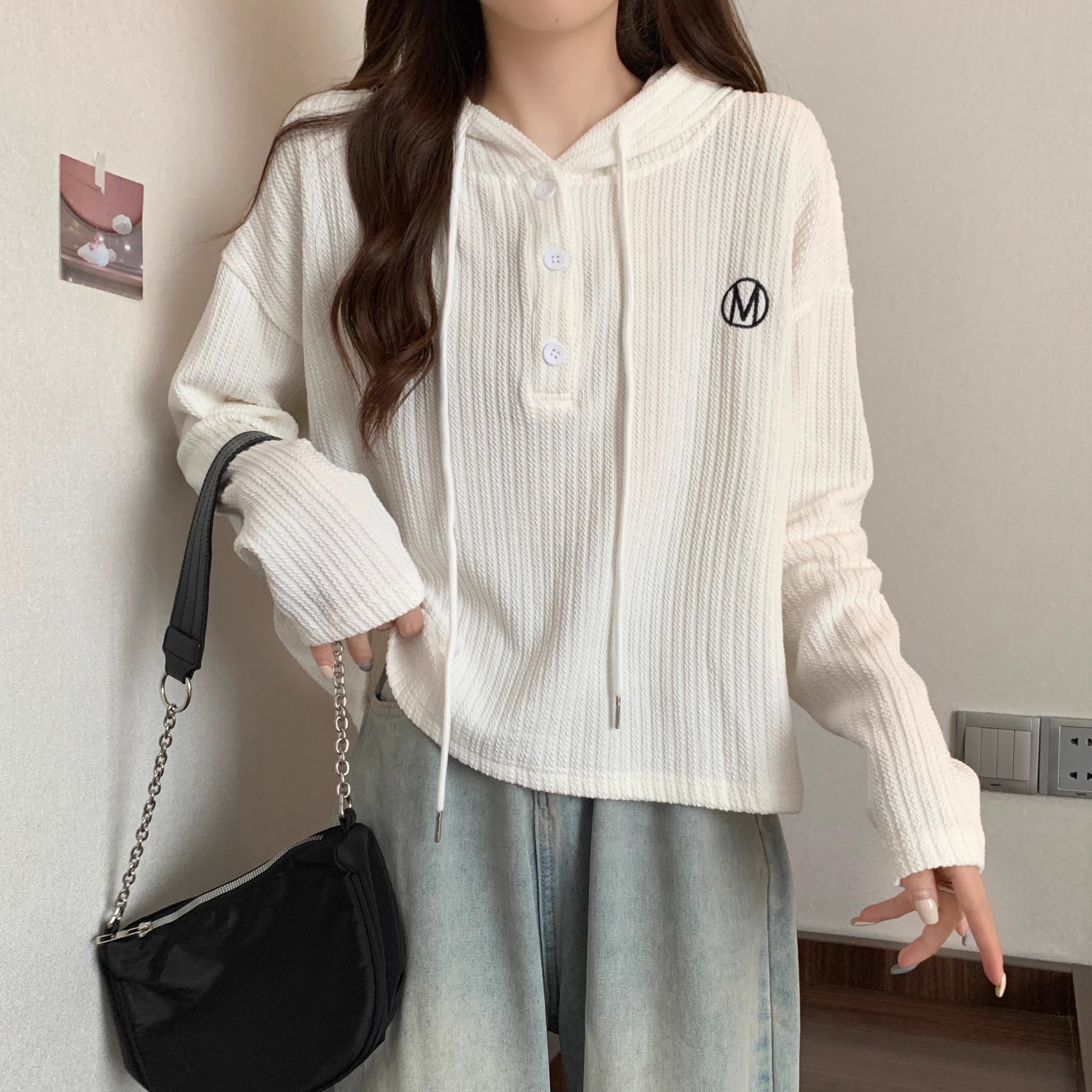RM33197#长袖连帽卫衣外套女 新款薄款mm遮肚子显瘦藏肉打底上衣