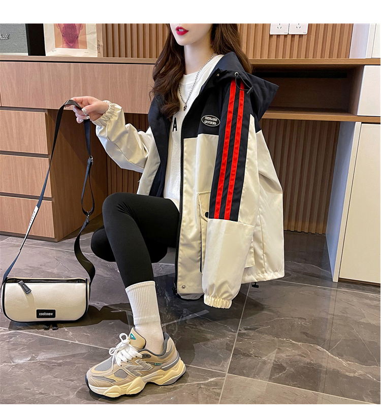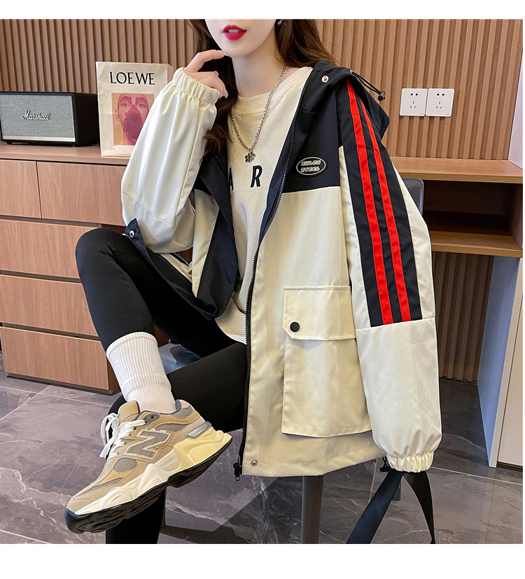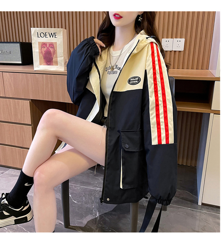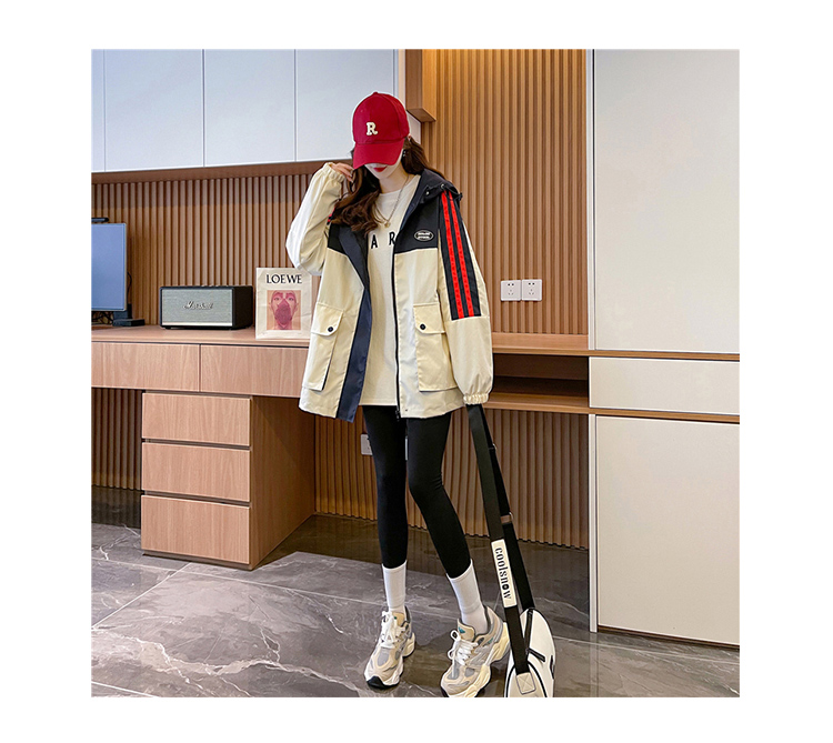 RM33213#酷丝棉斜兵骑加内里秋季薄款连帽卫衣休闲宽松外套女