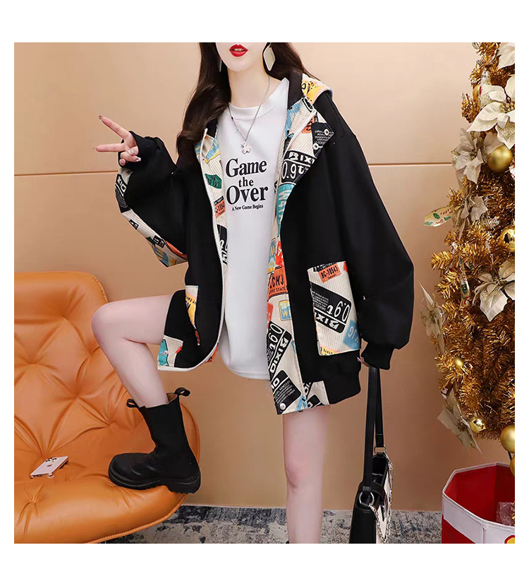 RM33216#酷丝棉单层双帽内抽春季卫衣宽松连帽外套女