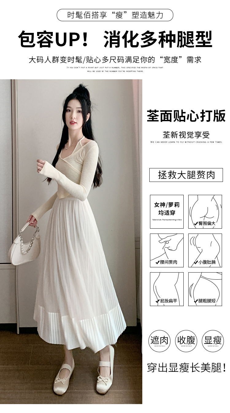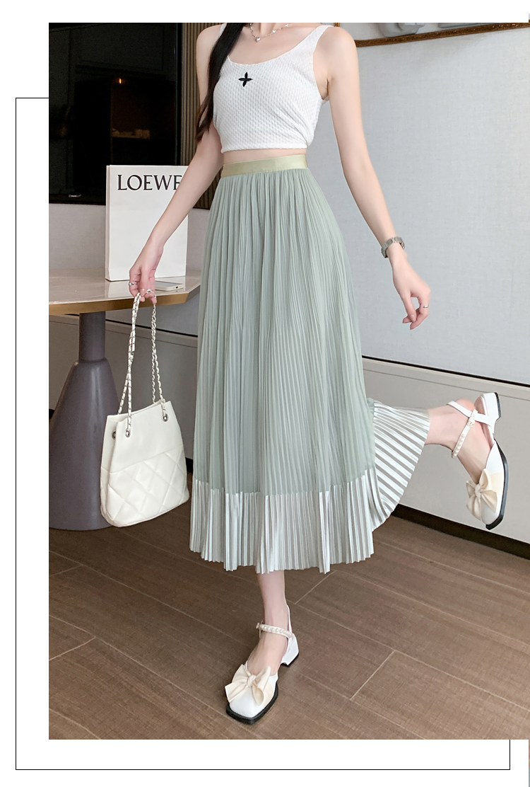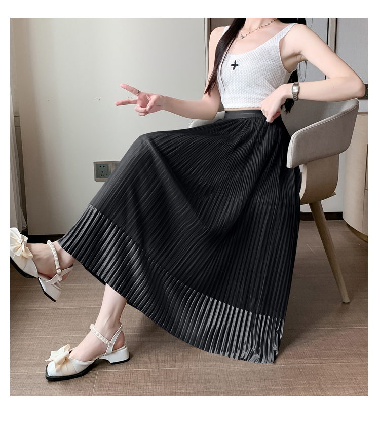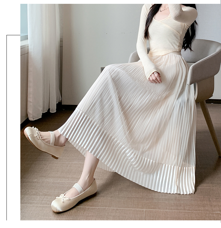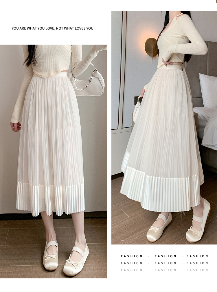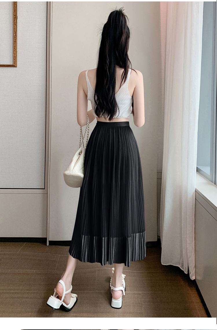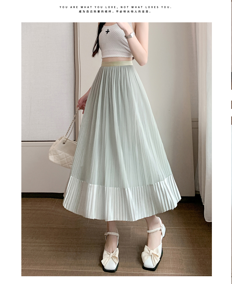 RM33232#百褶半身裙女2024春季新款高腰显瘦小个子网纱a字长裙子夏季