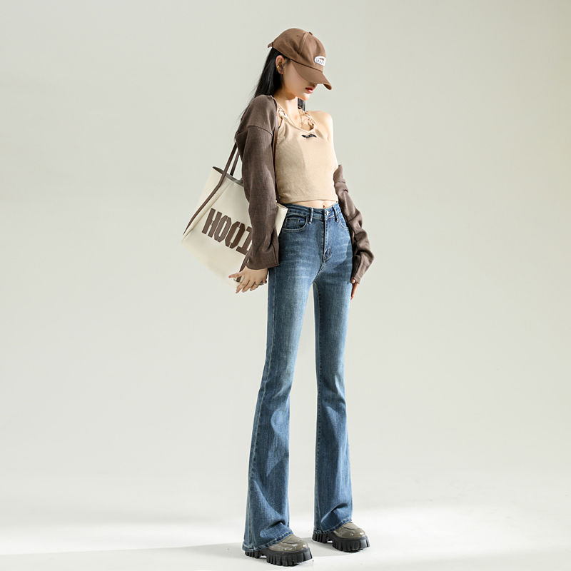 RY2708#高腰显瘦修身微喇叭裤直筒裤牛仔裤女春夏设计感长裤女