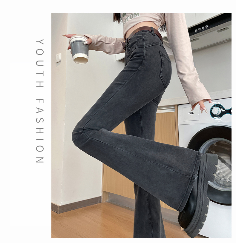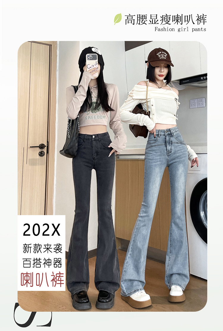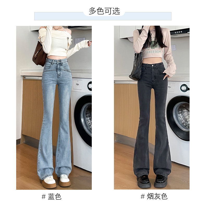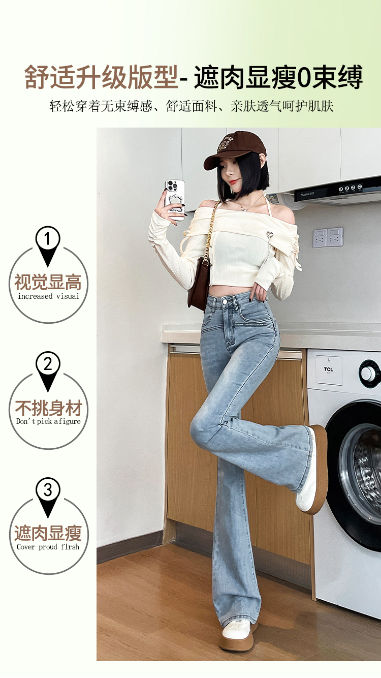 RM33237#美式微喇牛仔裤女春季新款浅蓝色高腰显瘦小个子拖地马蹄喇叭长裤