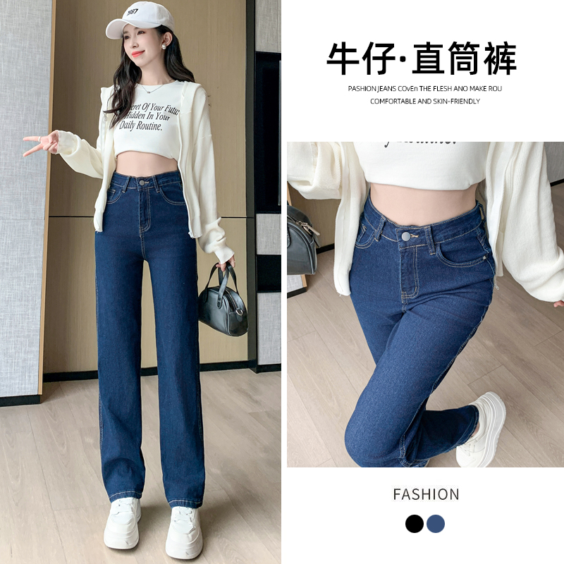 RM33289#新款梨形身材胖mm大码女装弹力直筒牛仔裤显瘦高腰长裤子