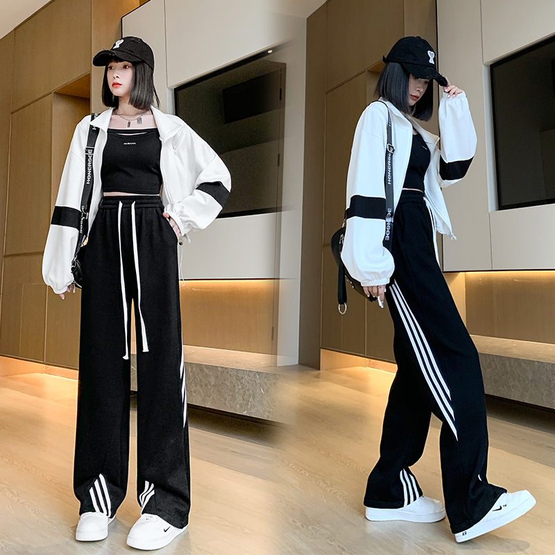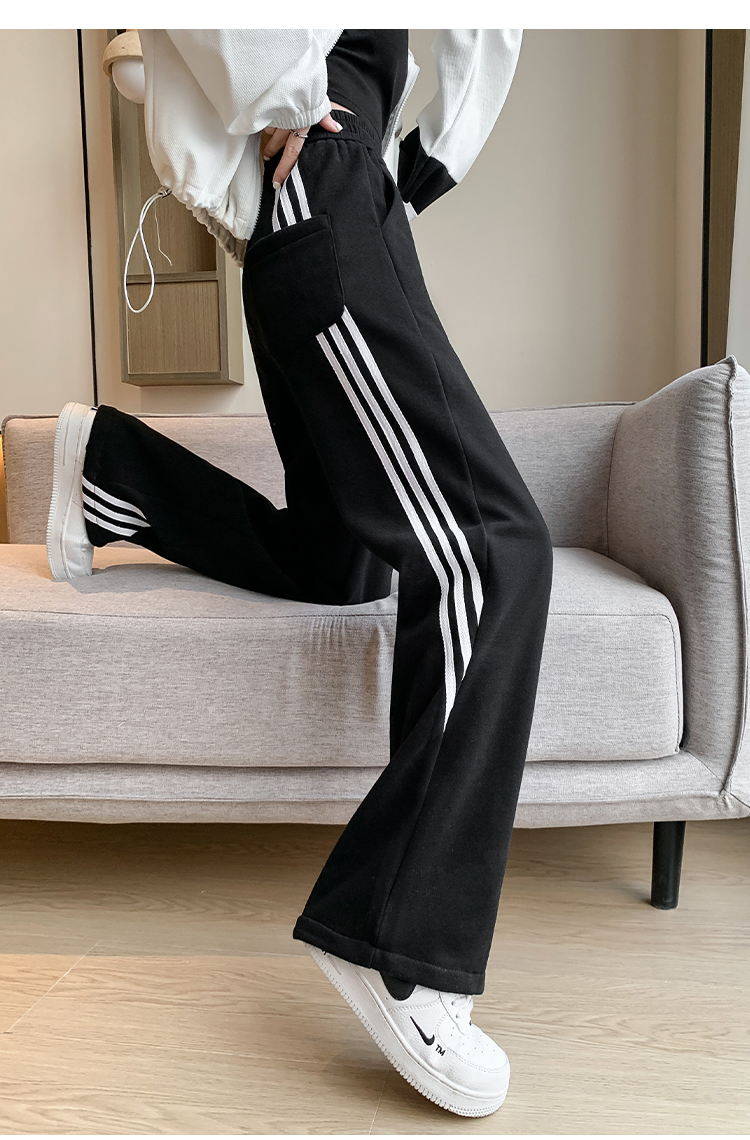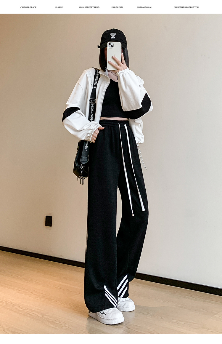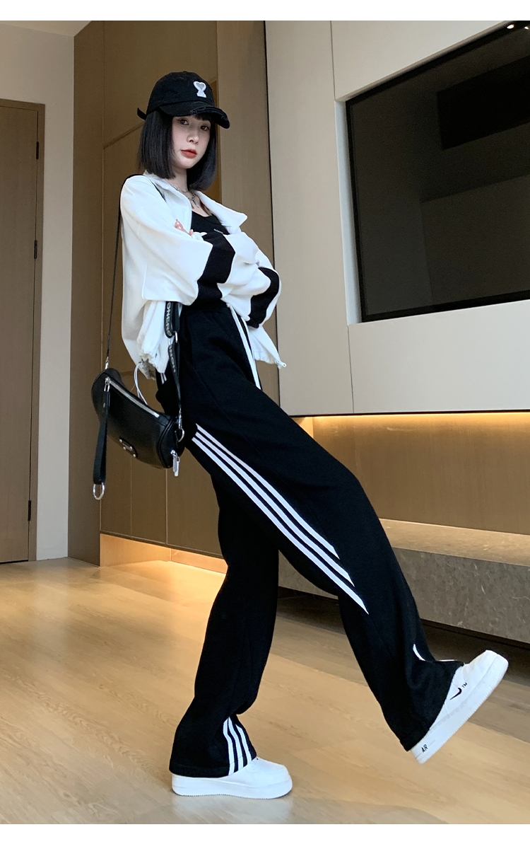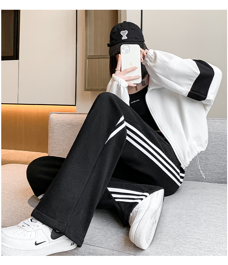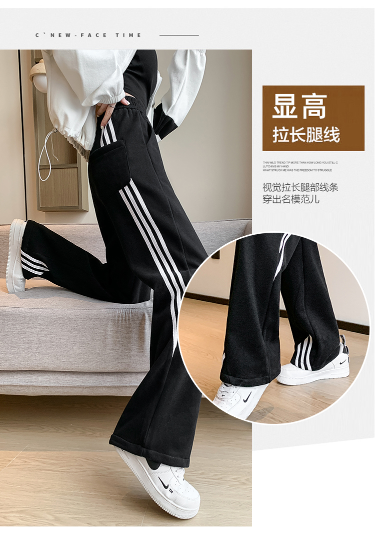 RM33295#新款休闲百搭条纹运动裤女2024宽松显瘦高腰抽绳阔腿裤