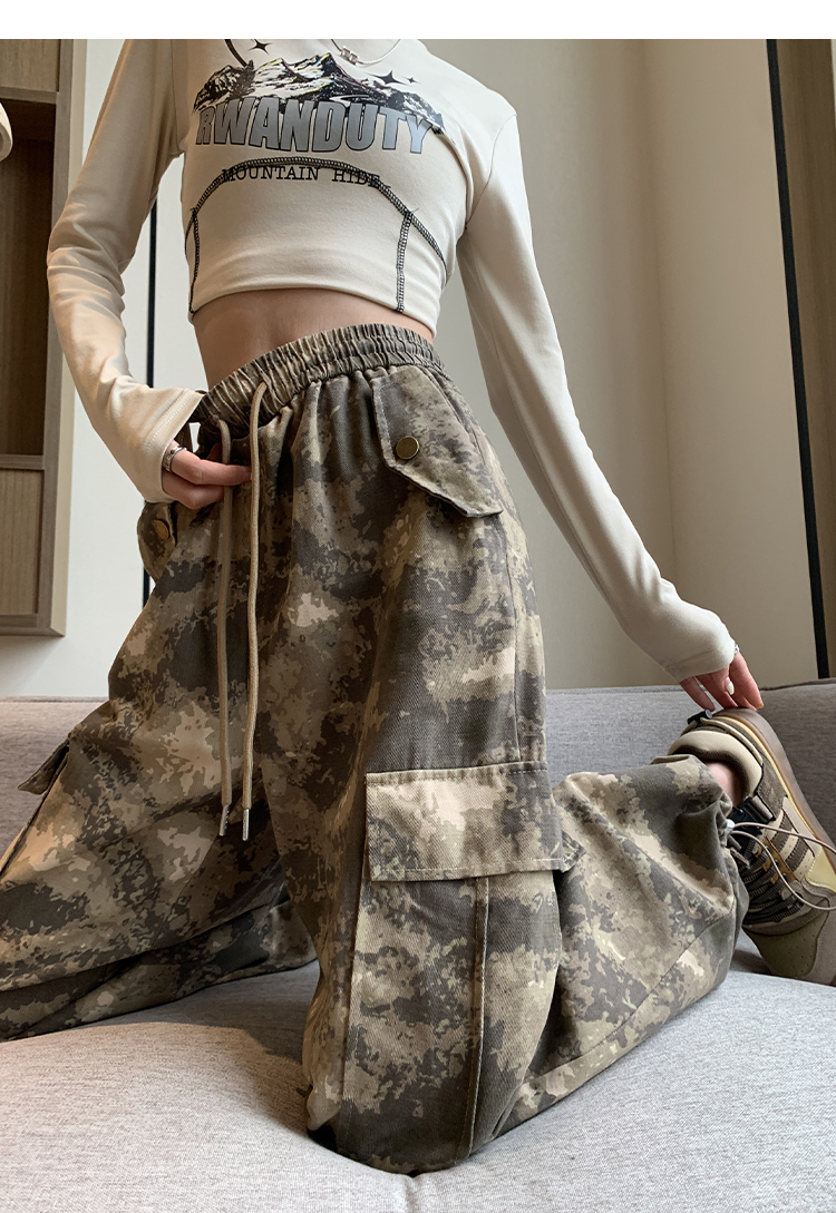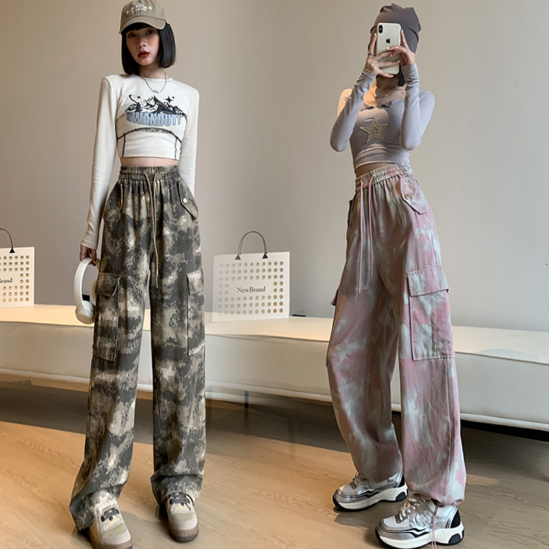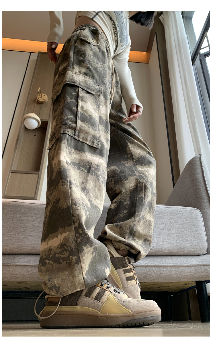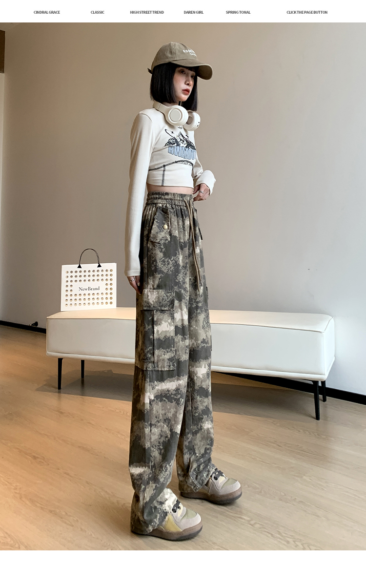 RM33297#美式复古迷彩工装裤女 新款宽松束脚休闲运动阔腿裤子