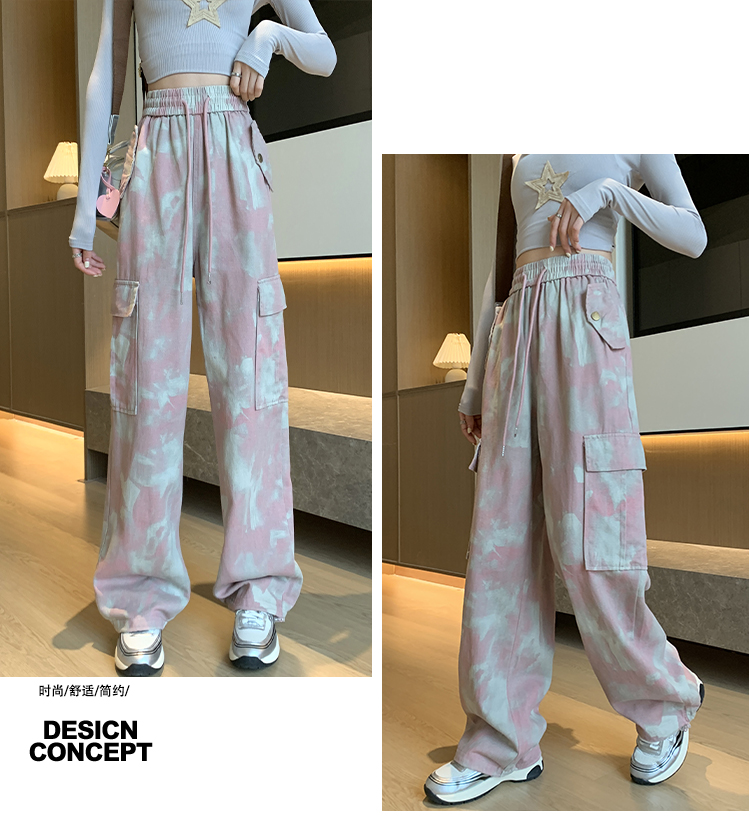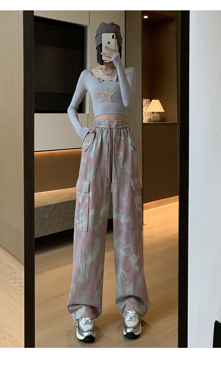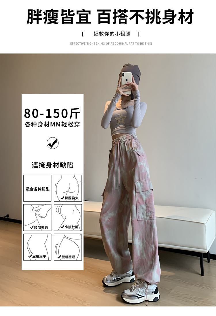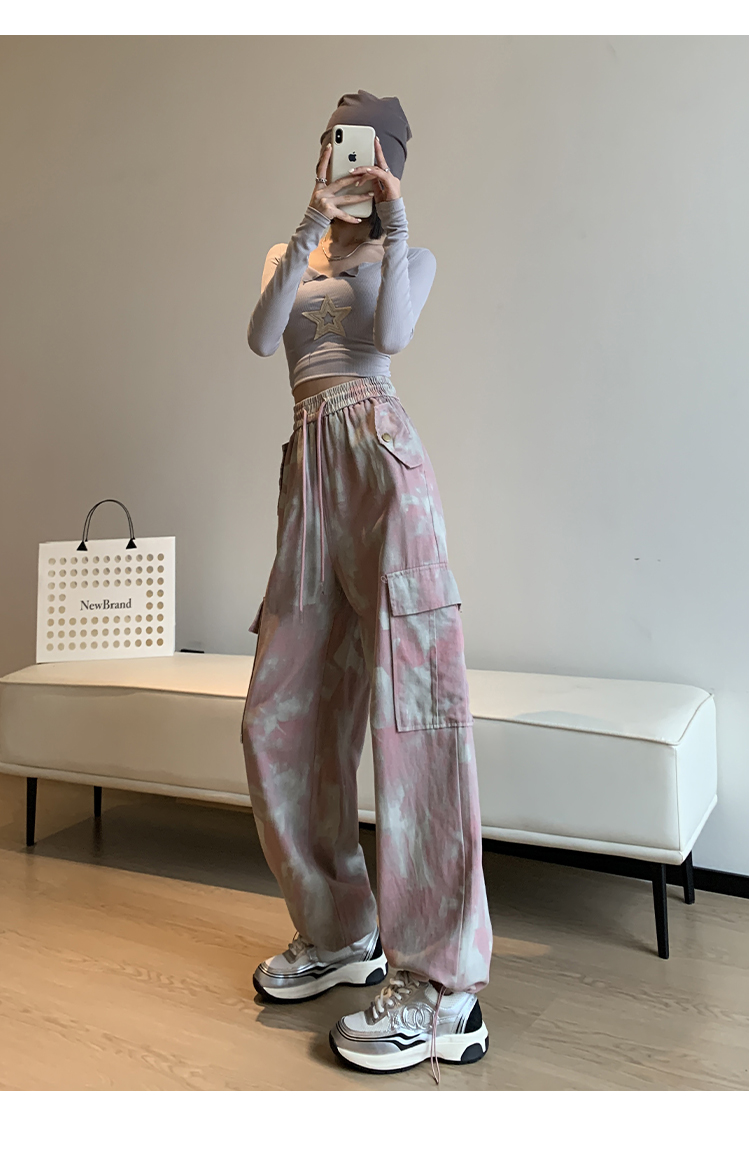 RM33297#美式复古迷彩工装裤女 新款宽松束脚休闲运动阔腿裤子
