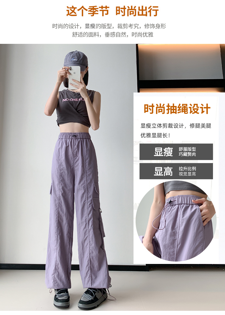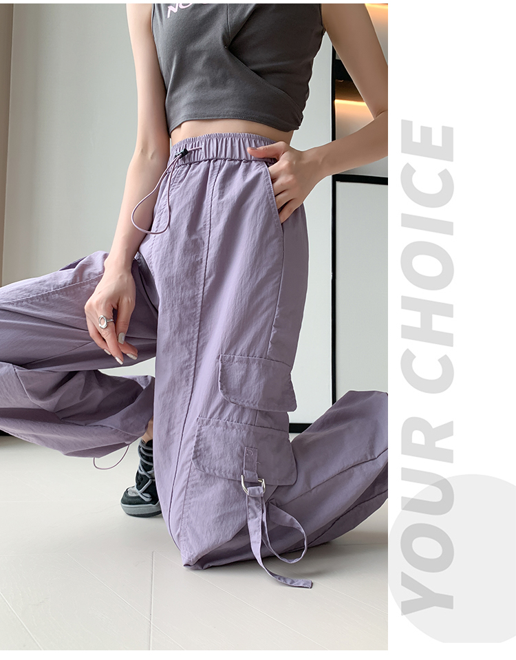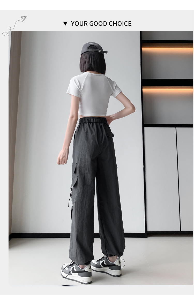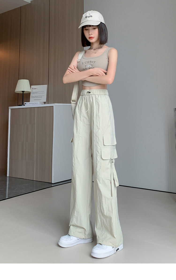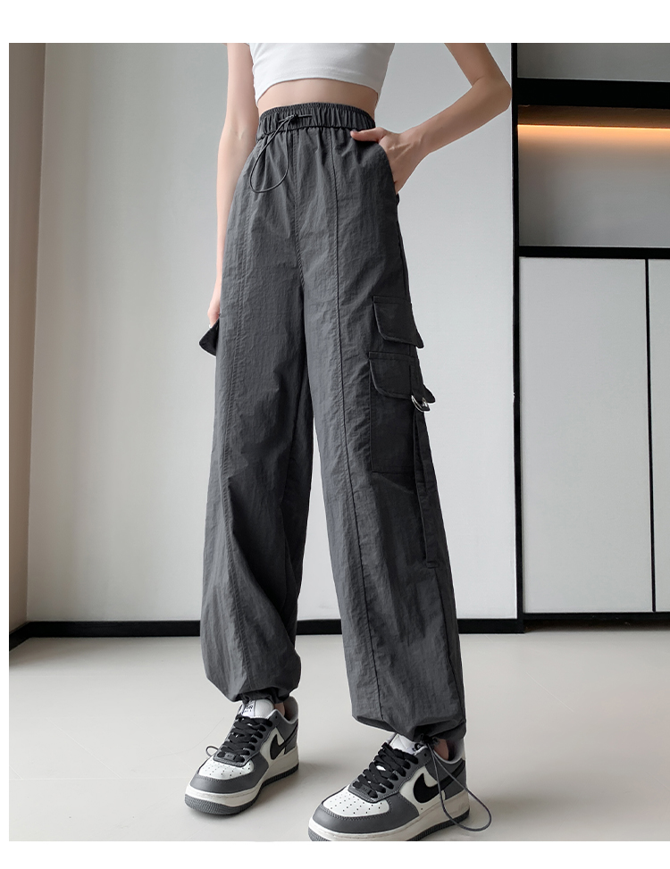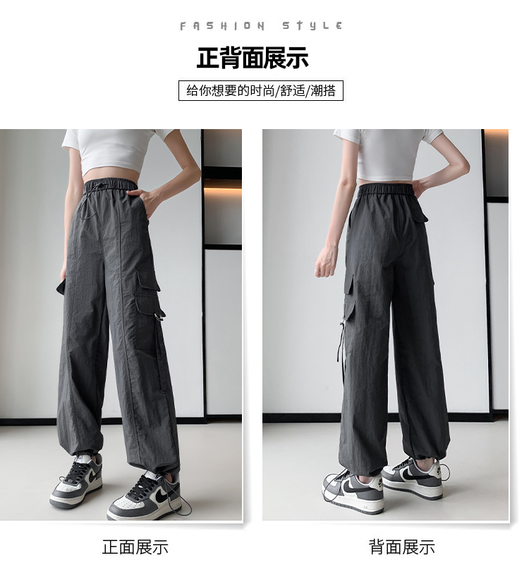 RM33298#降落伞工装裤 新款港风宽松抽绳阔腿束脚机能卫裤
