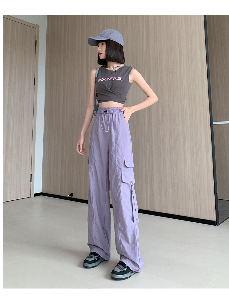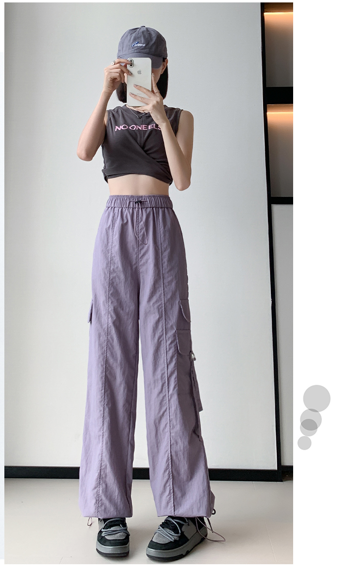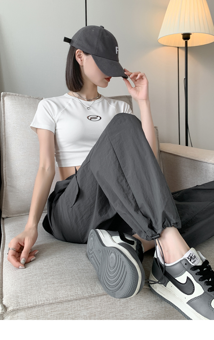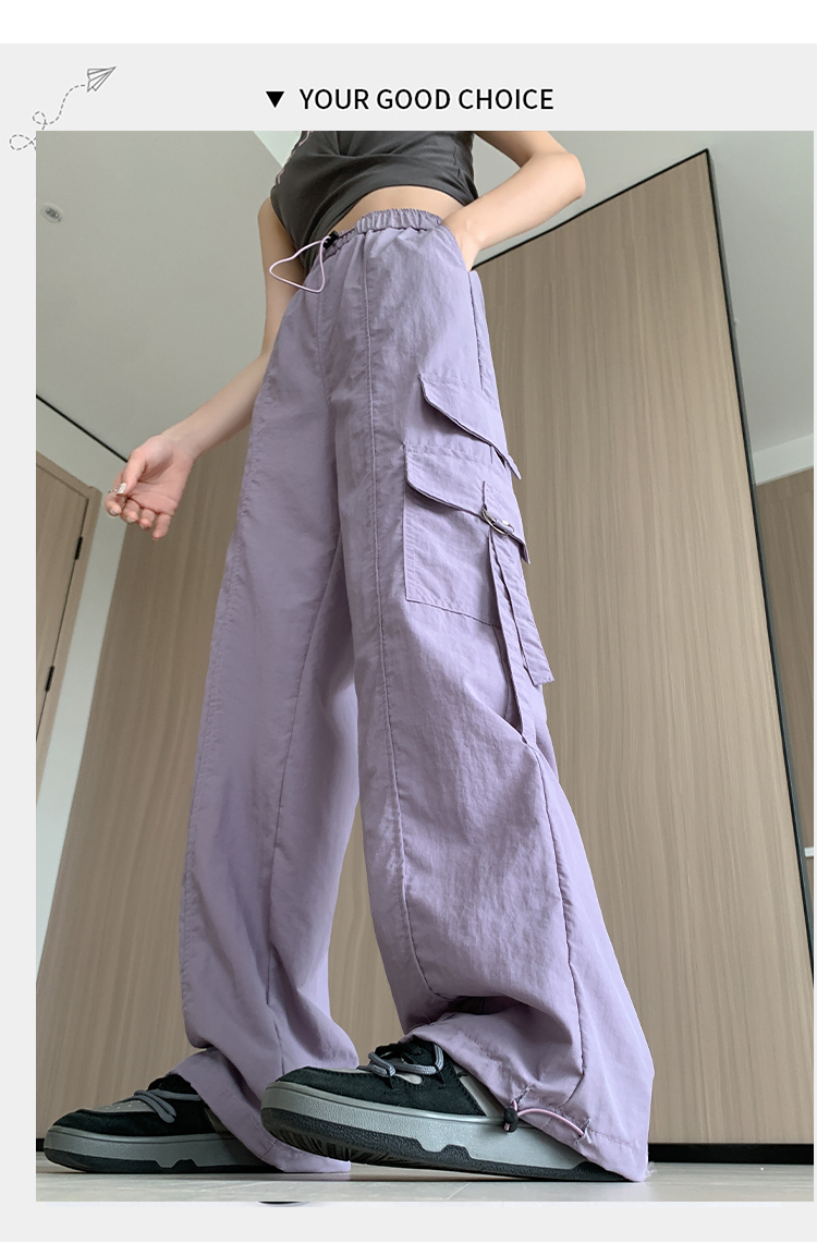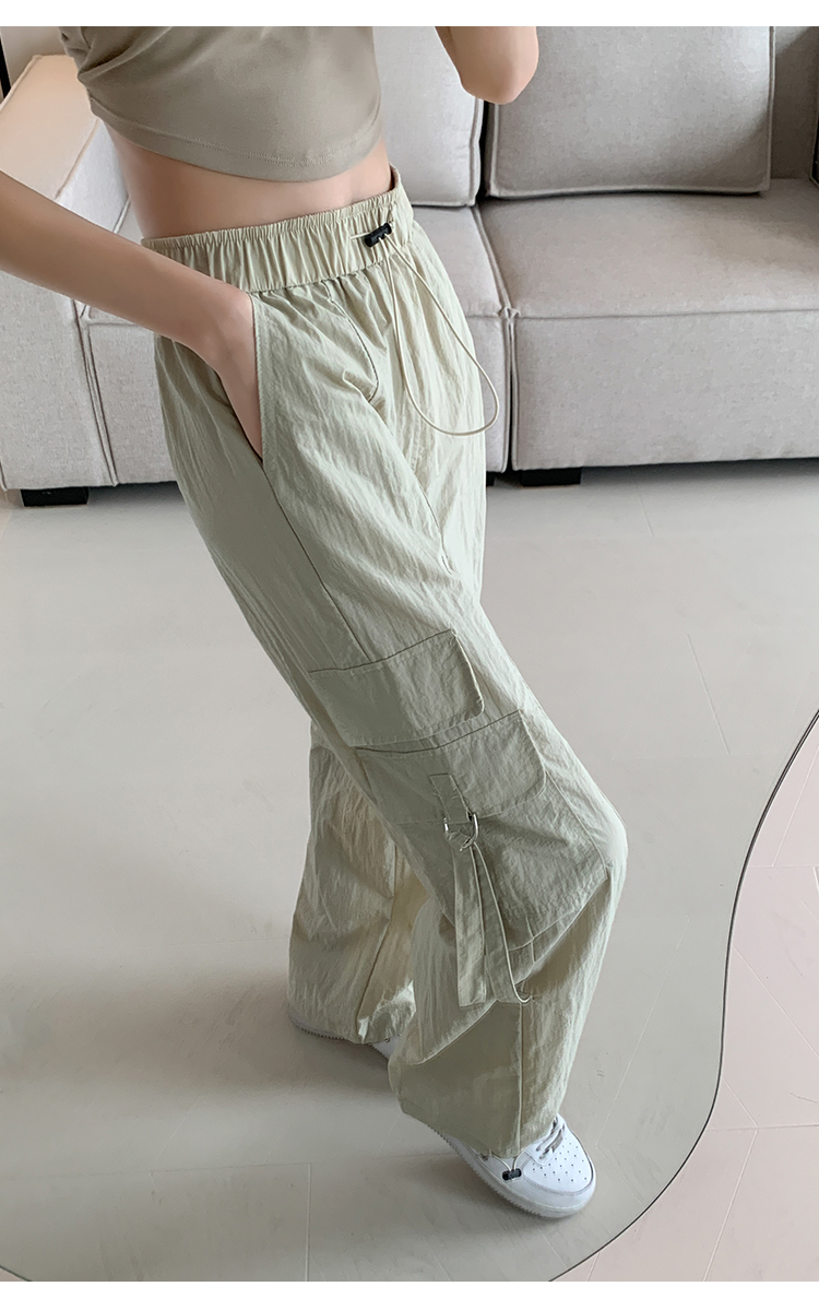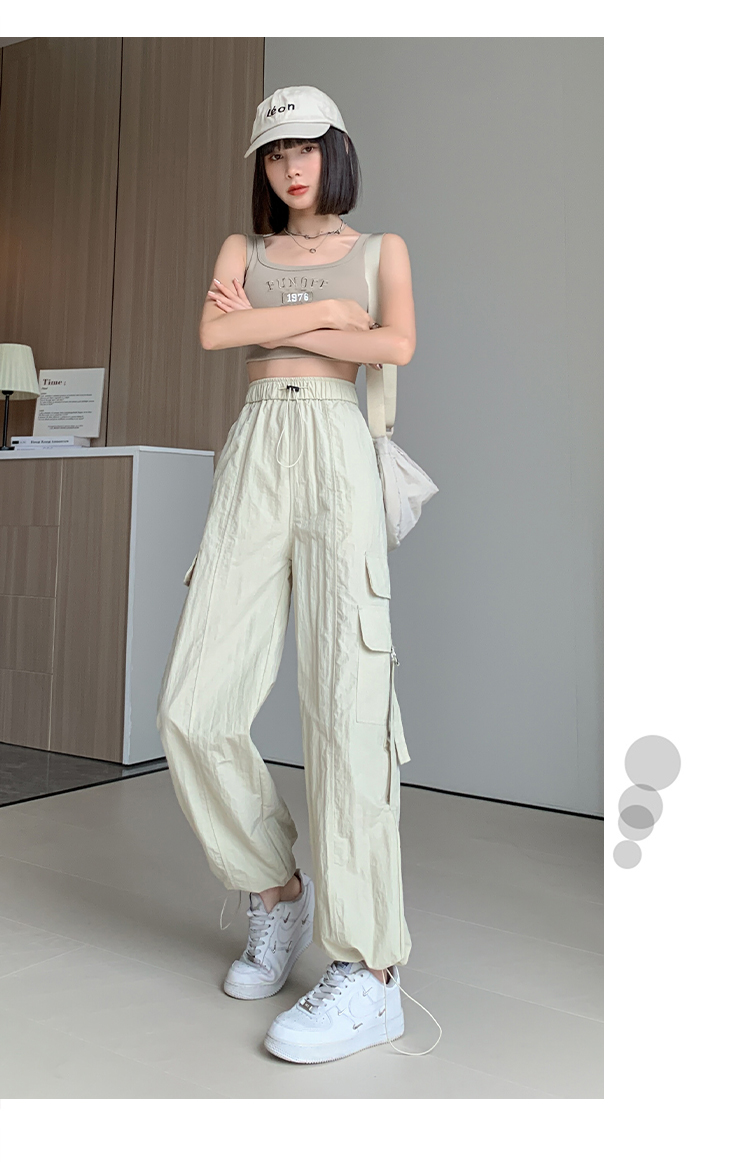 RM33298#降落伞工装裤 新款港风宽松抽绳阔腿束脚机能卫裤