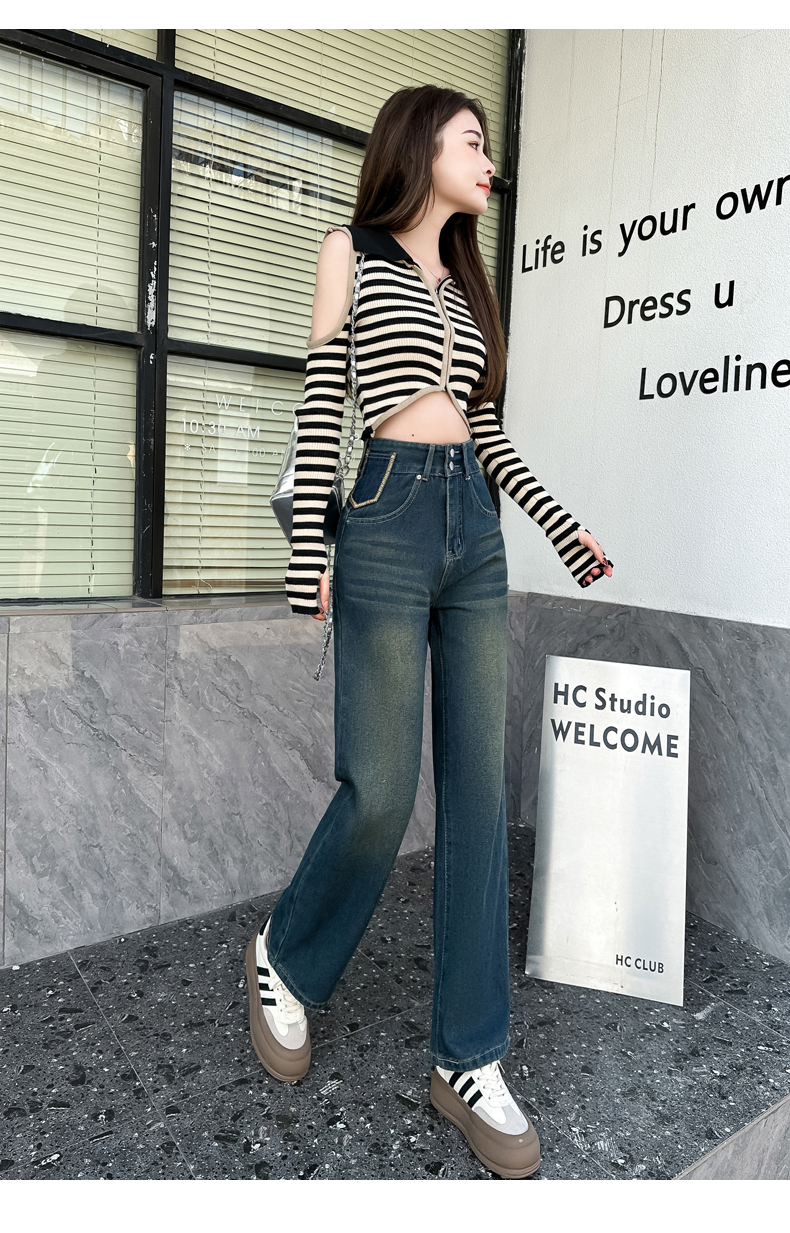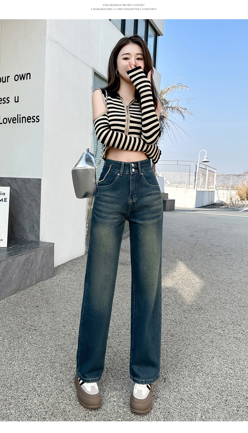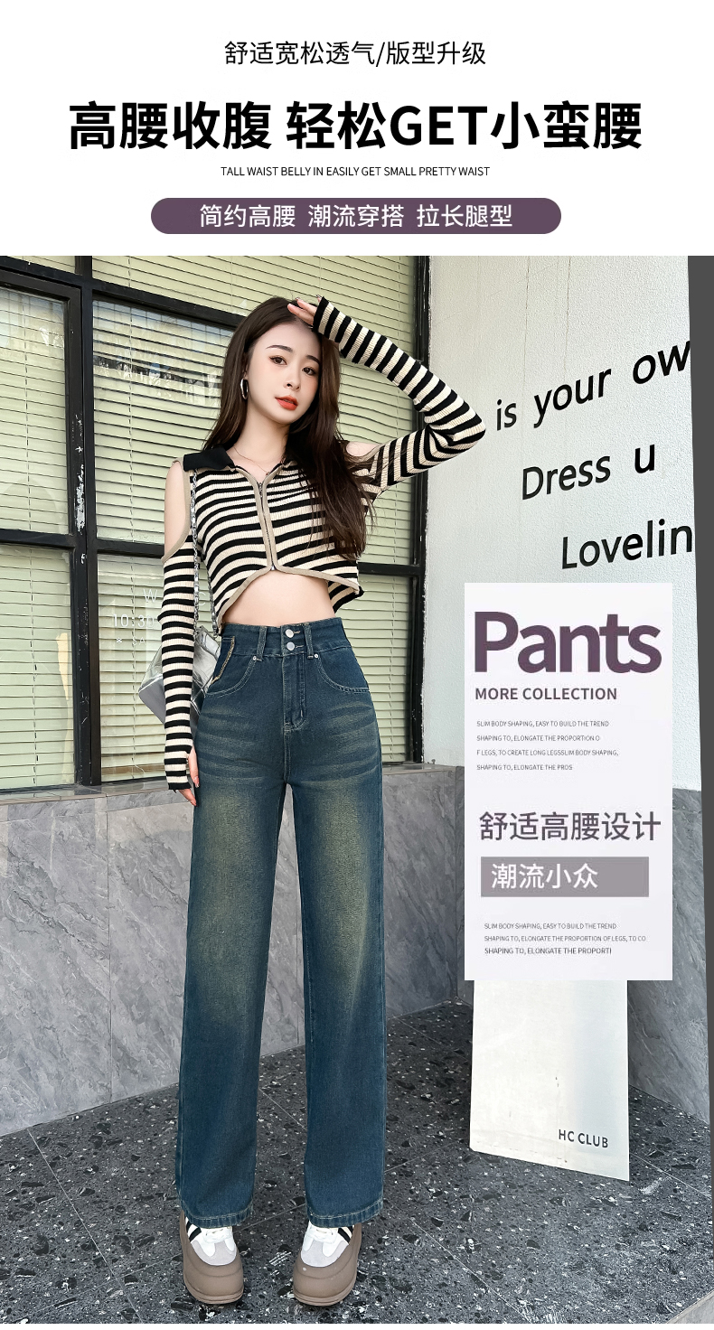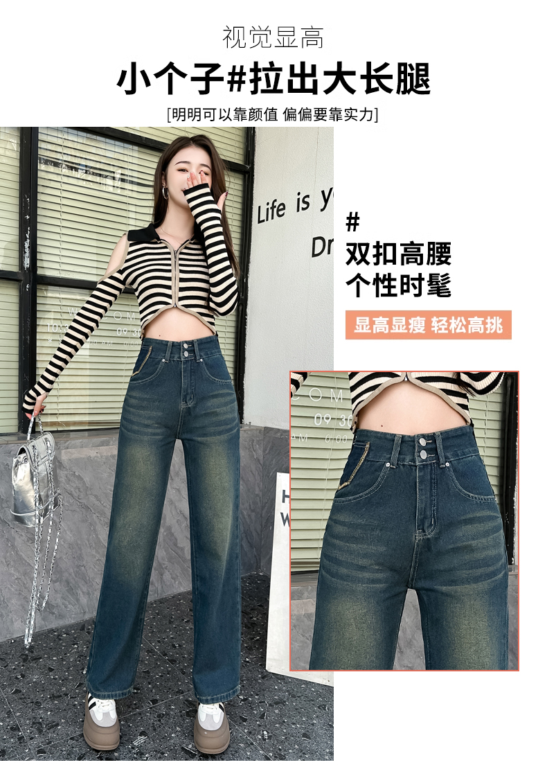 RM33314#高腰阔腿牛仔裤女春秋季小个子设计感2024年新款宽松窄版直筒裤子