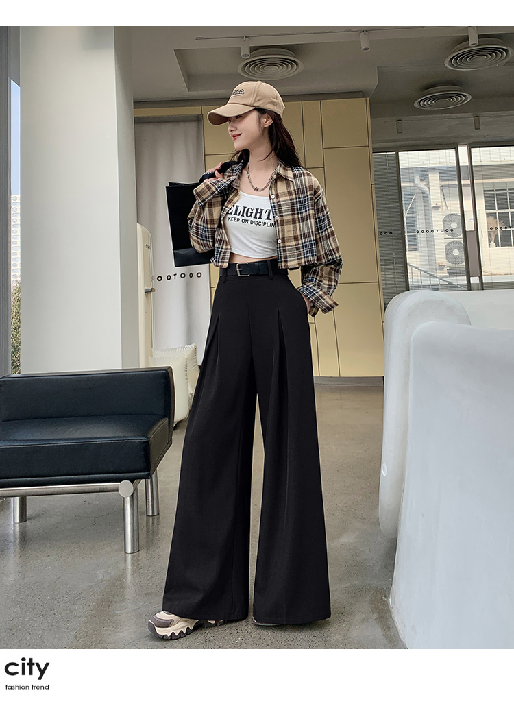 RM33332#西装阔腿裤女2024春季新款高腰显瘦垂感百搭直筒拖地休闲长裤