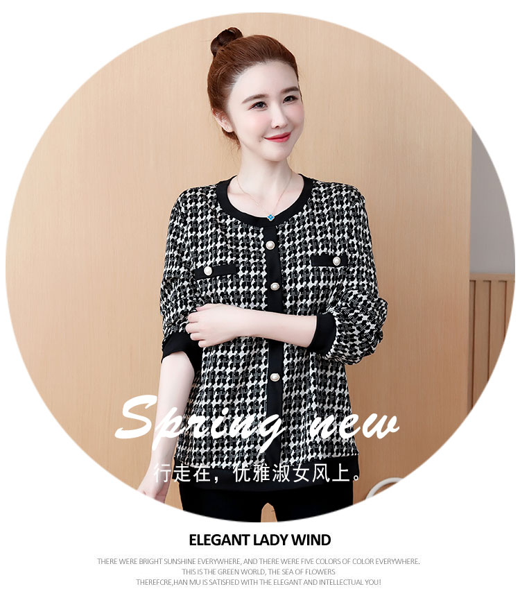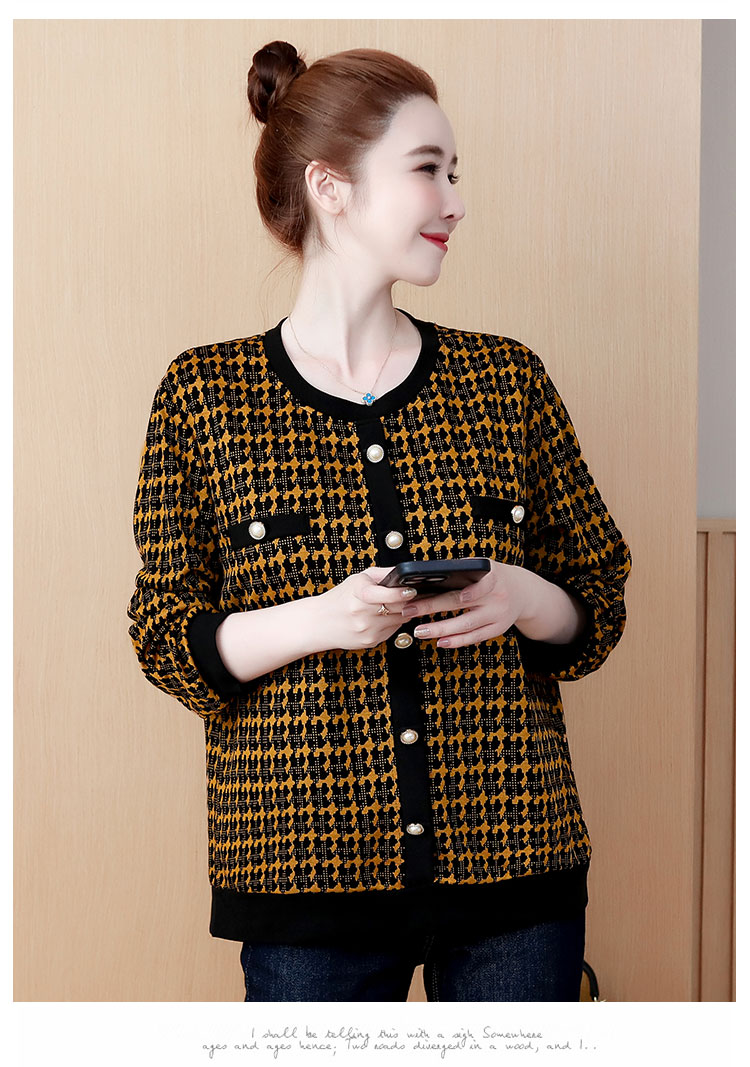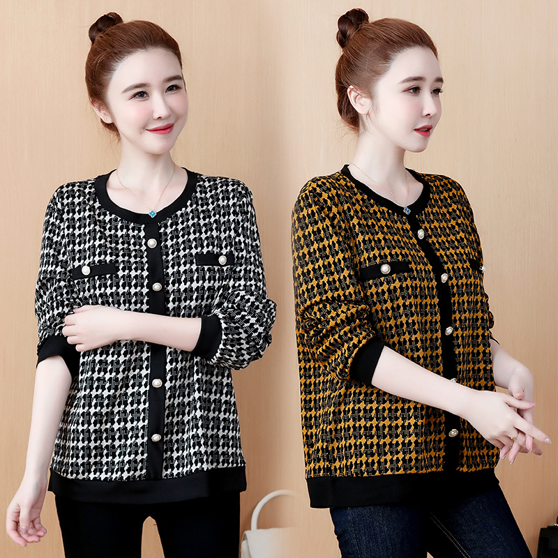 RM33347#高端针织上衣女小香风2024春秋季新款宽松遮肚洋气妈妈打底衫