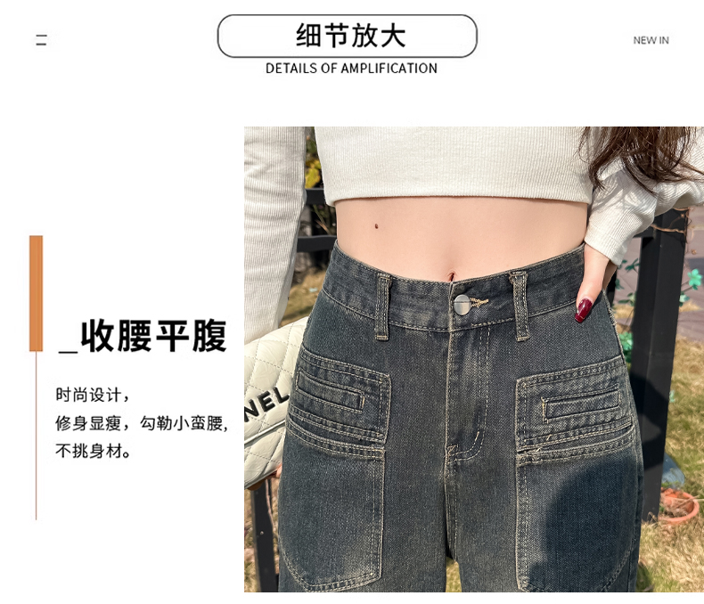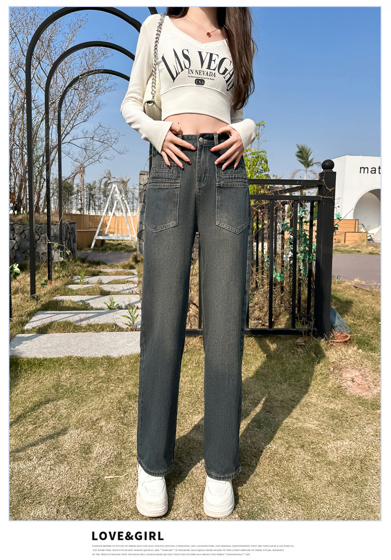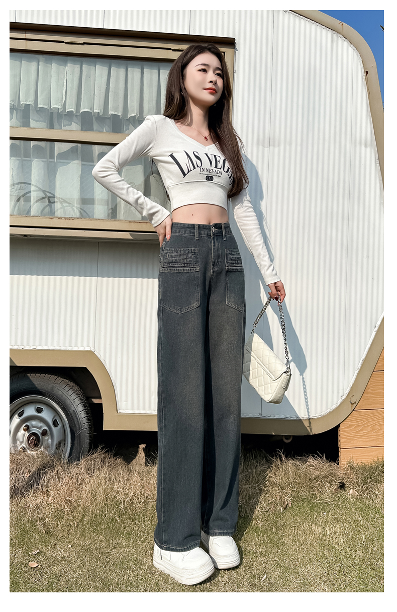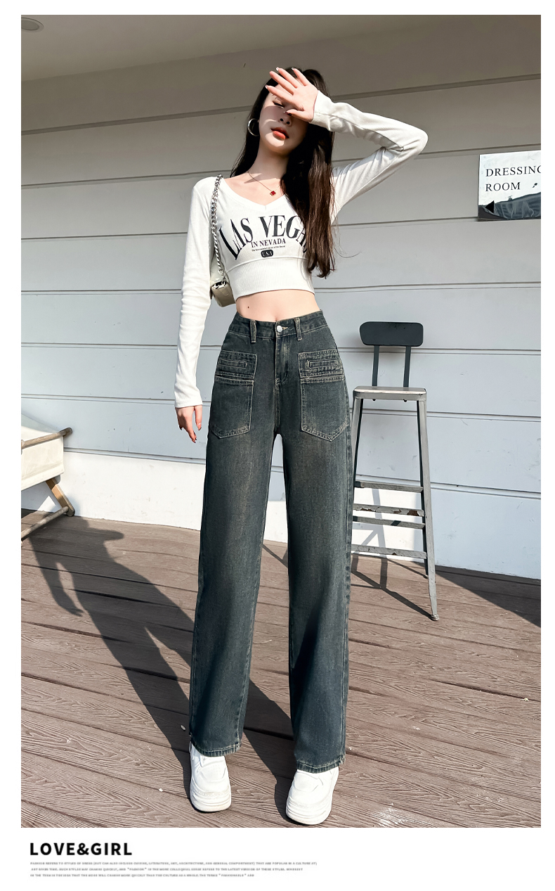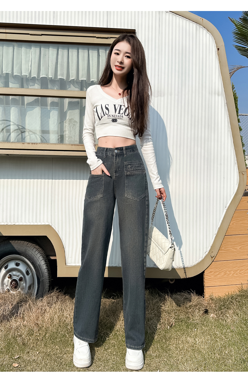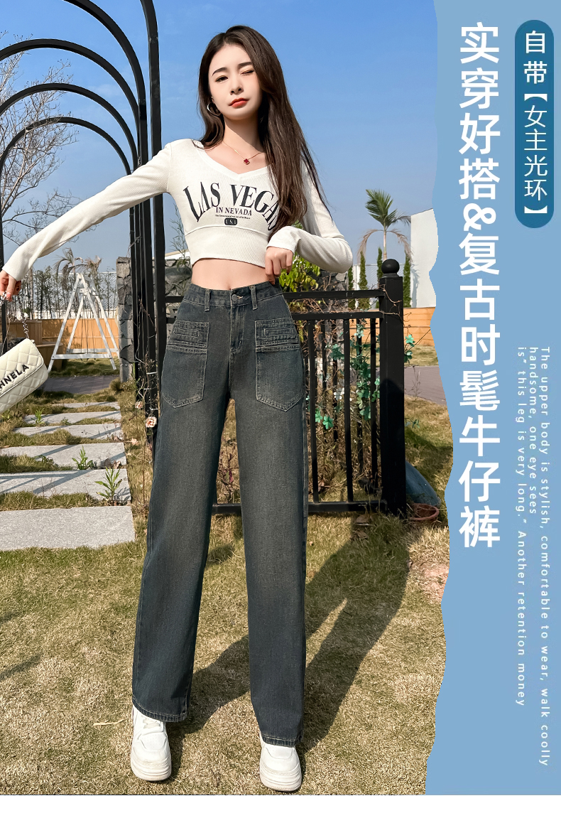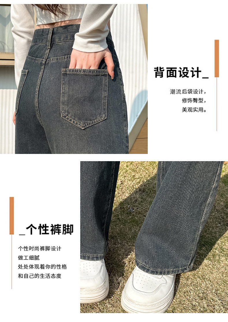 RM33416#高腰直筒牛仔裤女 新款宽松显瘦九分窄版阔腿拖地裤子