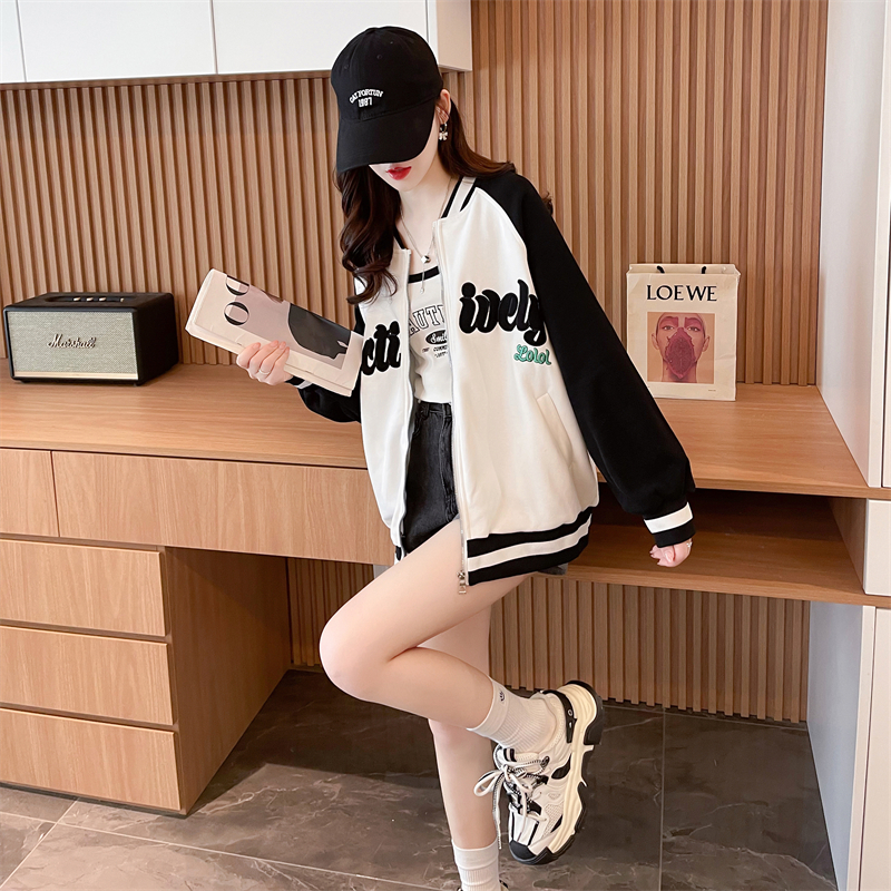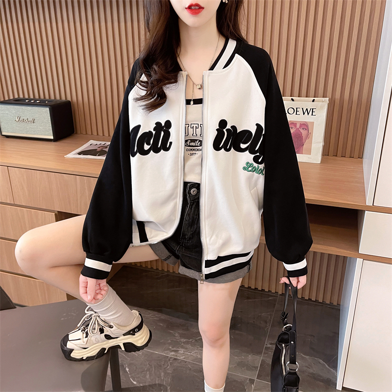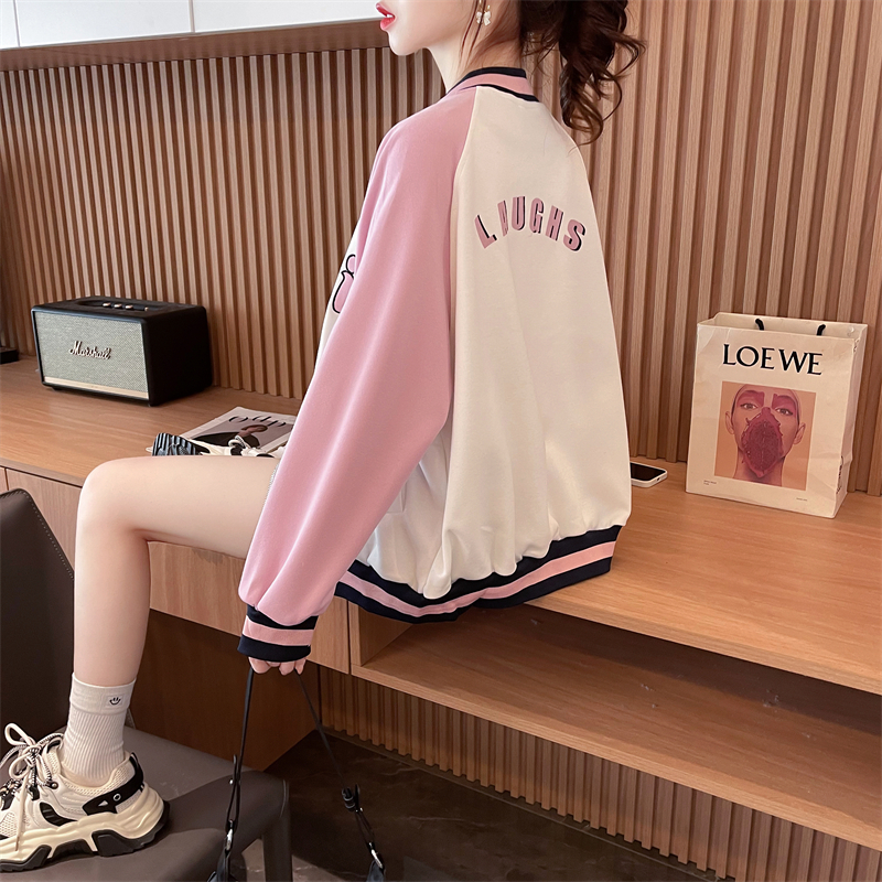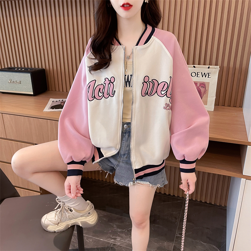RM33422#韩版宽松反棉华棉印花开衫棒球服大码短款薄外套女