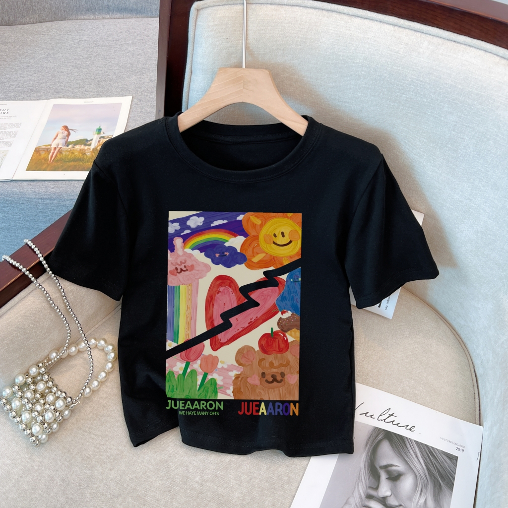 RM33430#92%棉 8%氨纶 正肩短袖T恤女纯棉