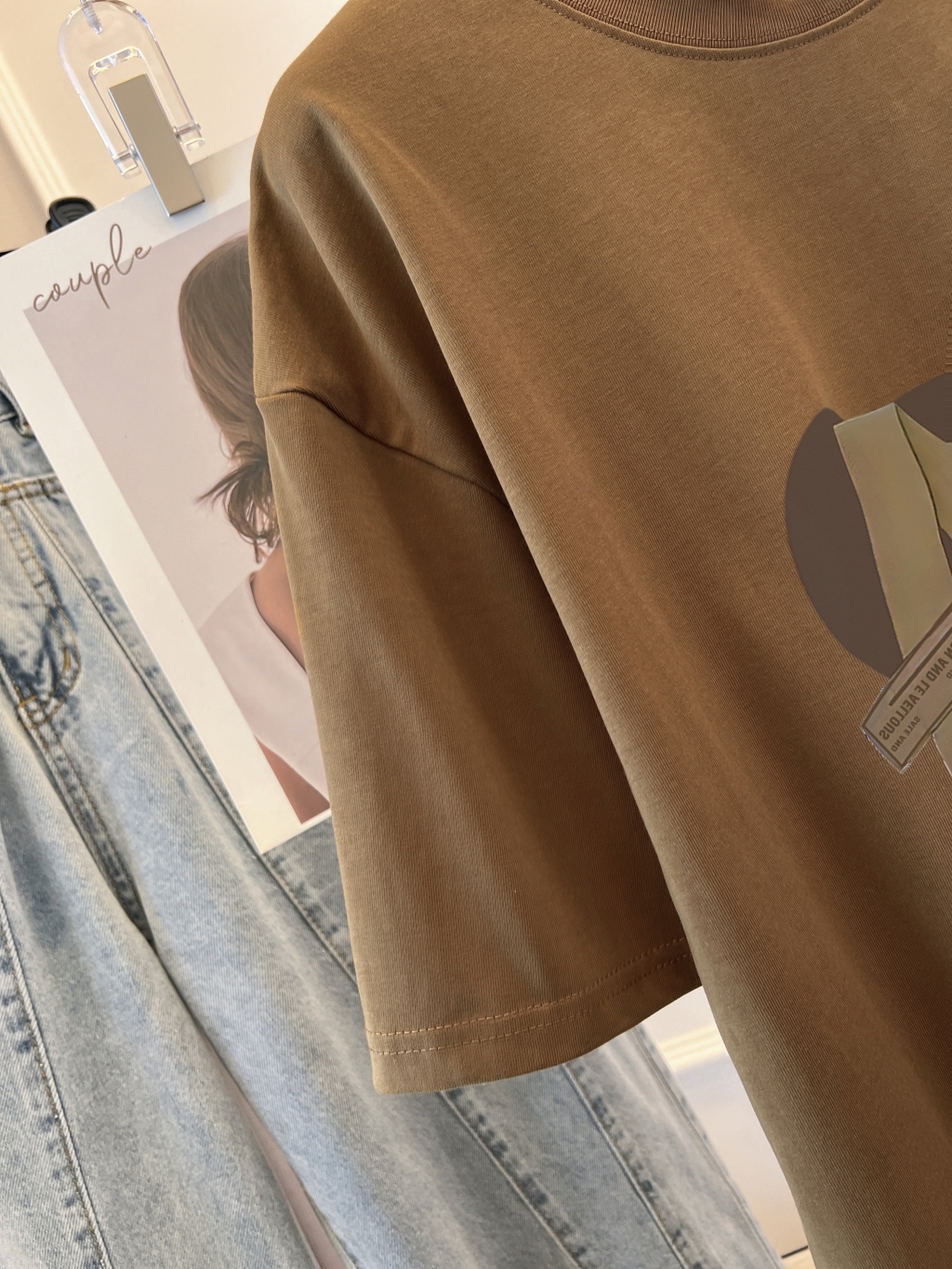 RM33436#100%棉精梳纯棉 印花夏装短袖T恤女宽松韩版