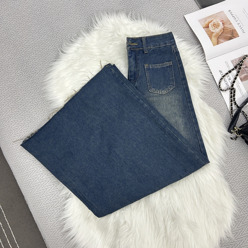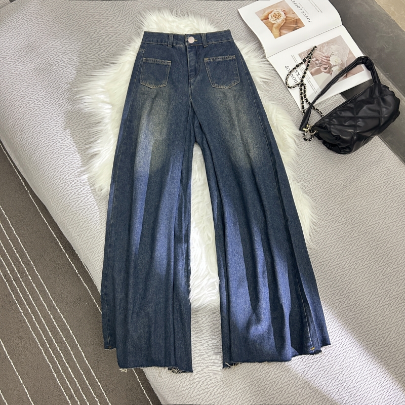 RM33444#设计感毛边阔腿裤女春秋高腰显瘦宽松垂感直筒拖地裤裙潮