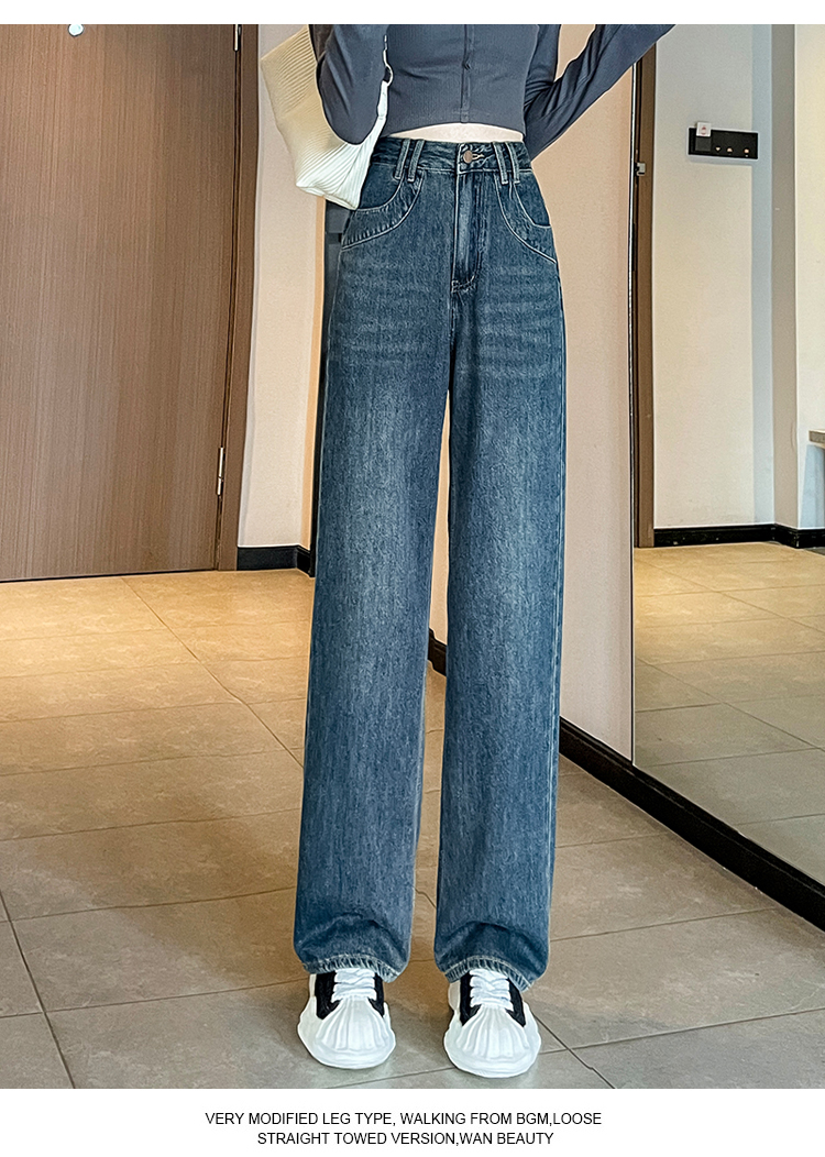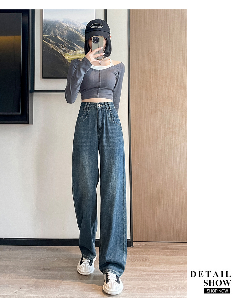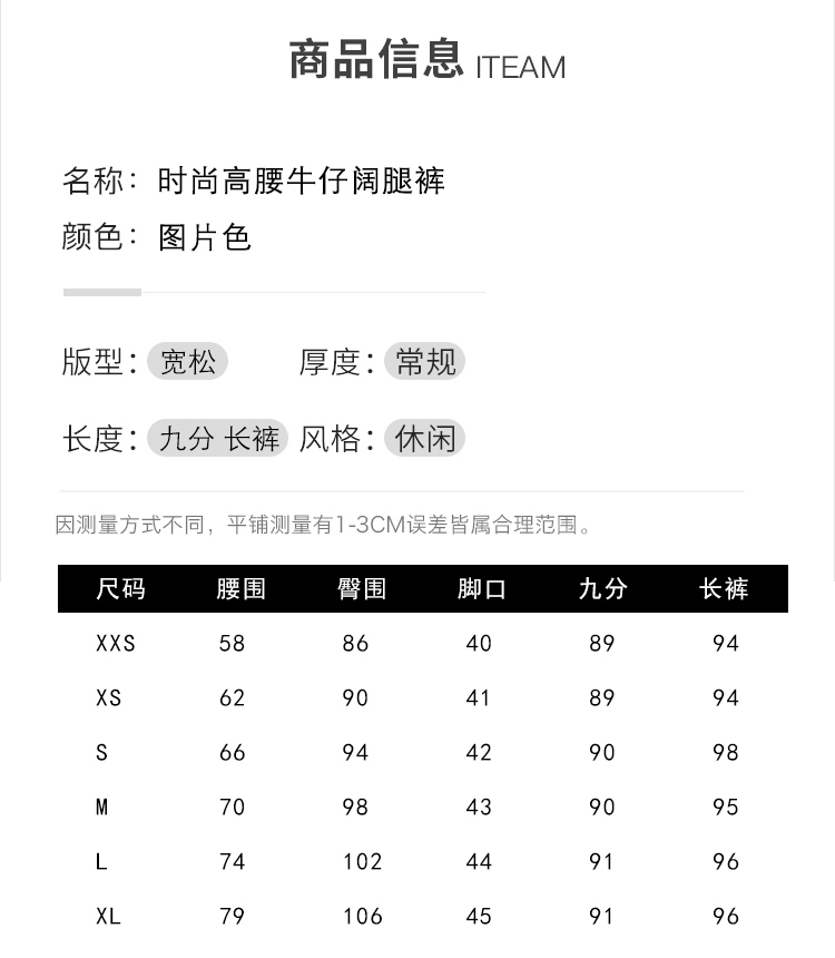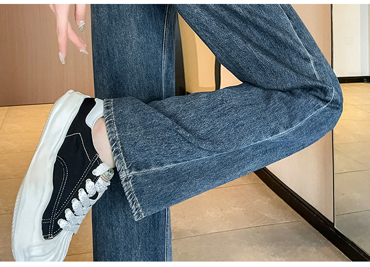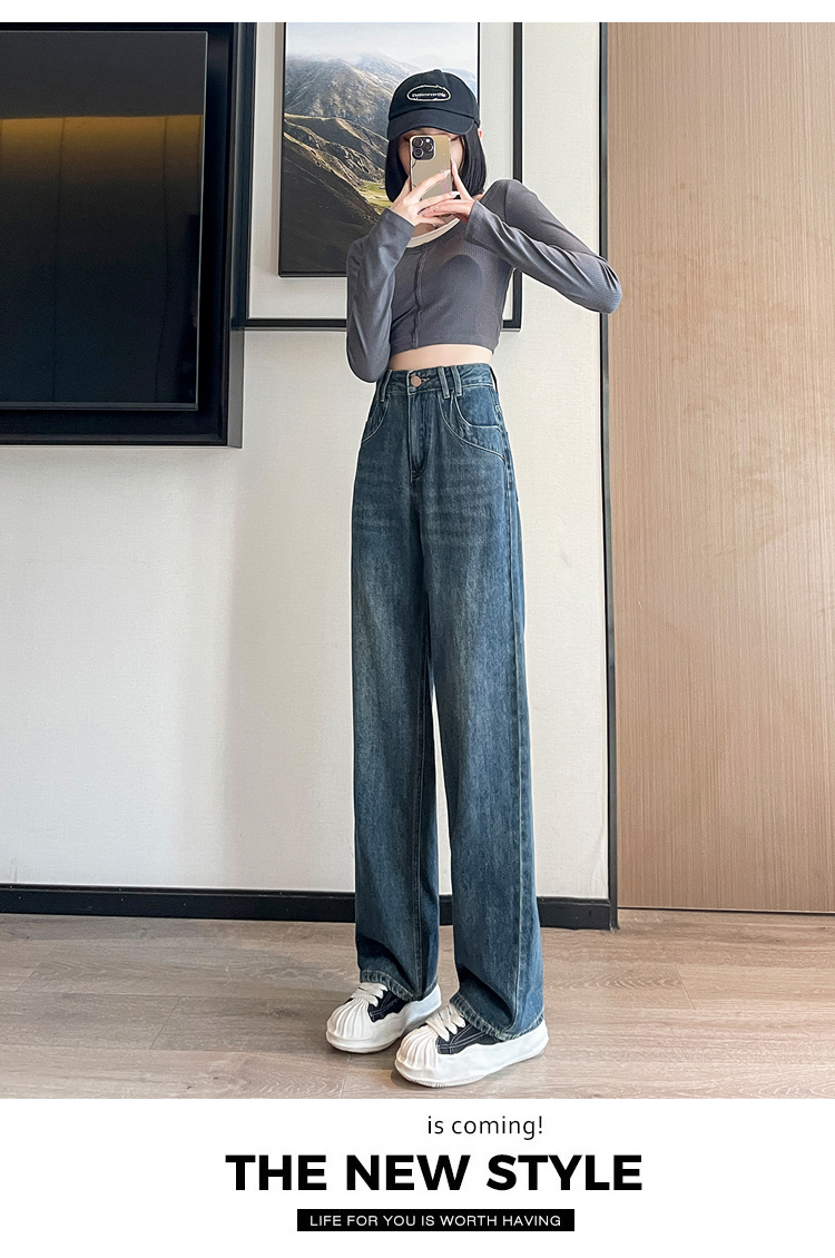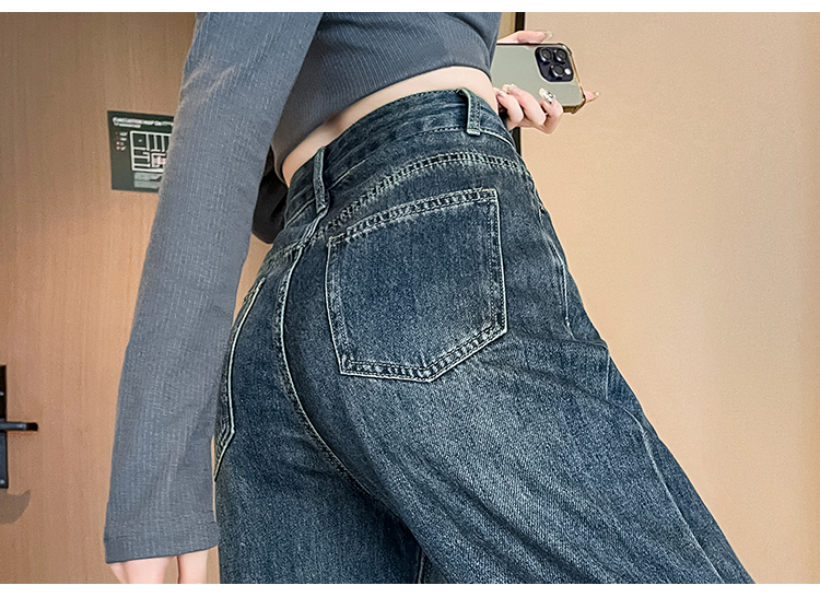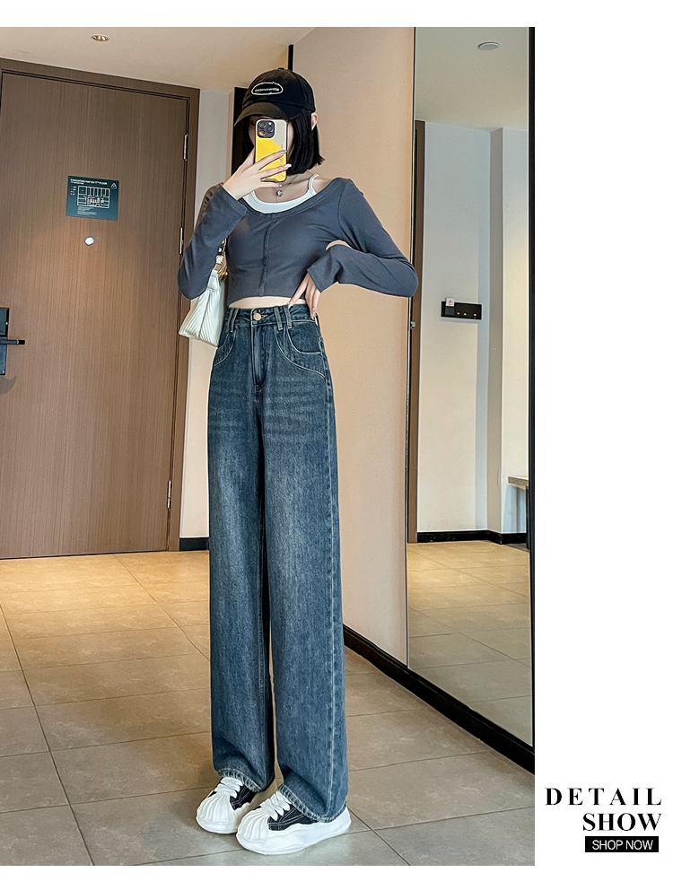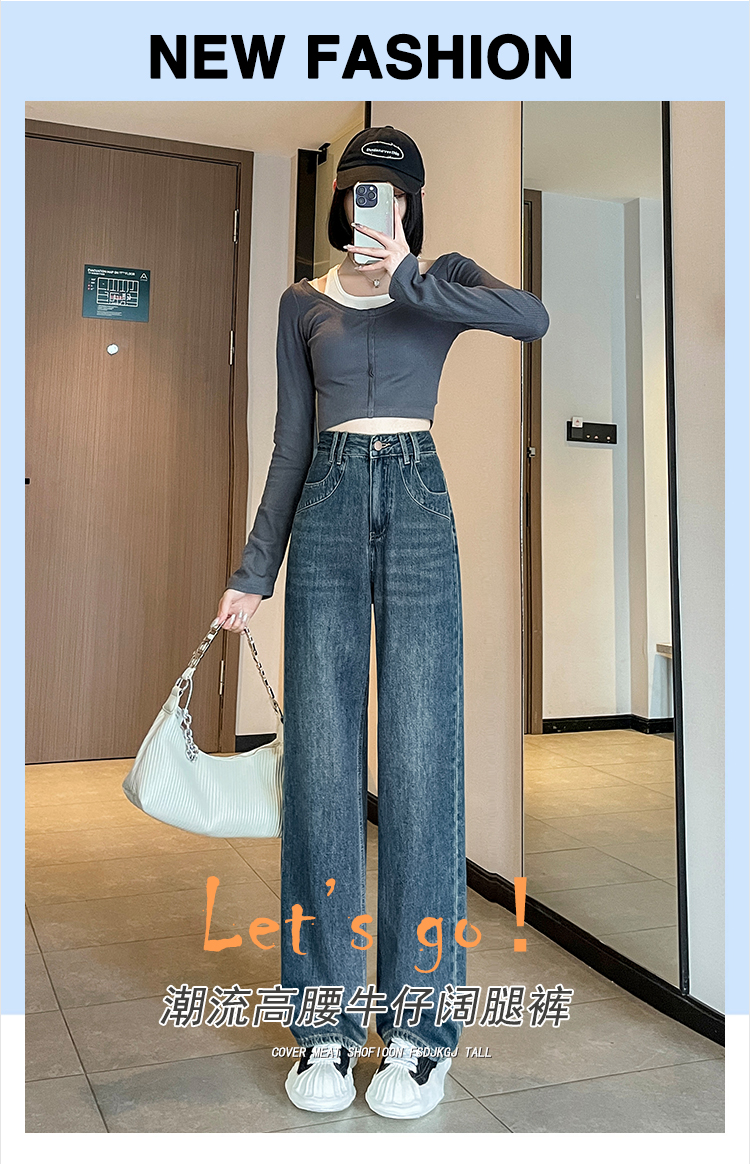 RM33464#小个子牛仔阔腿裤女 高腰修身九分裤直筒显高拖地裤
