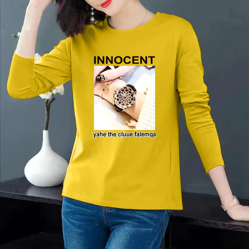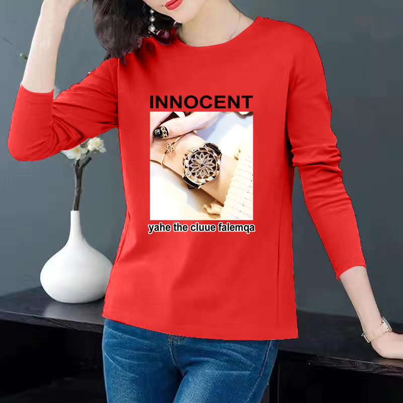 CP92#长期特价款!纯棉圆领t恤长袖女秋冬宽松百搭打底衫印花上衣潮