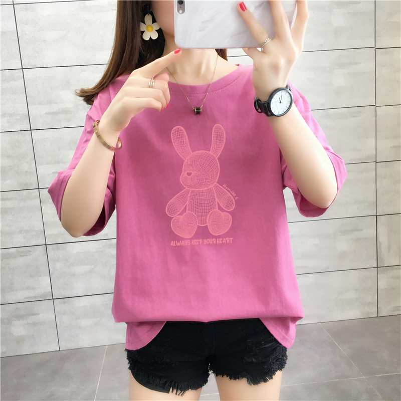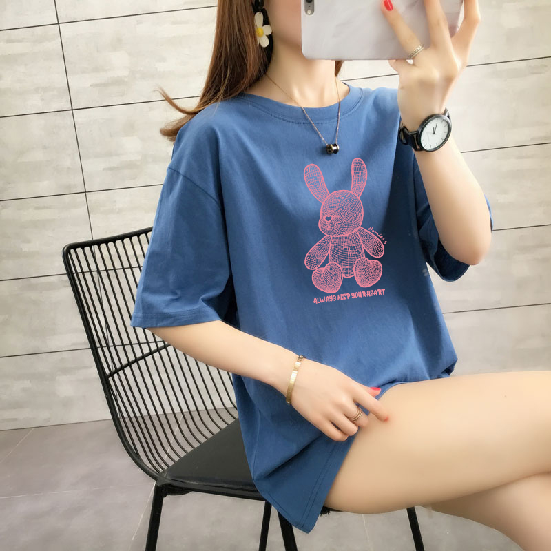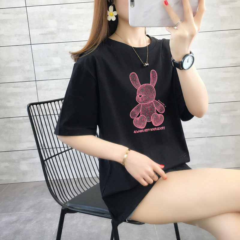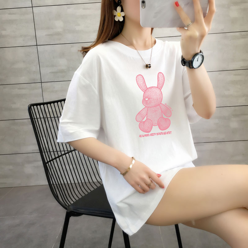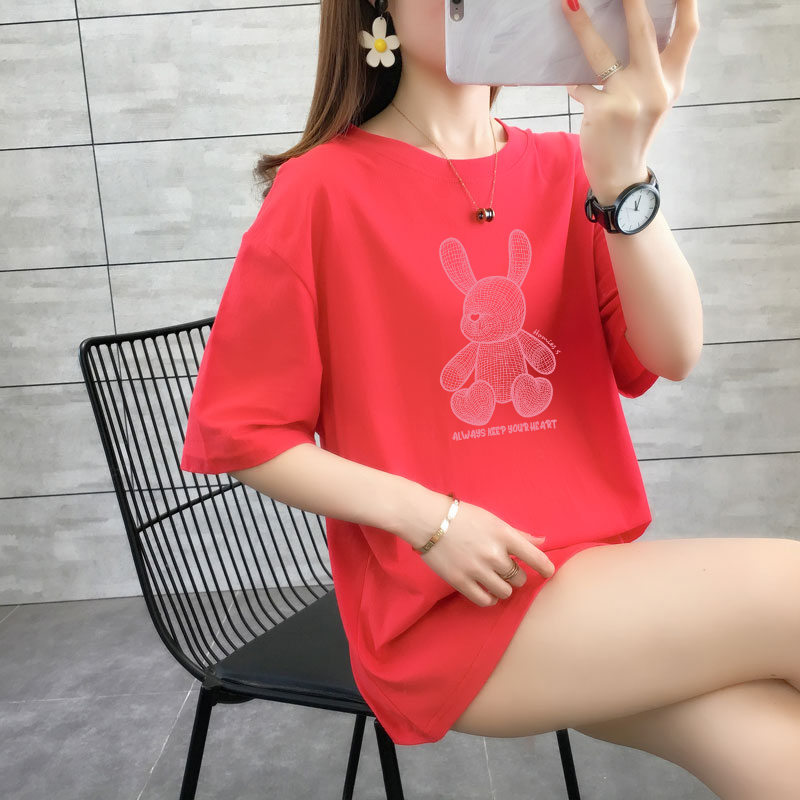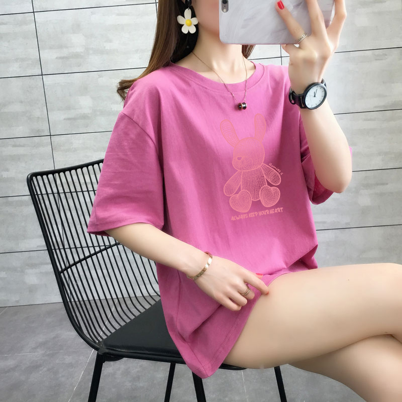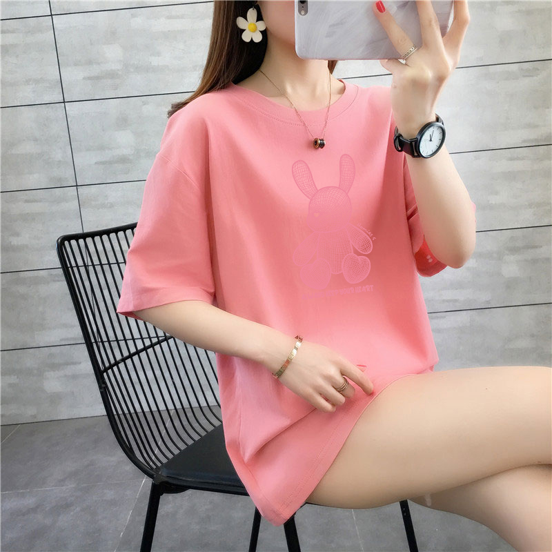 CP95#长期特价款!纯棉 宽松加大码中长款夏装新款学生纯棉短袖t恤女100%精梳棉