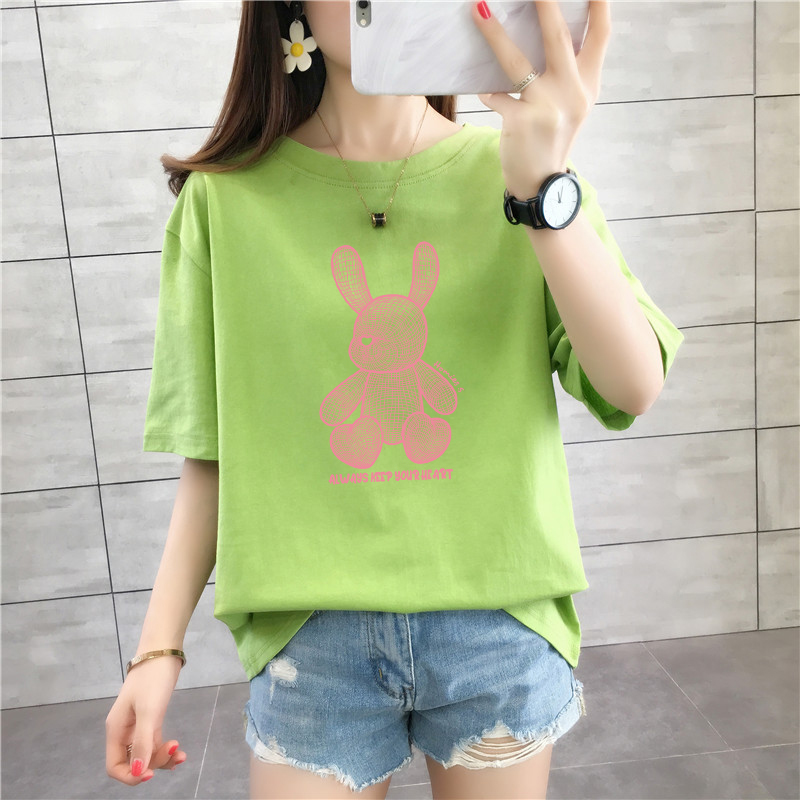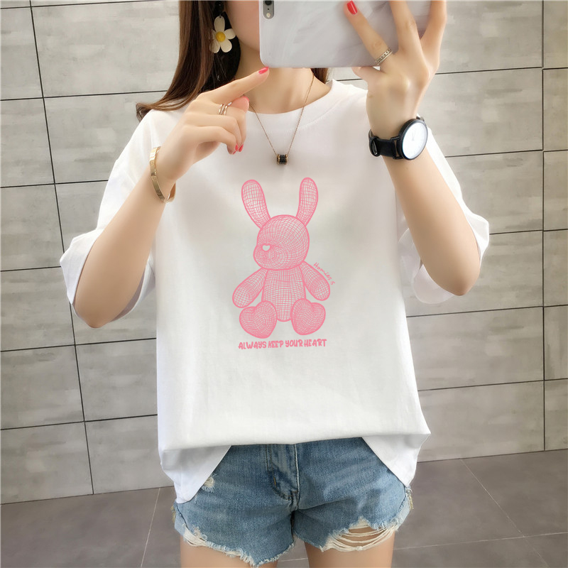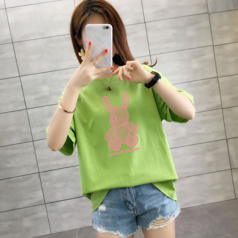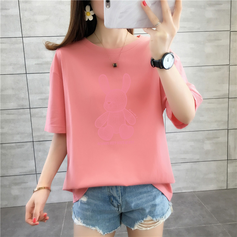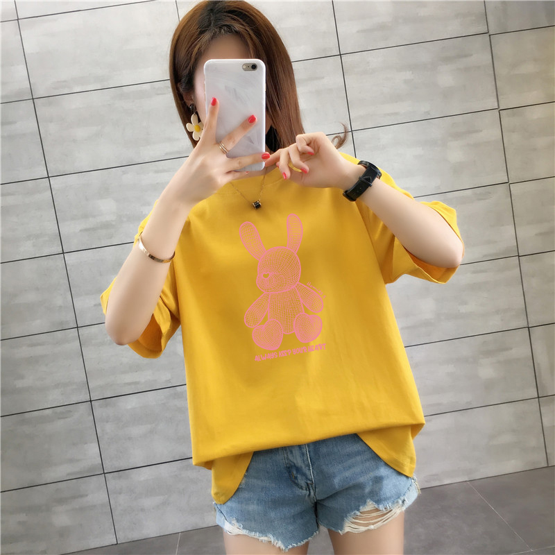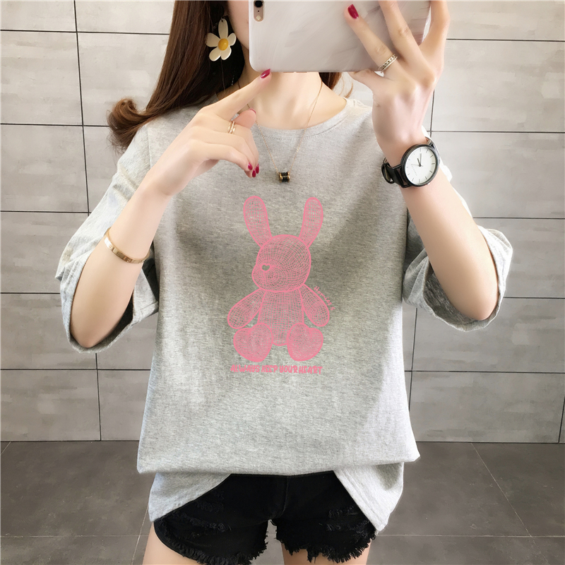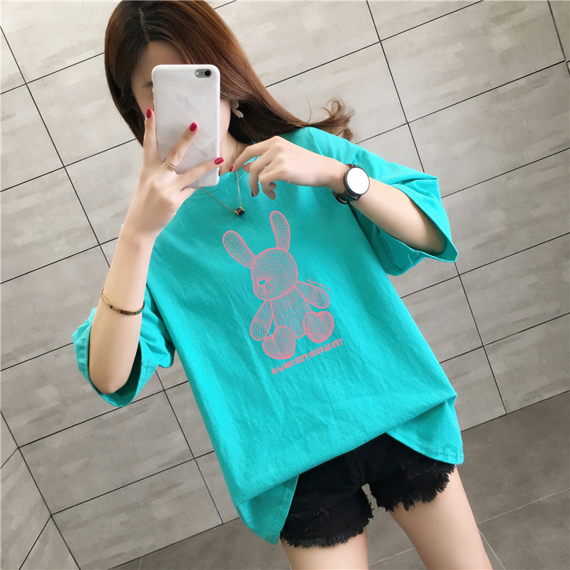 CP95#长期特价款!纯棉 宽松加大码中长款夏装新款学生纯棉短袖t恤女100%精梳棉