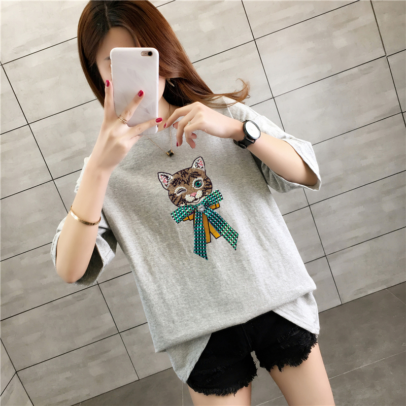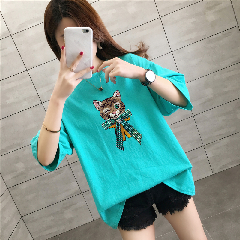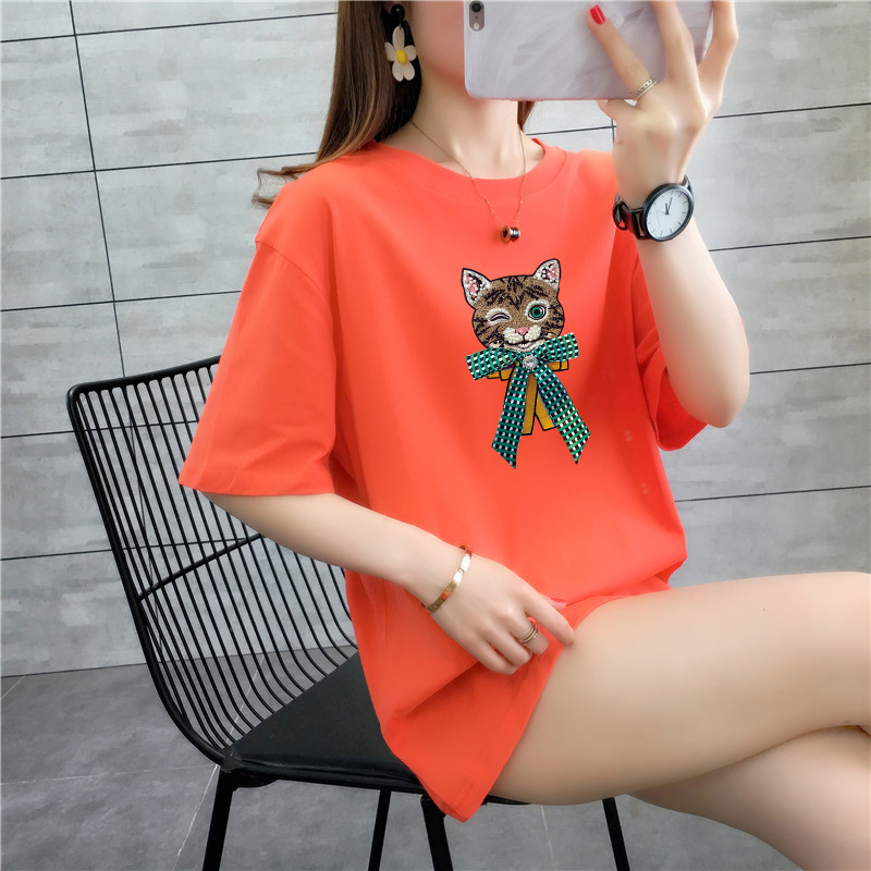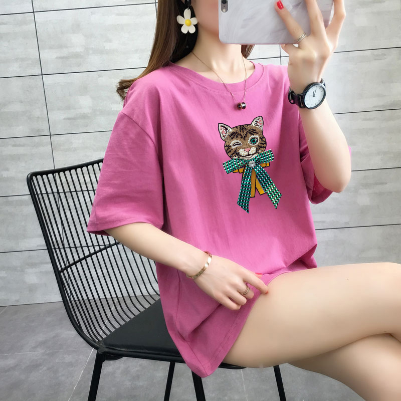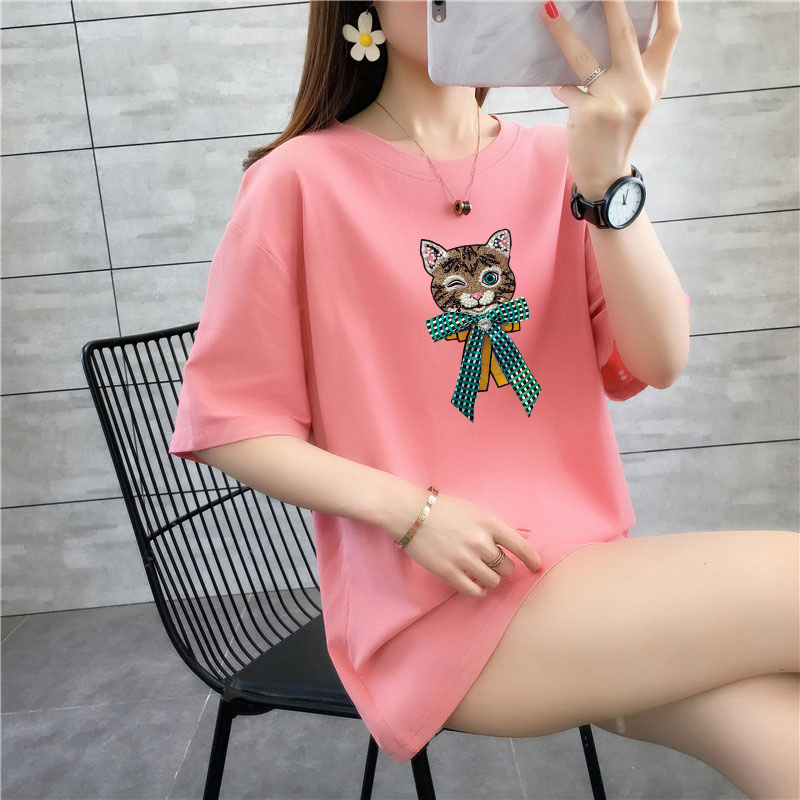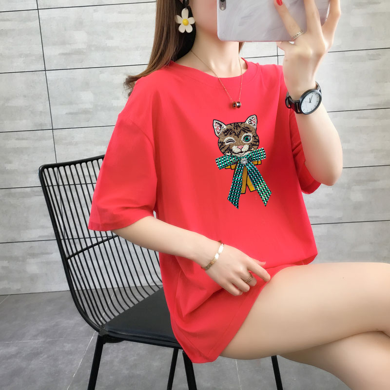 CP99#长期特价款!纯棉 宽松加大码中长款夏装新款学生纯棉短袖t恤女100%精梳棉