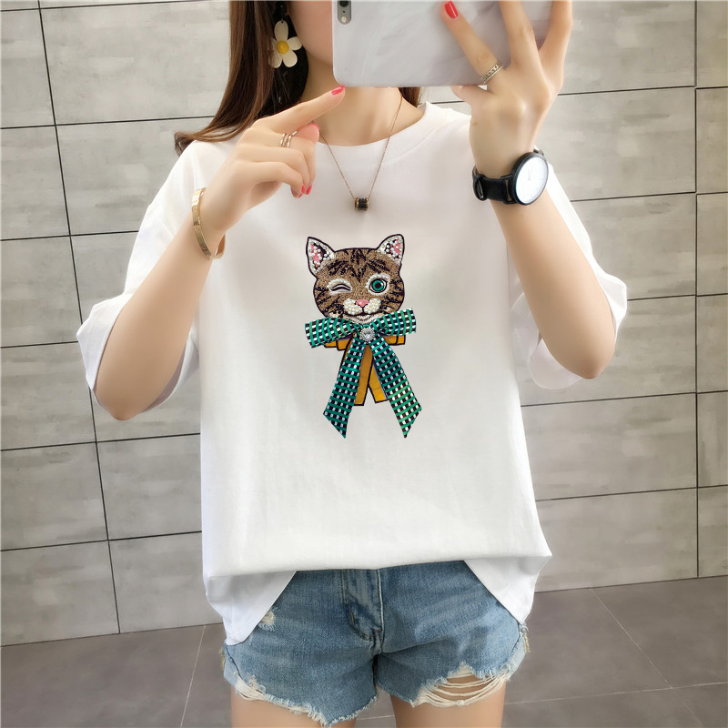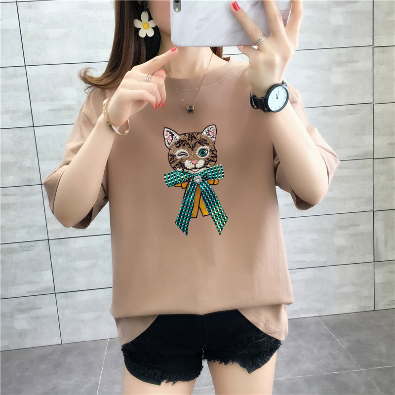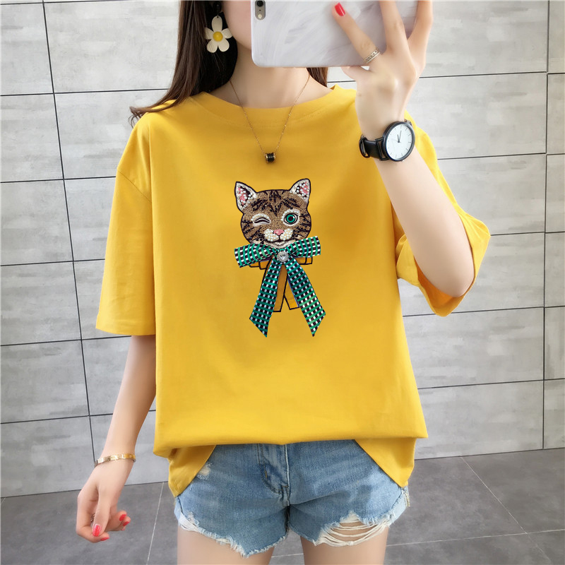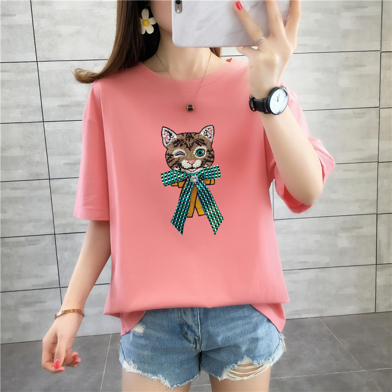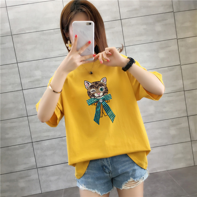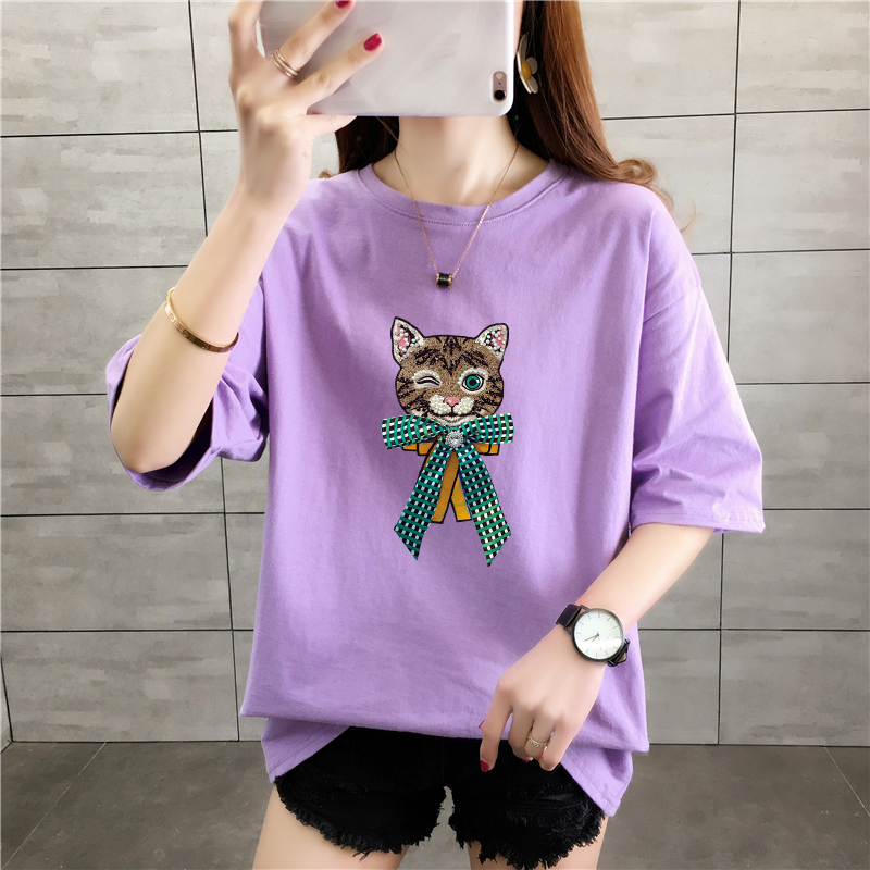 CP99#长期特价款!纯棉 宽松加大码中长款夏装新款学生纯棉短袖t恤女100%精梳棉