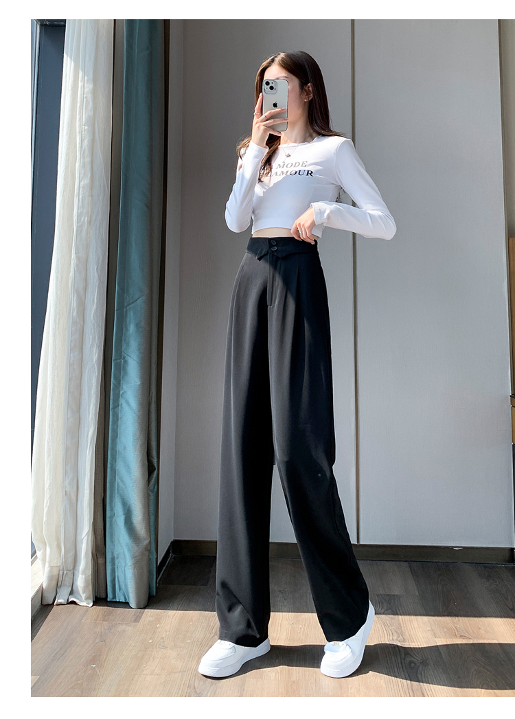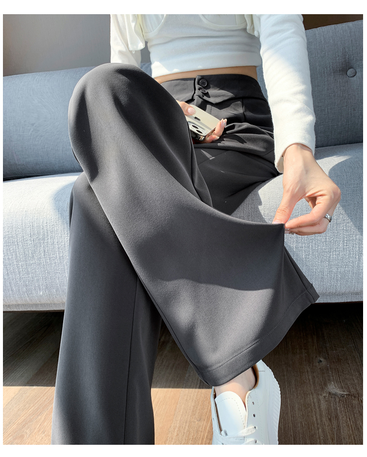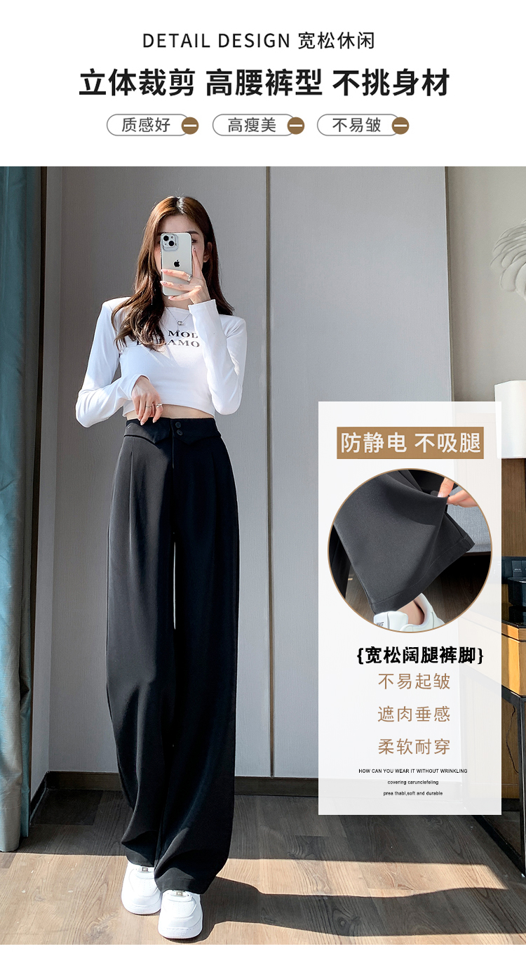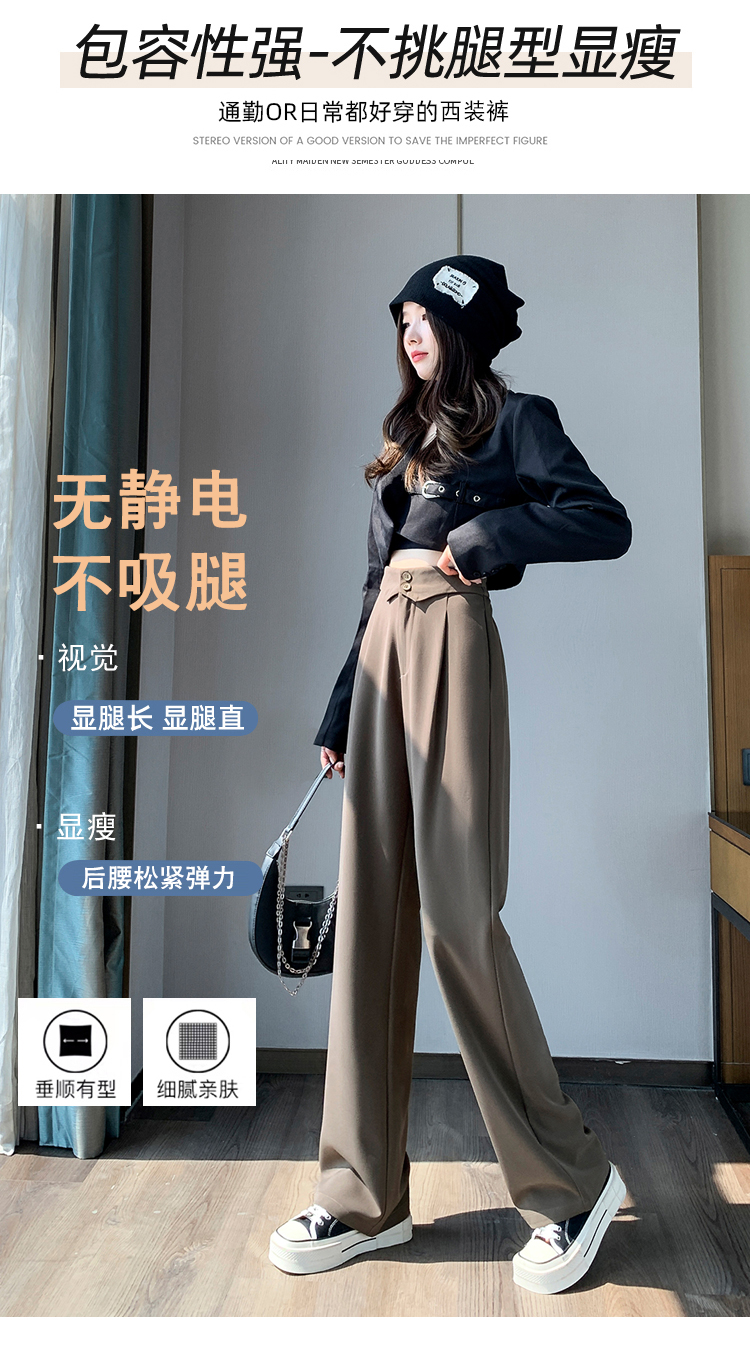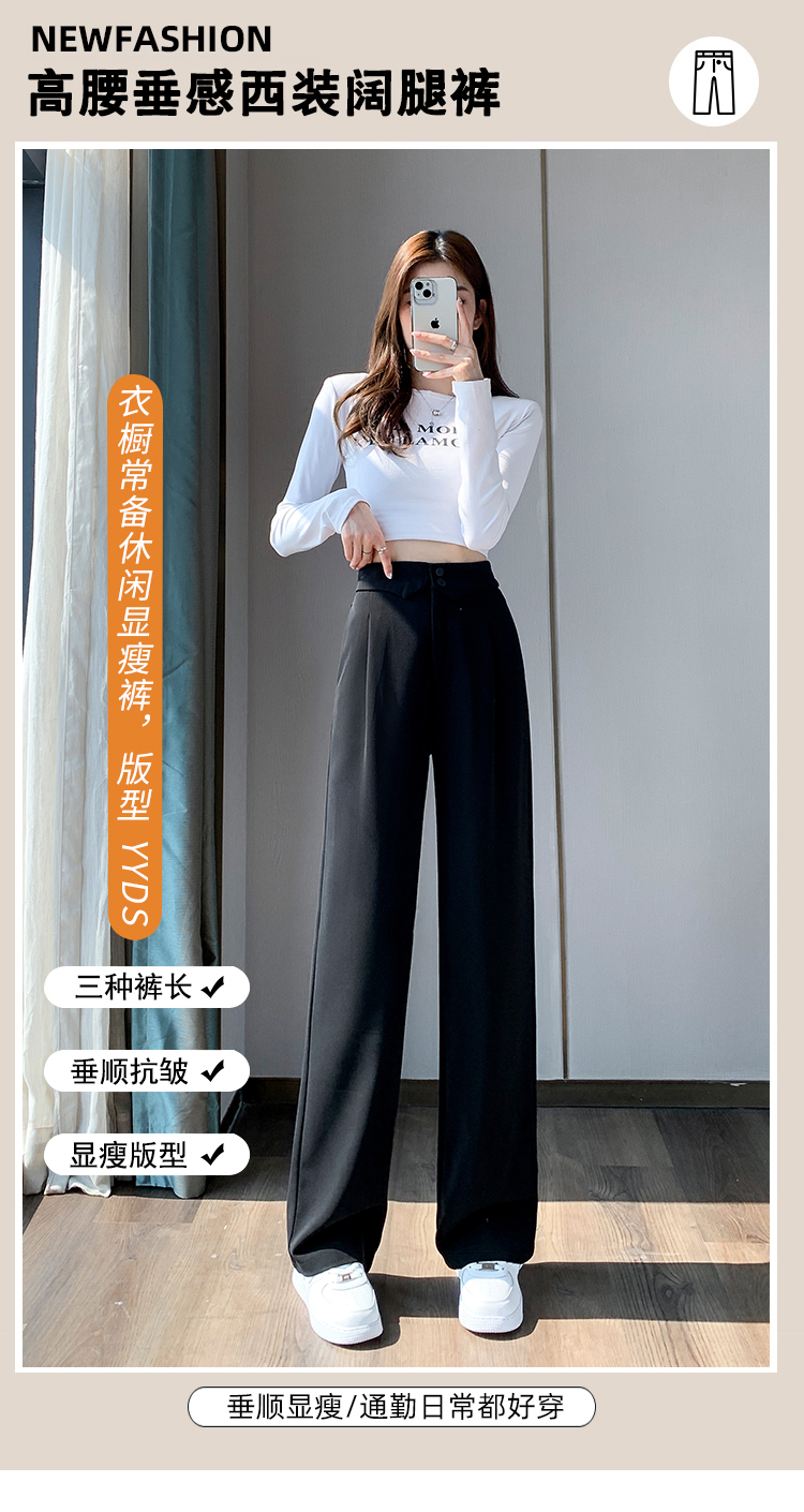 RM33514#新款窄版西装拖地裤女小个子直筒宽松休闲高腰显瘦阔腿裤