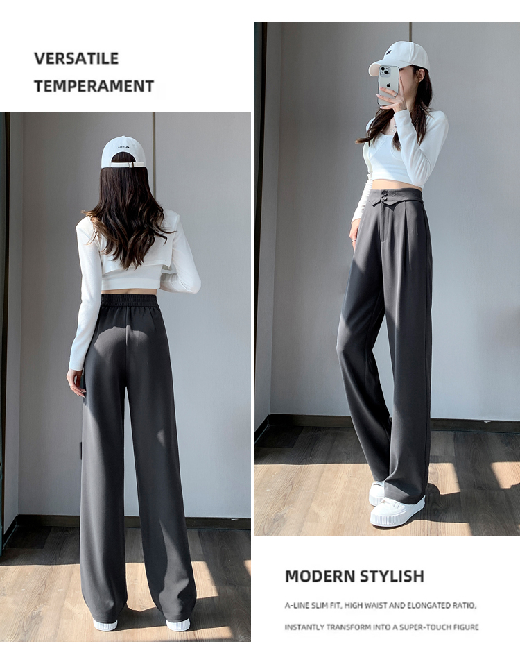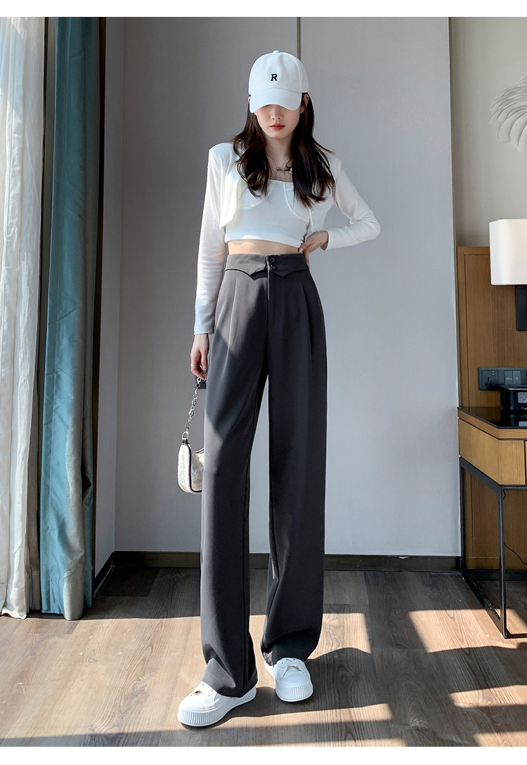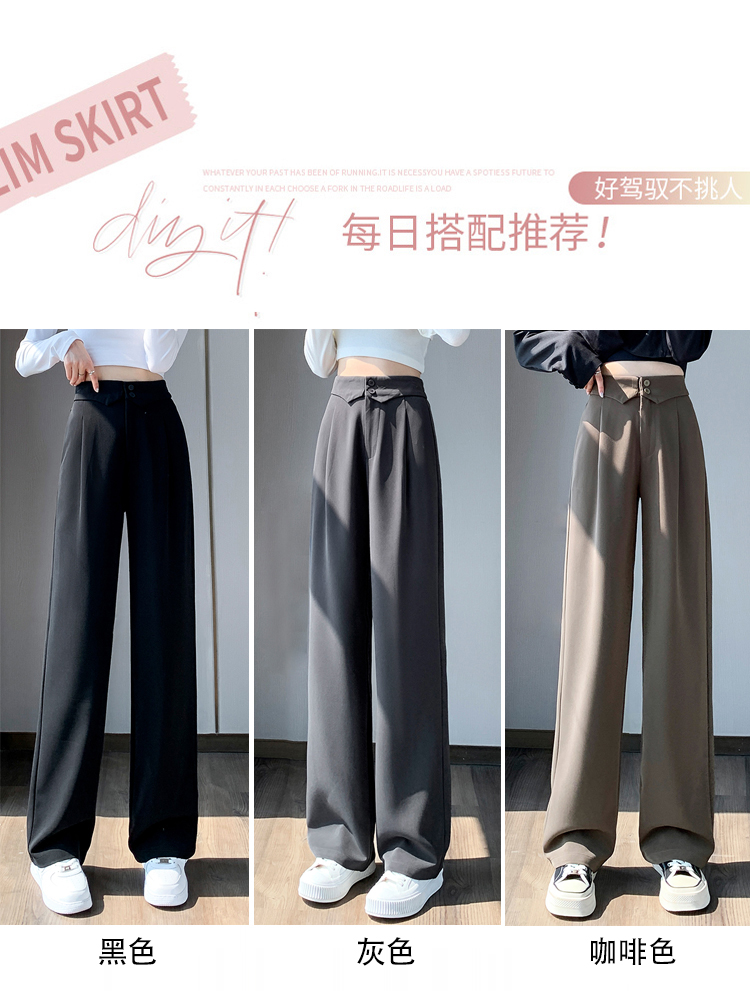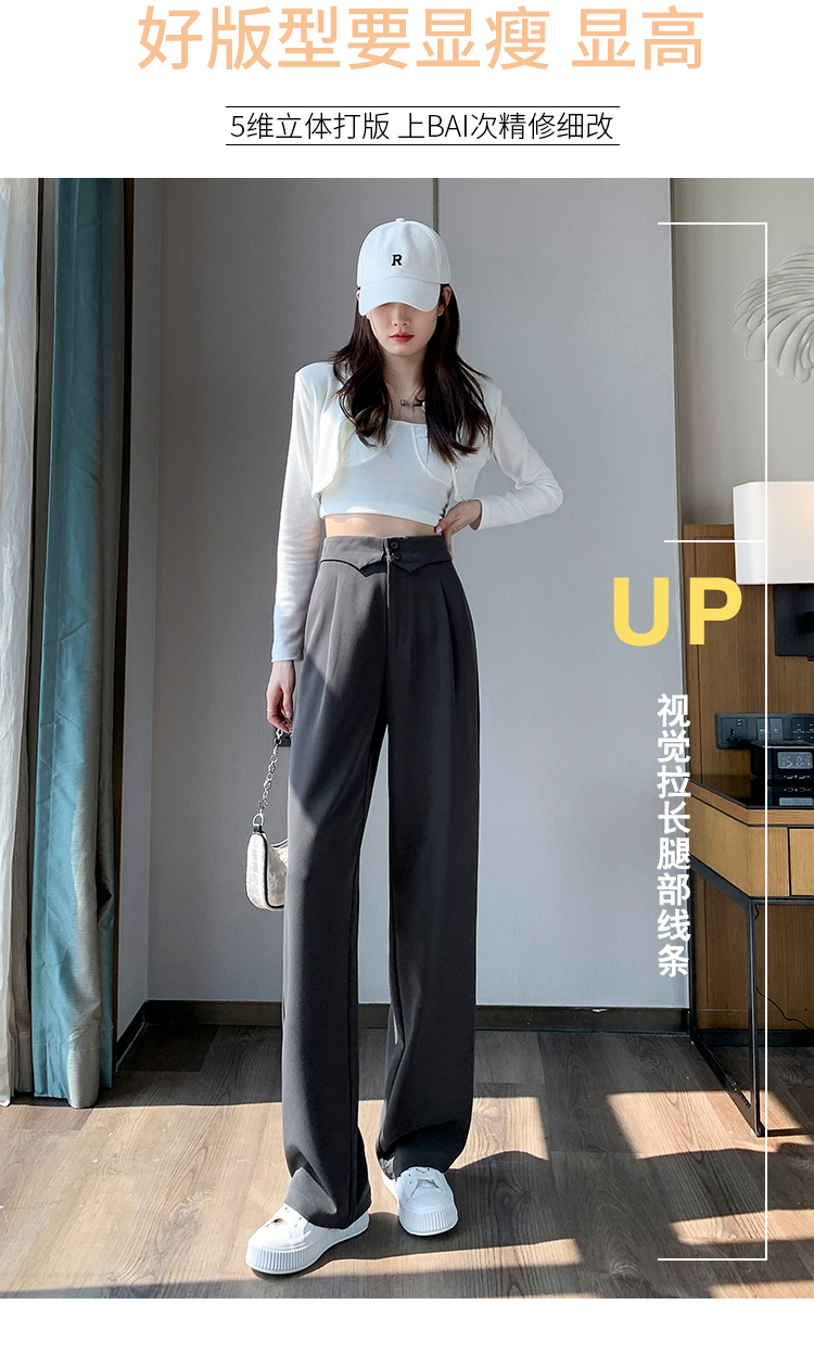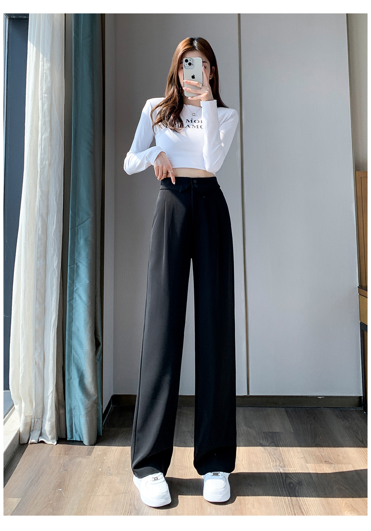 RM33514#新款窄版西装拖地裤女小个子直筒宽松休闲高腰显瘦阔腿裤