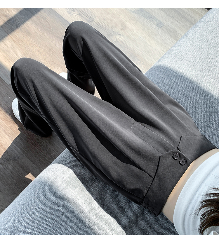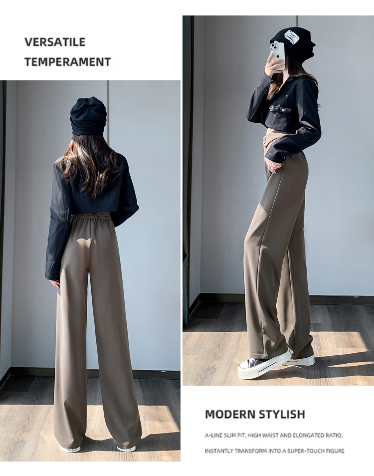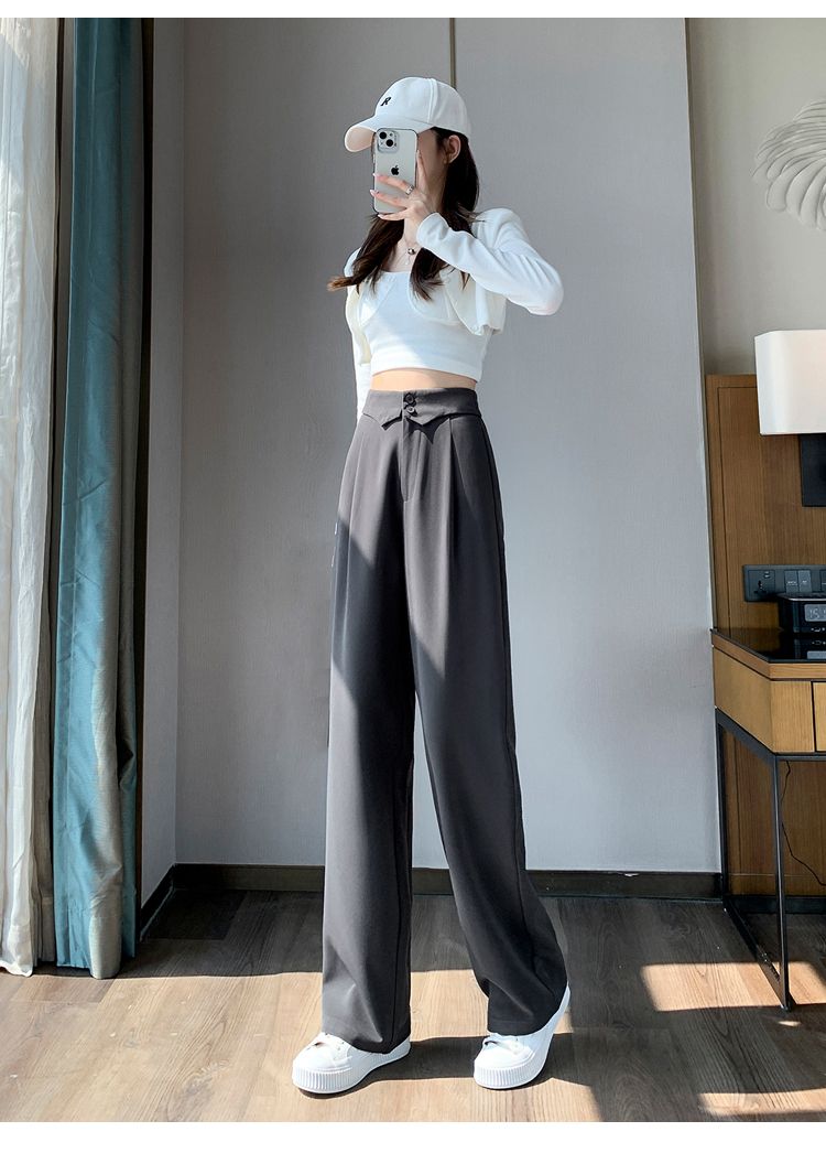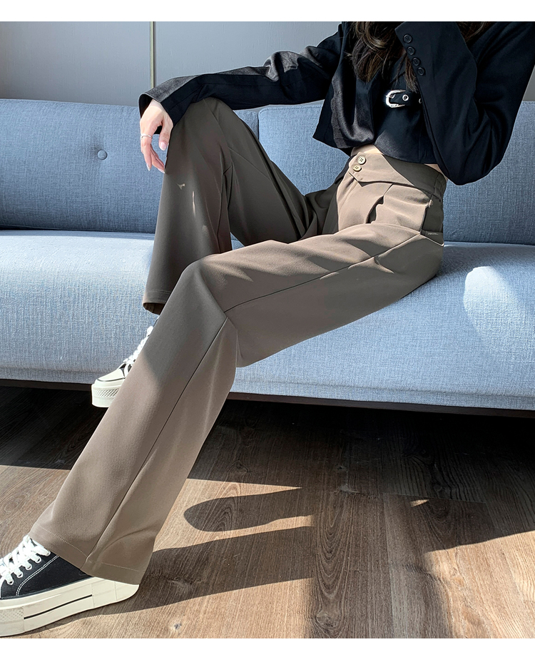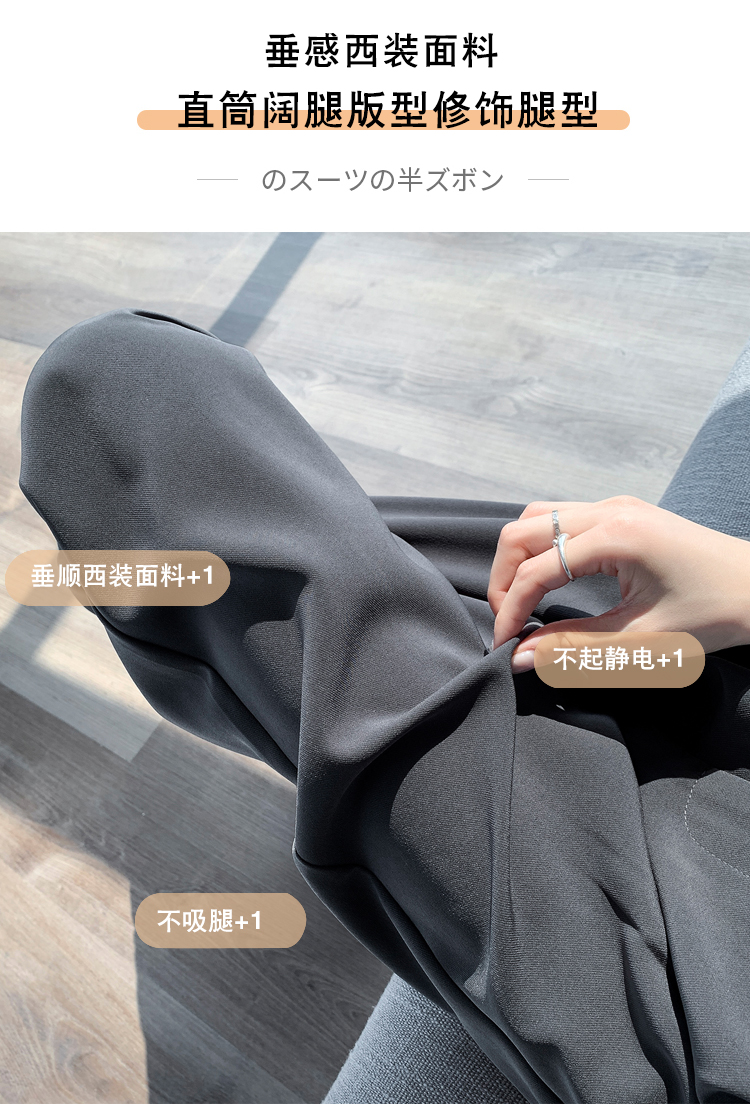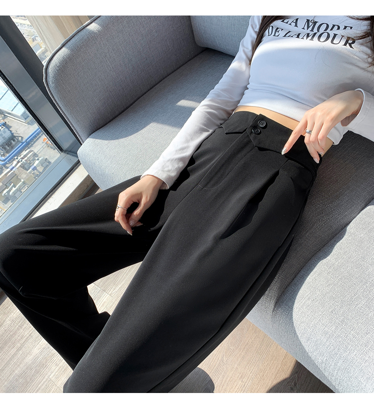 RM33514#新款窄版西装拖地裤女小个子直筒宽松休闲高腰显瘦阔腿裤