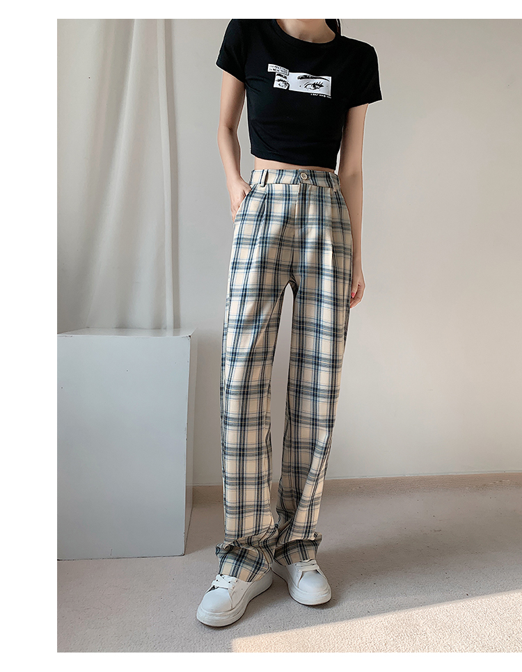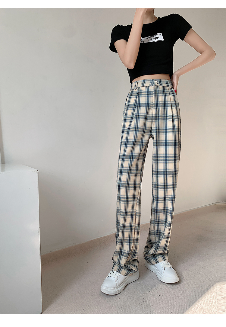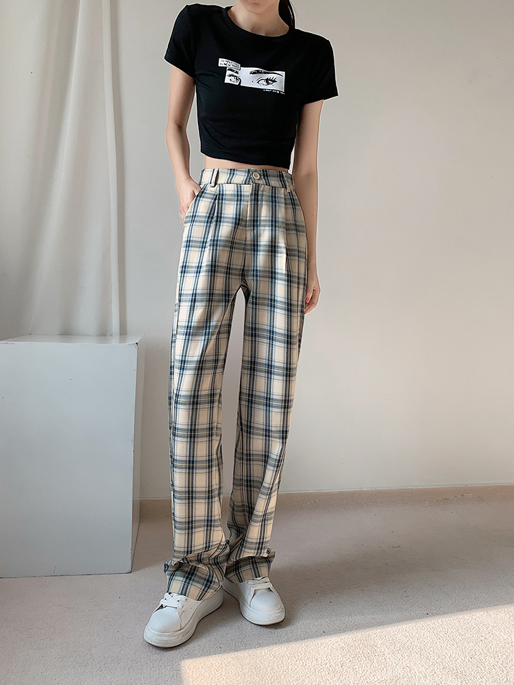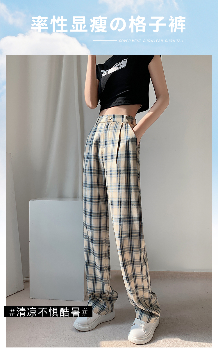RM33516#薄款高腰格子直筒女长裤休闲宽松显瘦百搭阔腿裤女