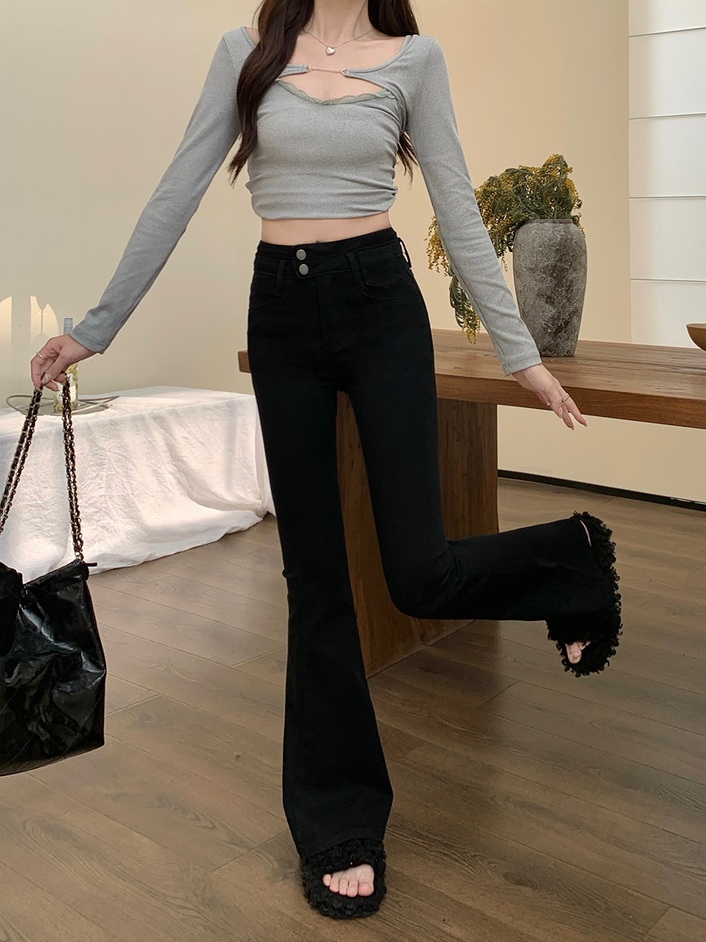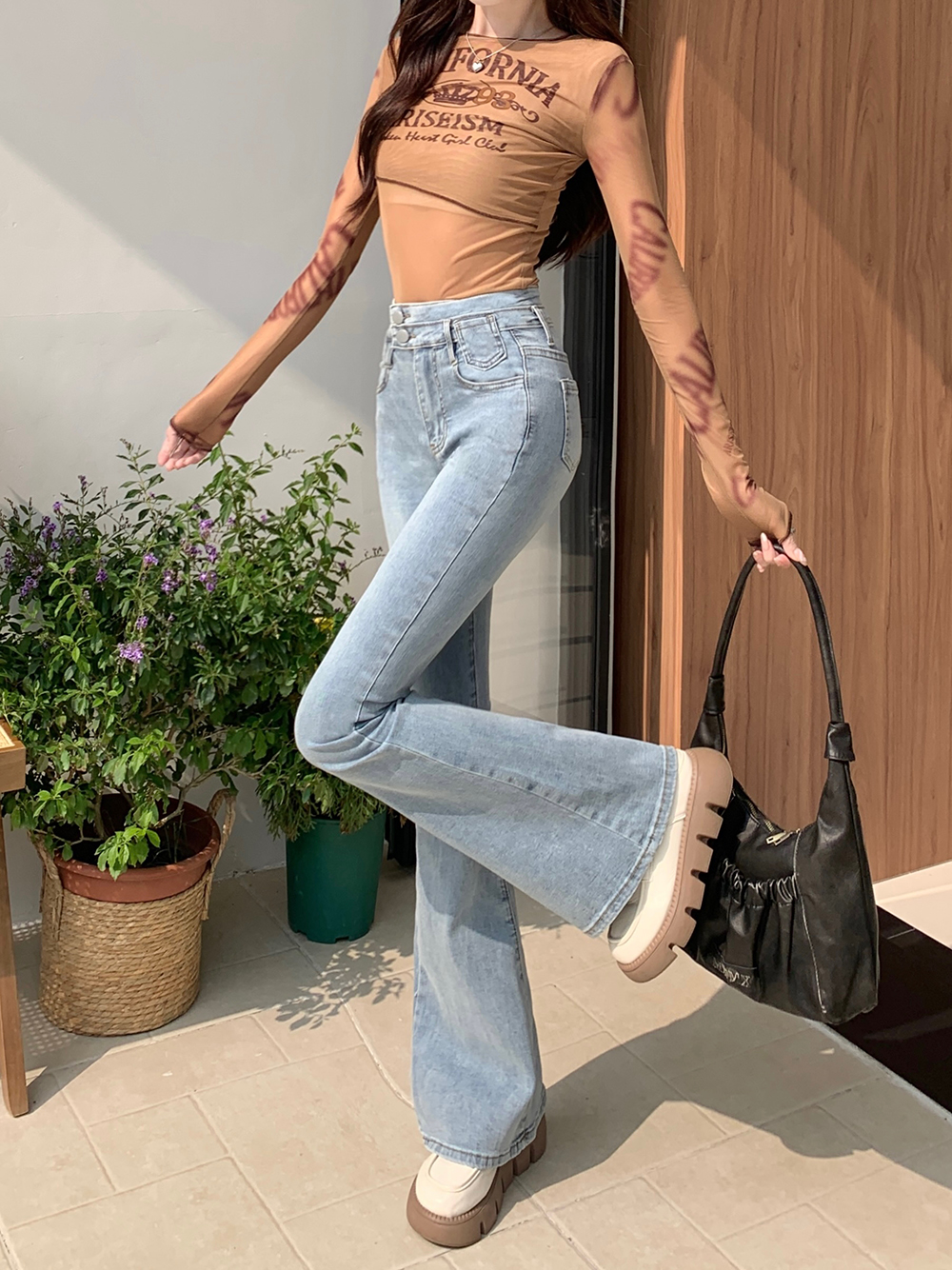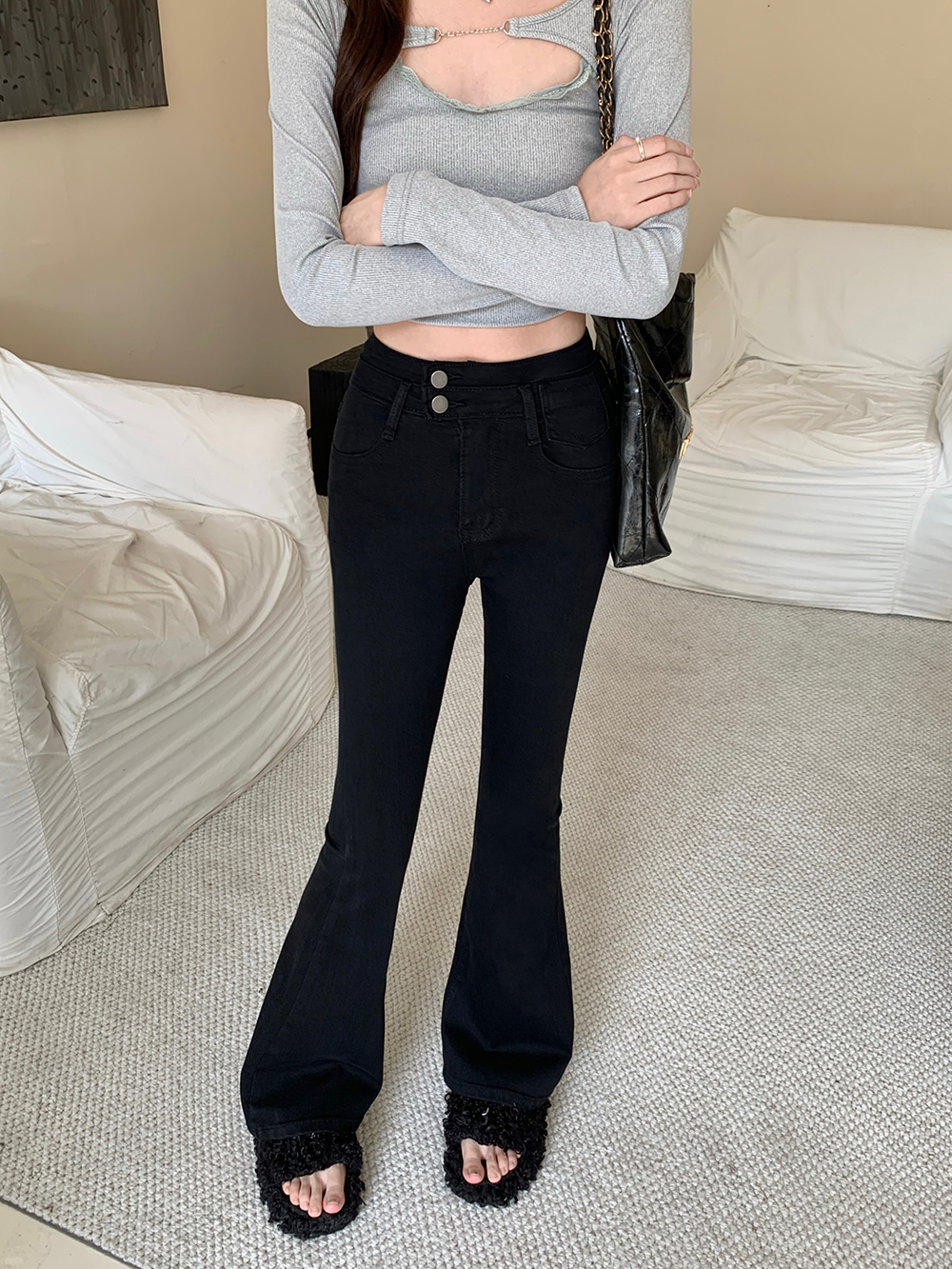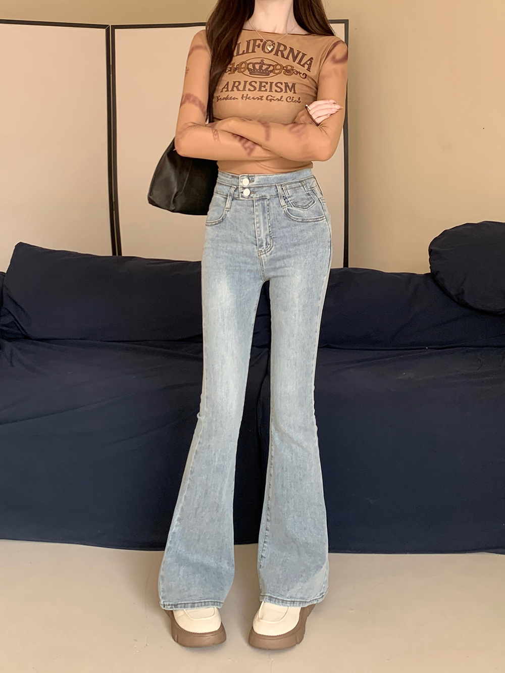 L:腰围68cm(弹力) 臀围84cm(弹力) 裤长106cm