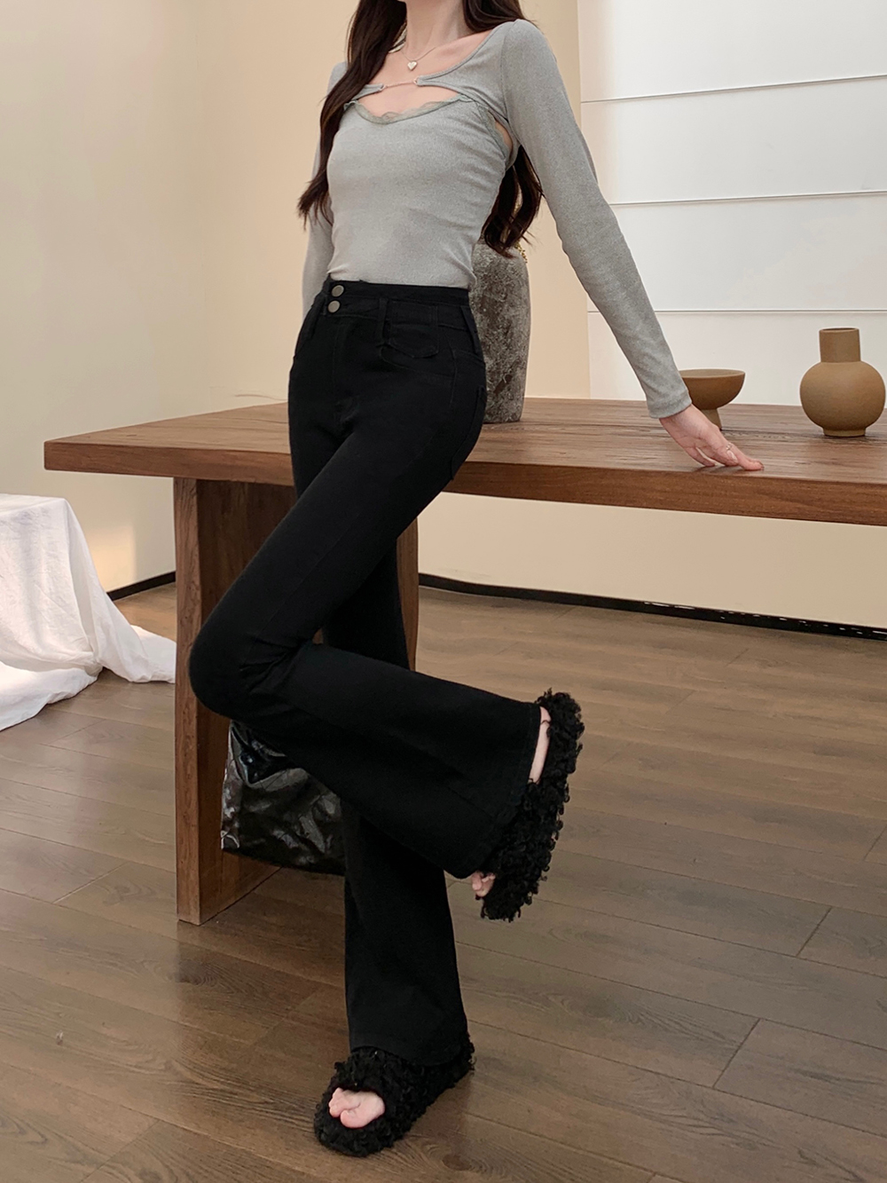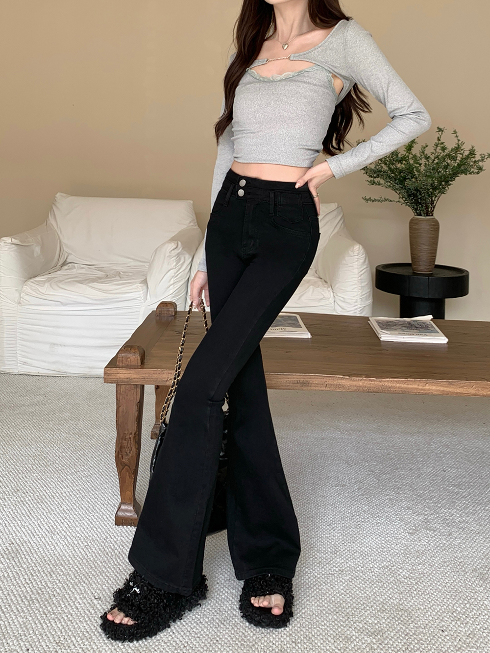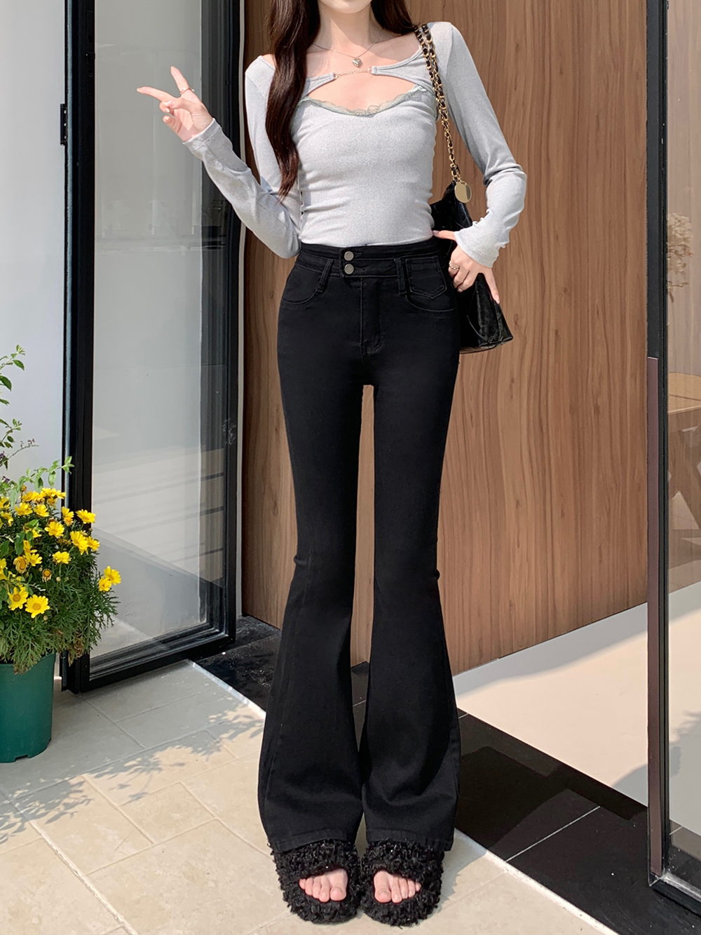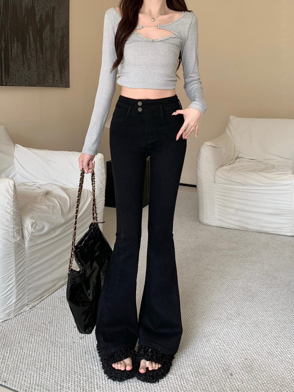 L:腰围68cm(弹力) 臀围84cm(弹力) 裤长106cm