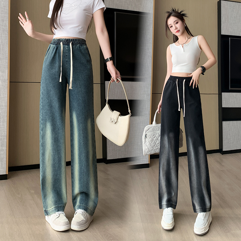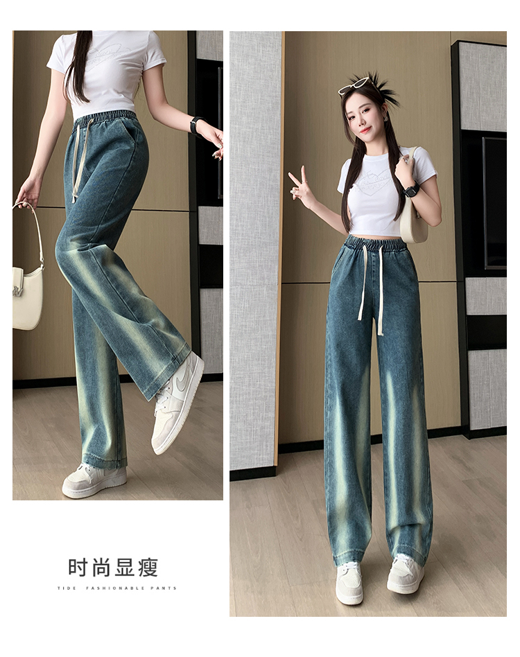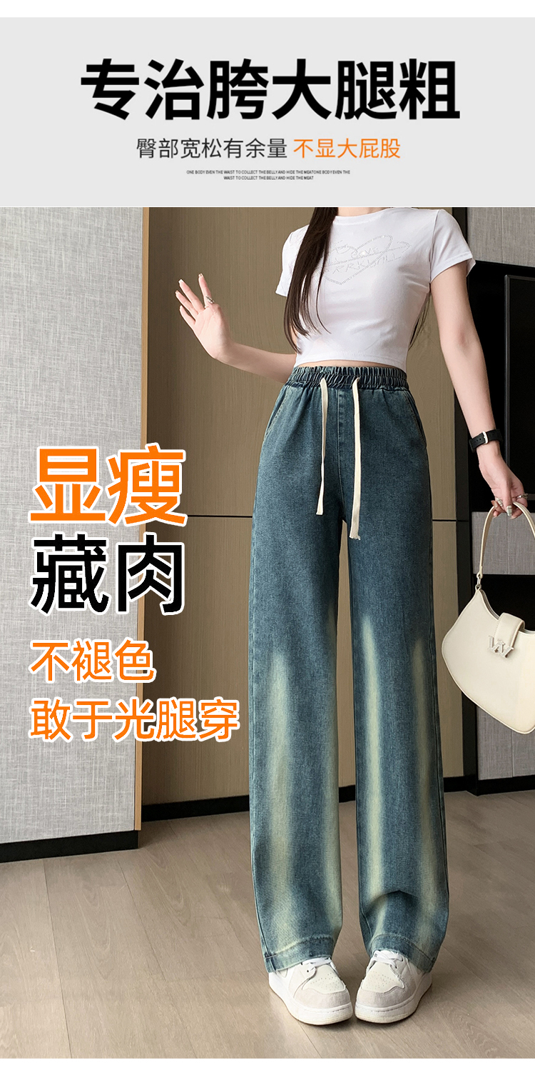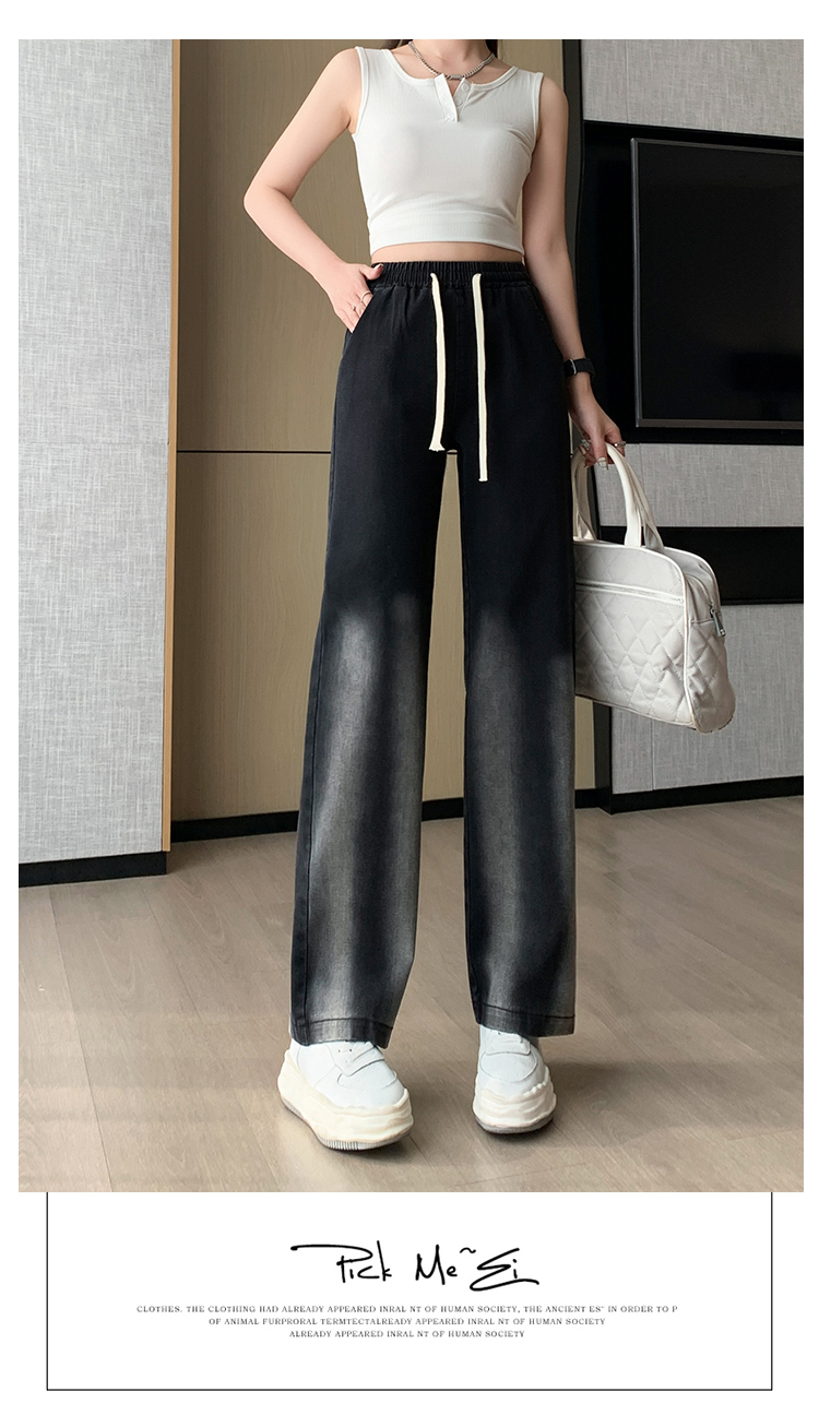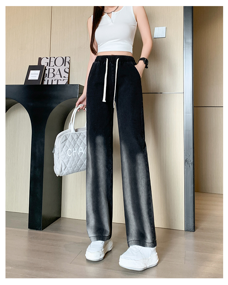 RM33565#渐变牛仔裤女2024春夏新款百搭休闲时尚高腰显瘦简约阔腿长裤