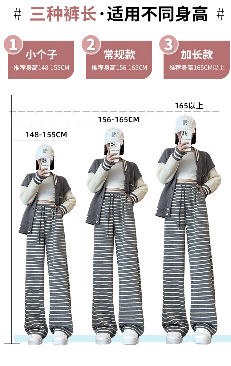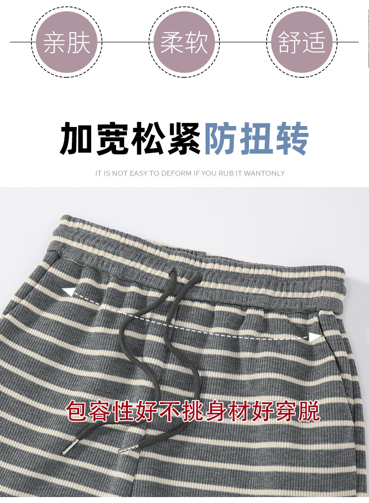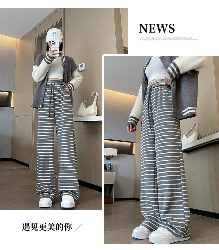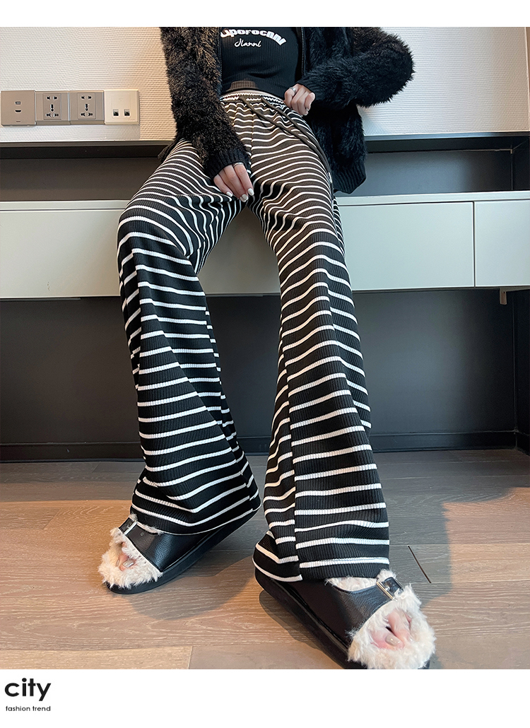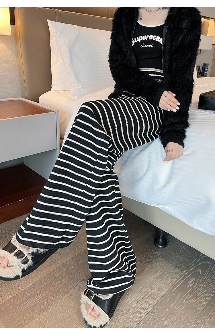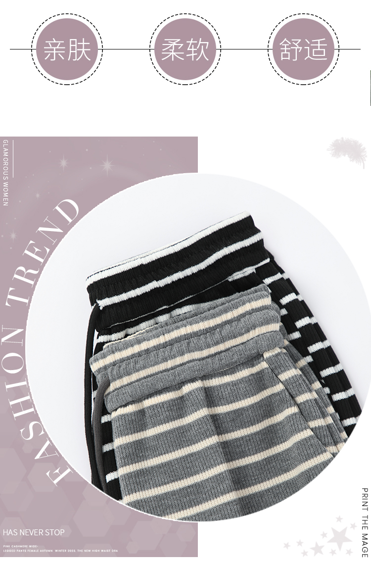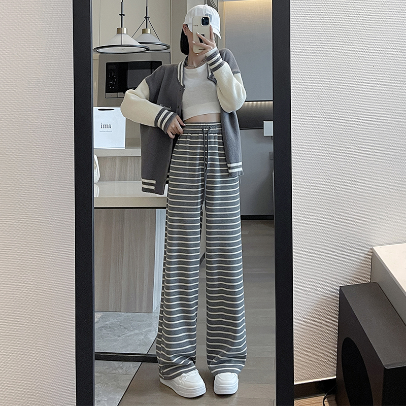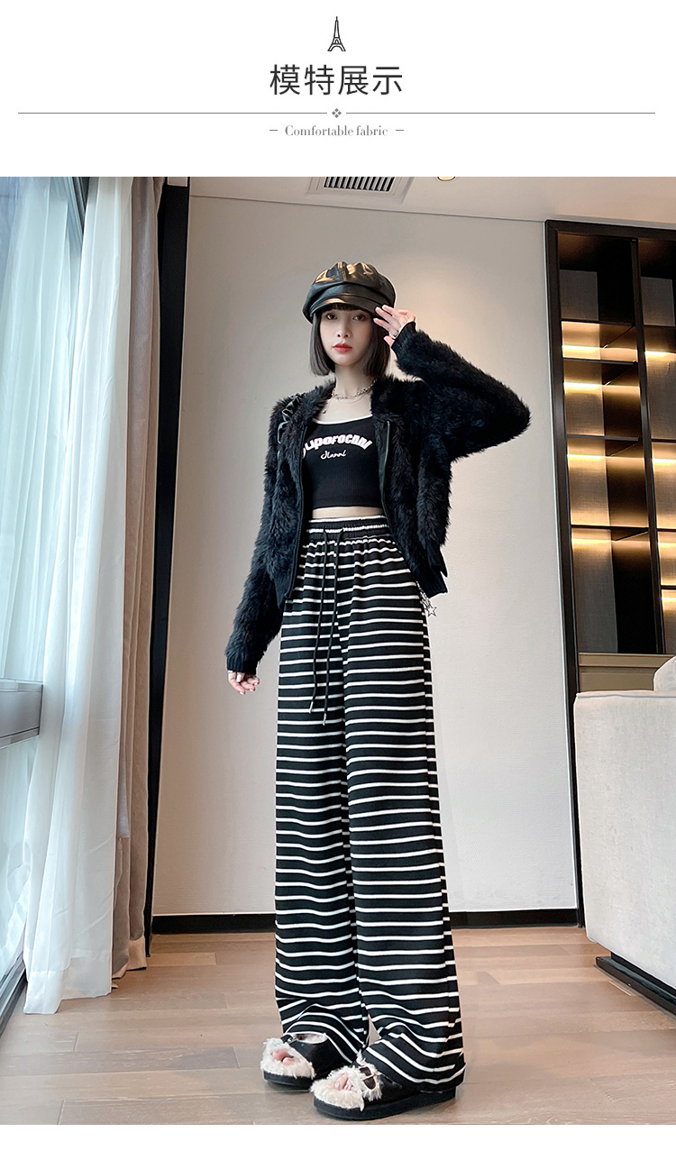 RM33568#时尚宽松百搭条纹松紧高腰休闲裤 新款韩版阔腿长裤