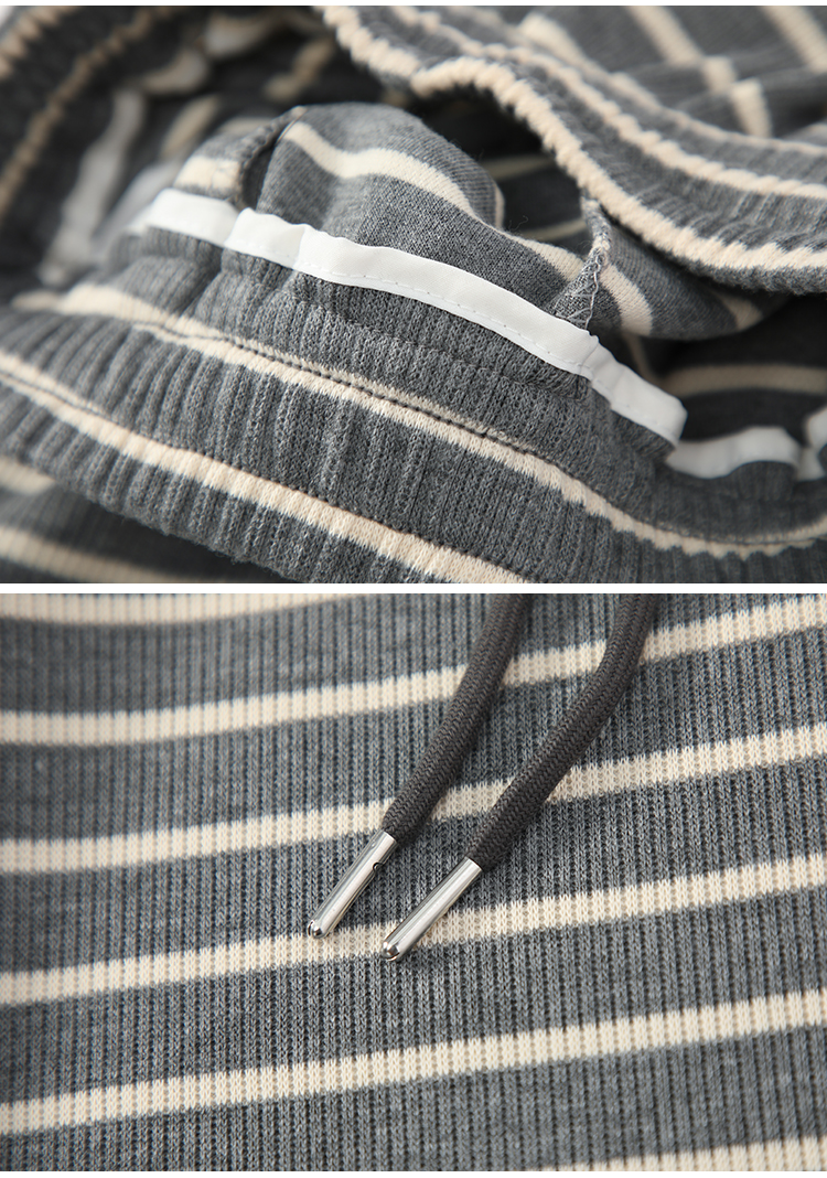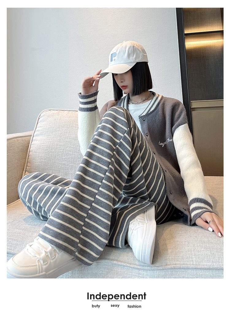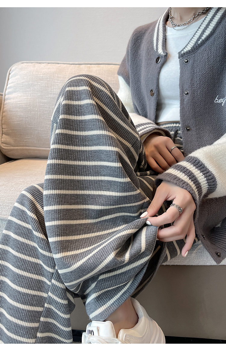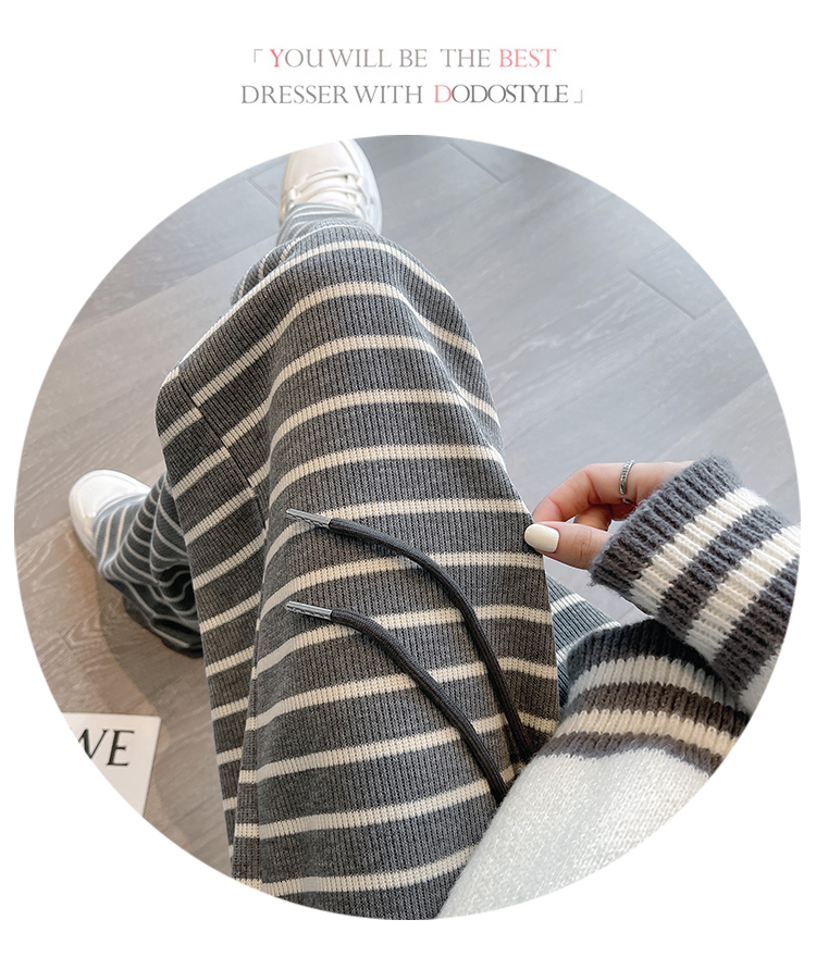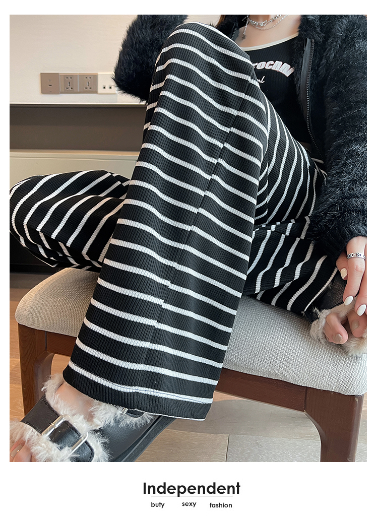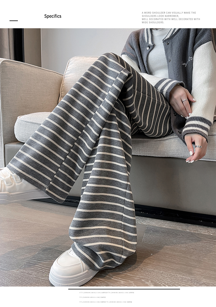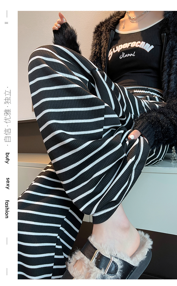 RM33568#时尚宽松百搭条纹松紧高腰休闲裤 新款韩版阔腿长裤