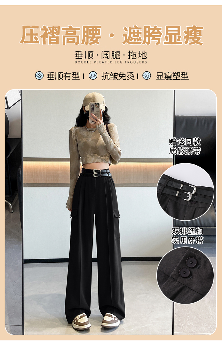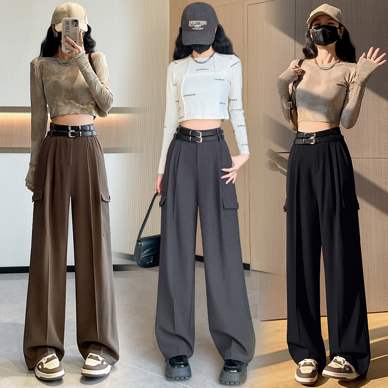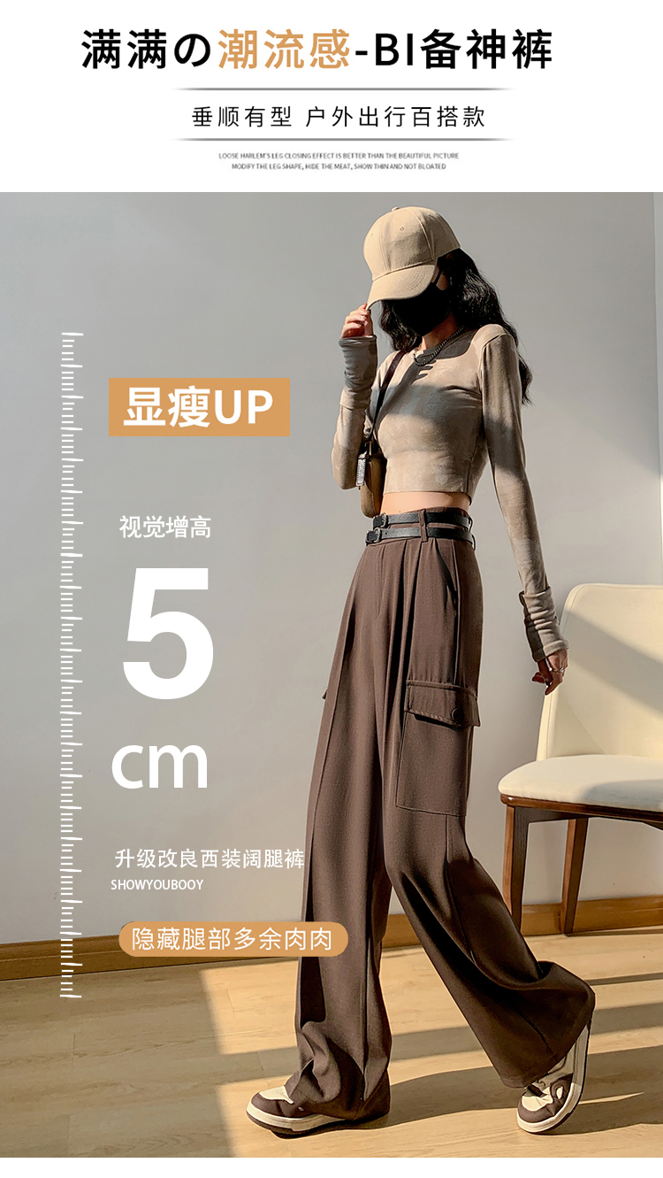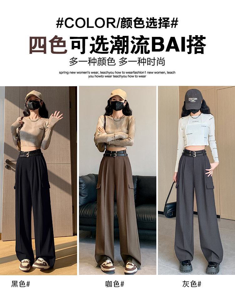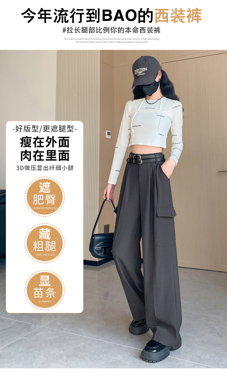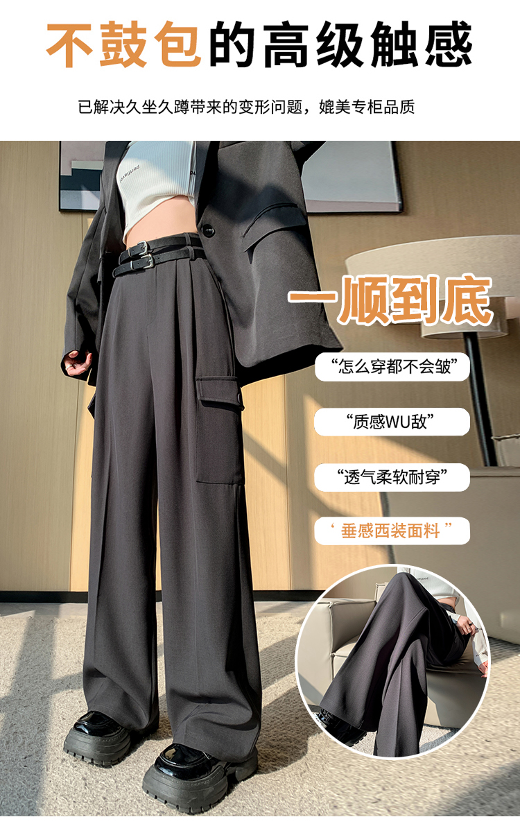 RM33570#工装休闲裤子女2024新款西装裤百搭日系慵懒坠感阔腿长裤