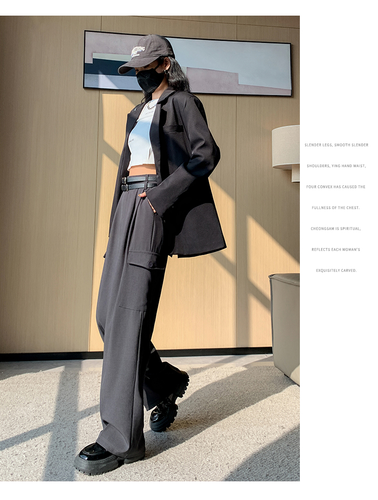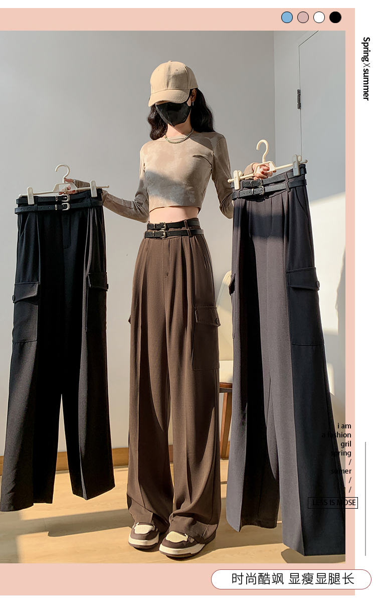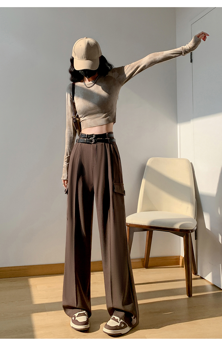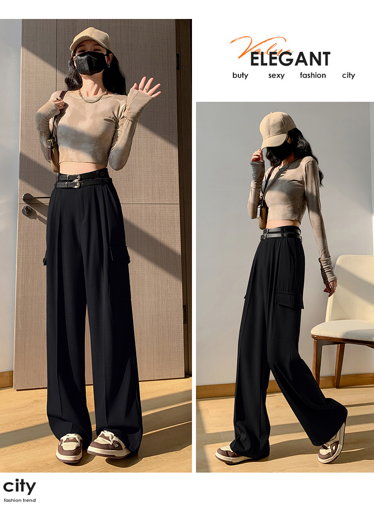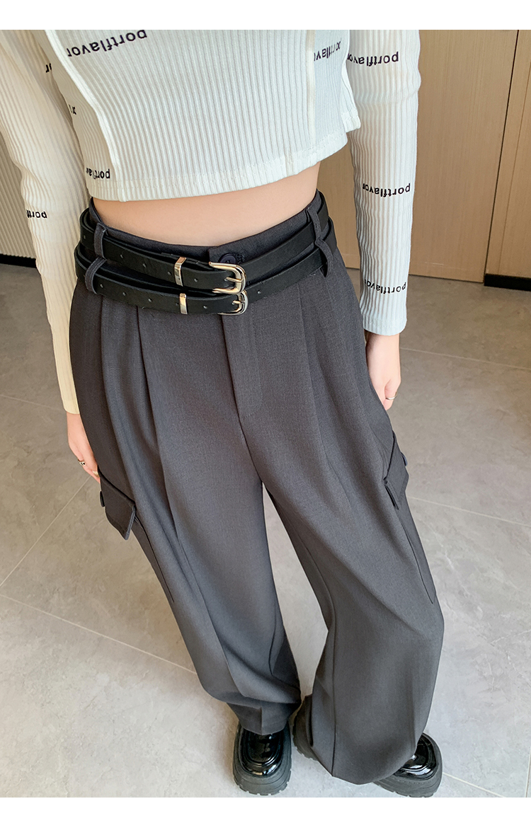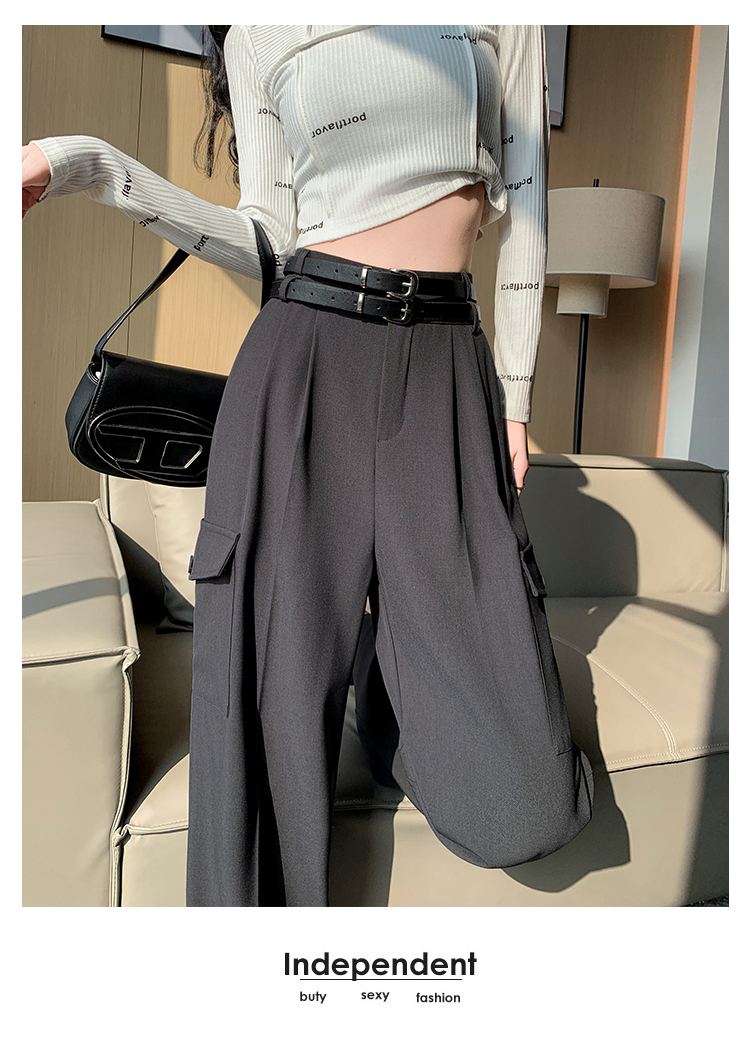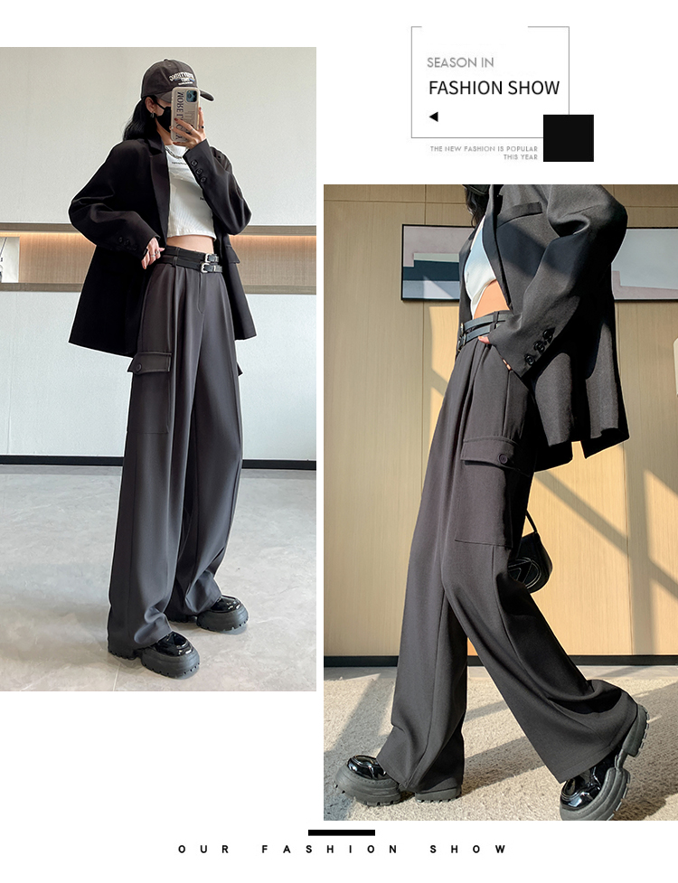 RM33570#工装休闲裤子女2024新款西装裤百搭日系慵懒坠感阔腿长裤