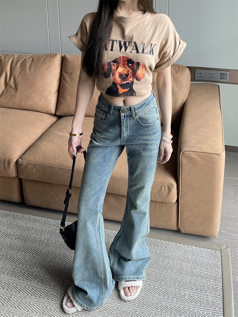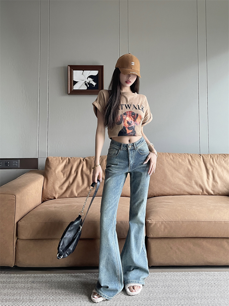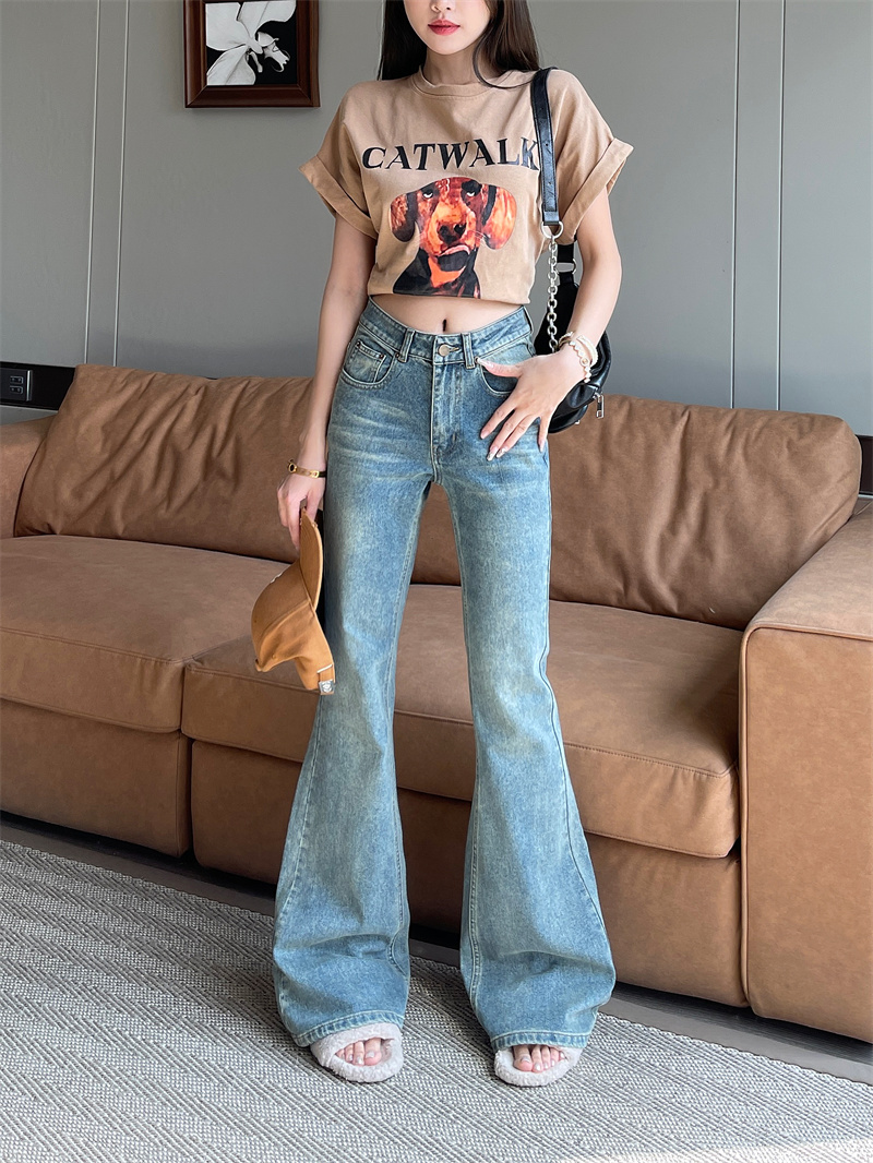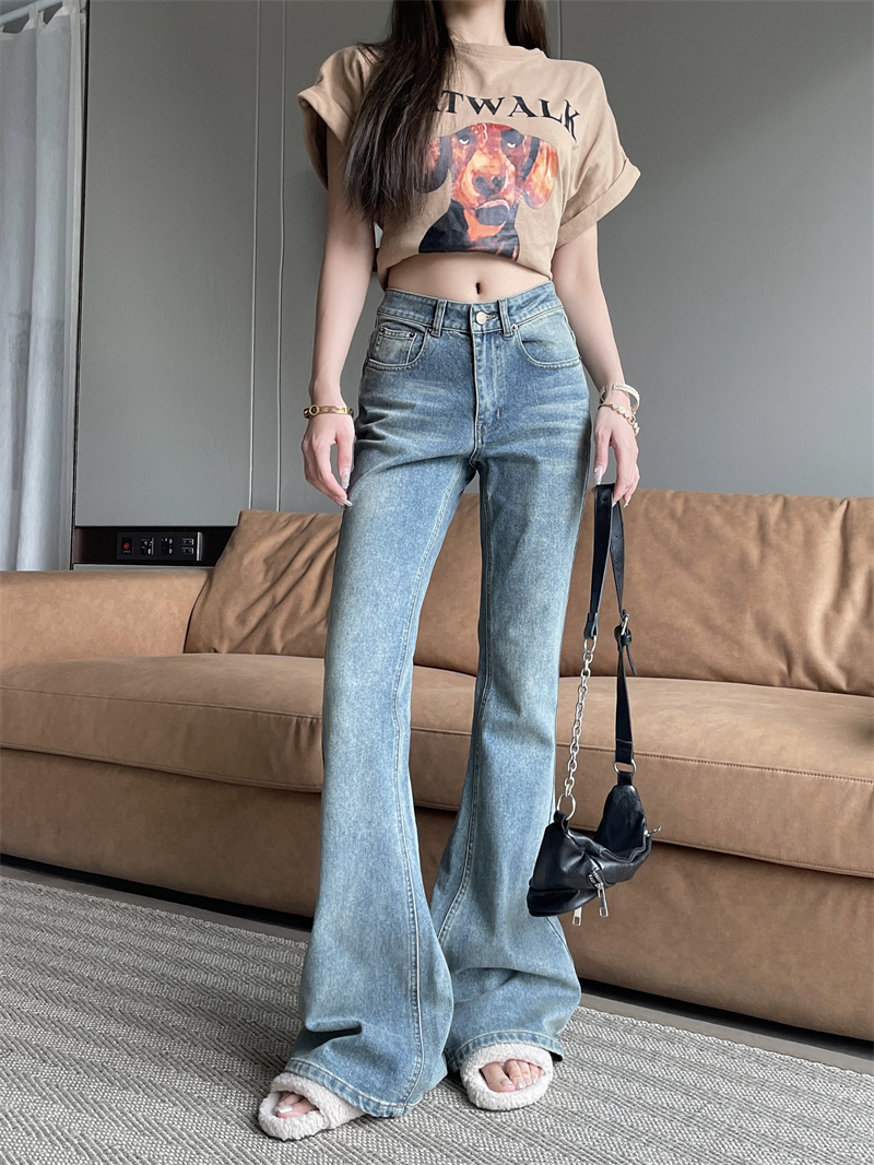 RM33582#复古怀旧百搭显瘦牛仔裤休闲喇叭裤长裤拖地裤女