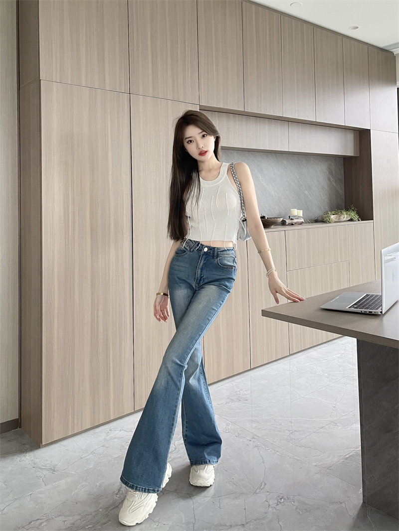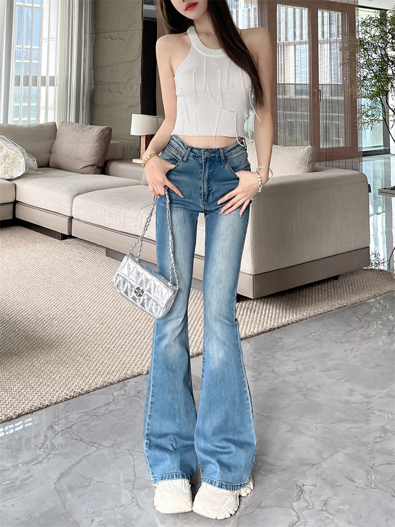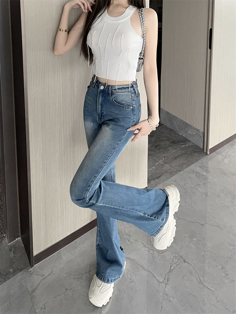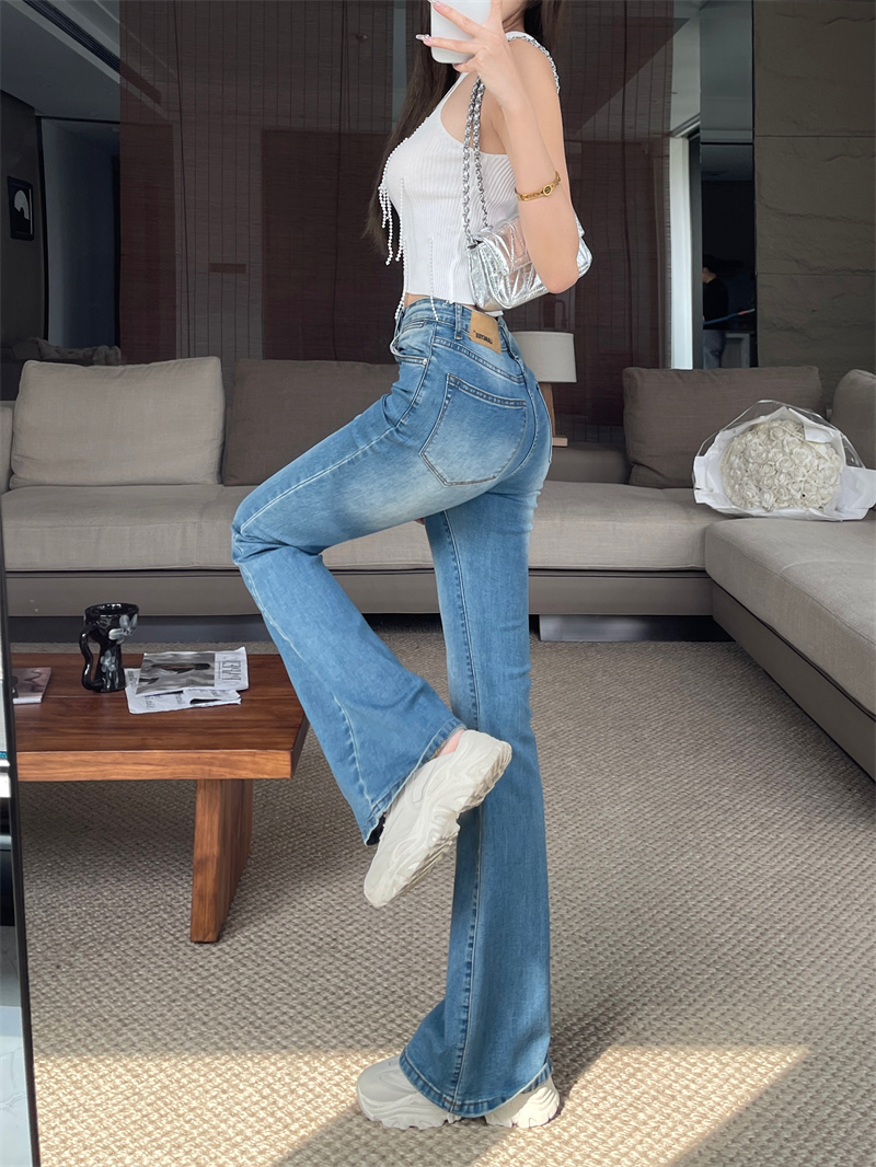 RM33583#复古显瘦高腰牛仔裤百搭微喇叭休闲弹力长裤女
