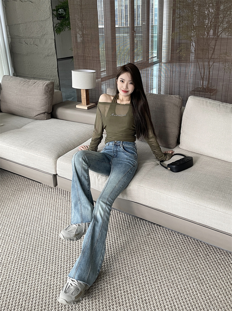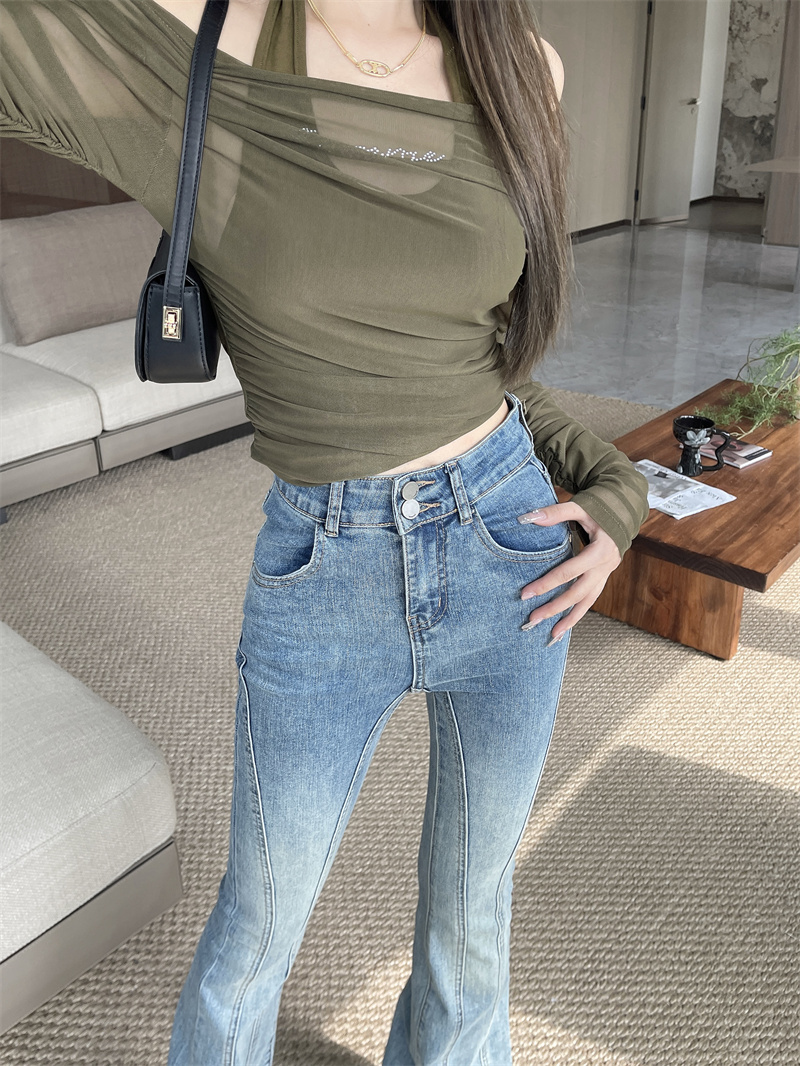 RM33584#显瘦喇叭裤弹力牛仔裤百搭休闲长裤女