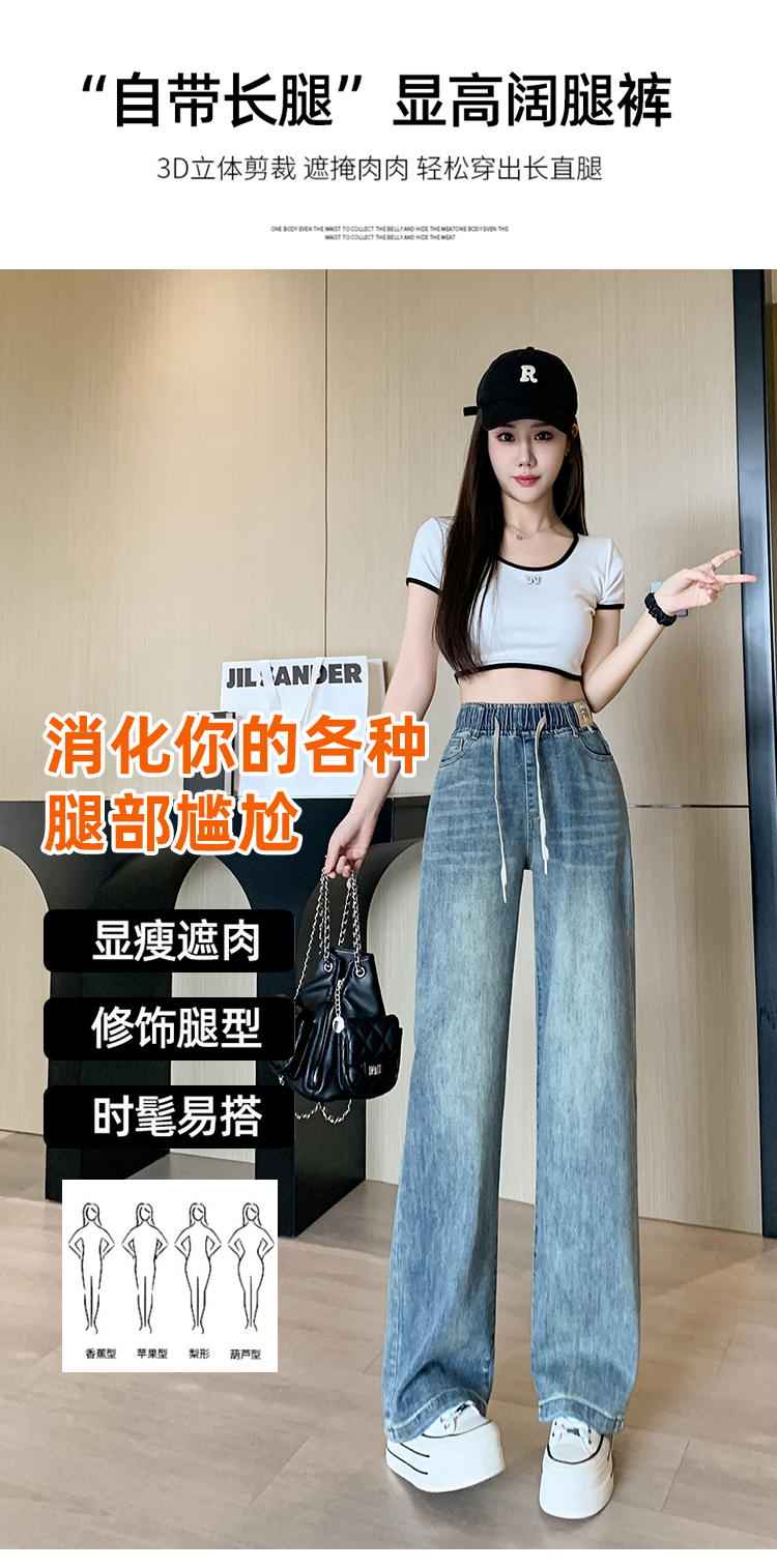 RM33664#牛仔裤女2024春夏新款百搭时尚高腰显瘦休闲简约阔腿长裤