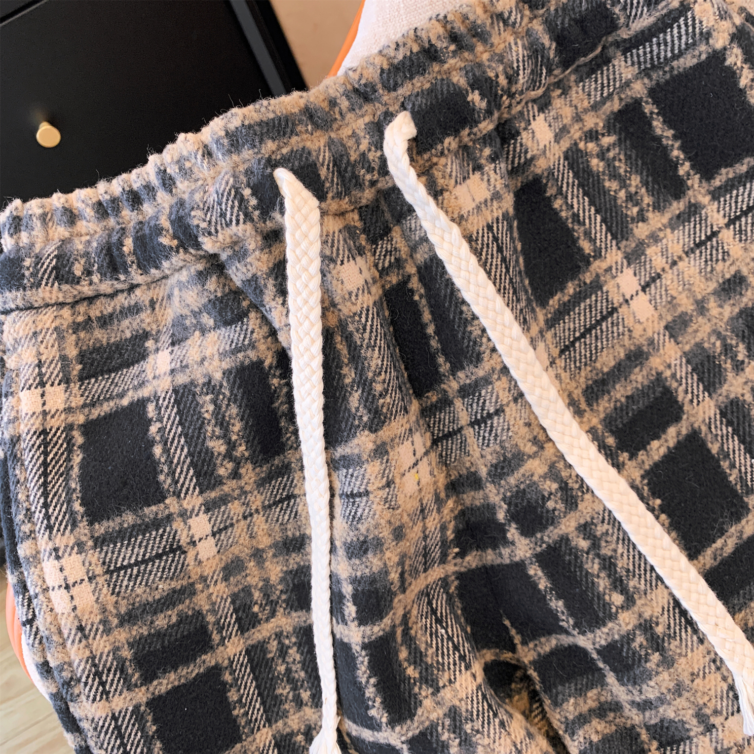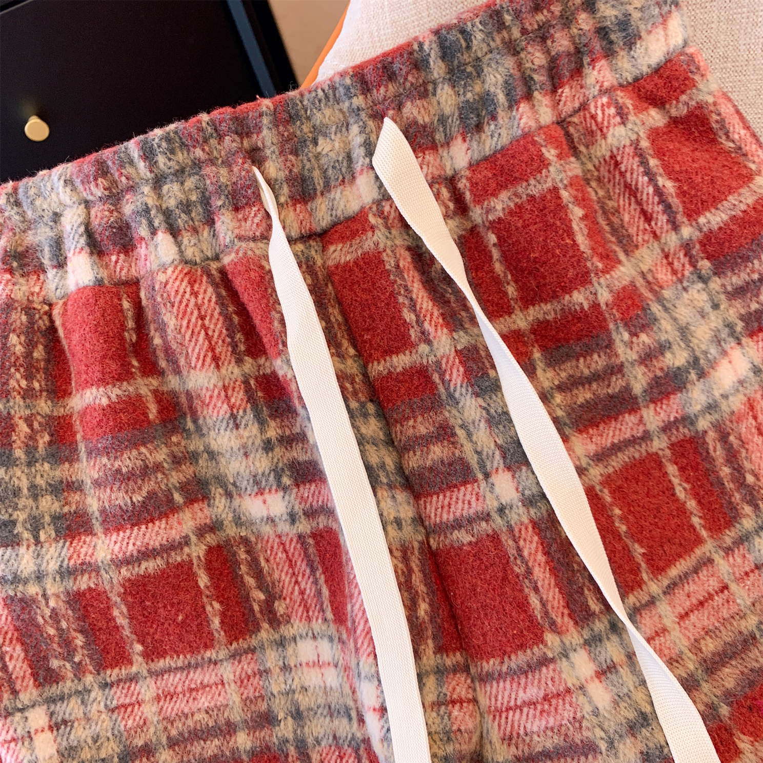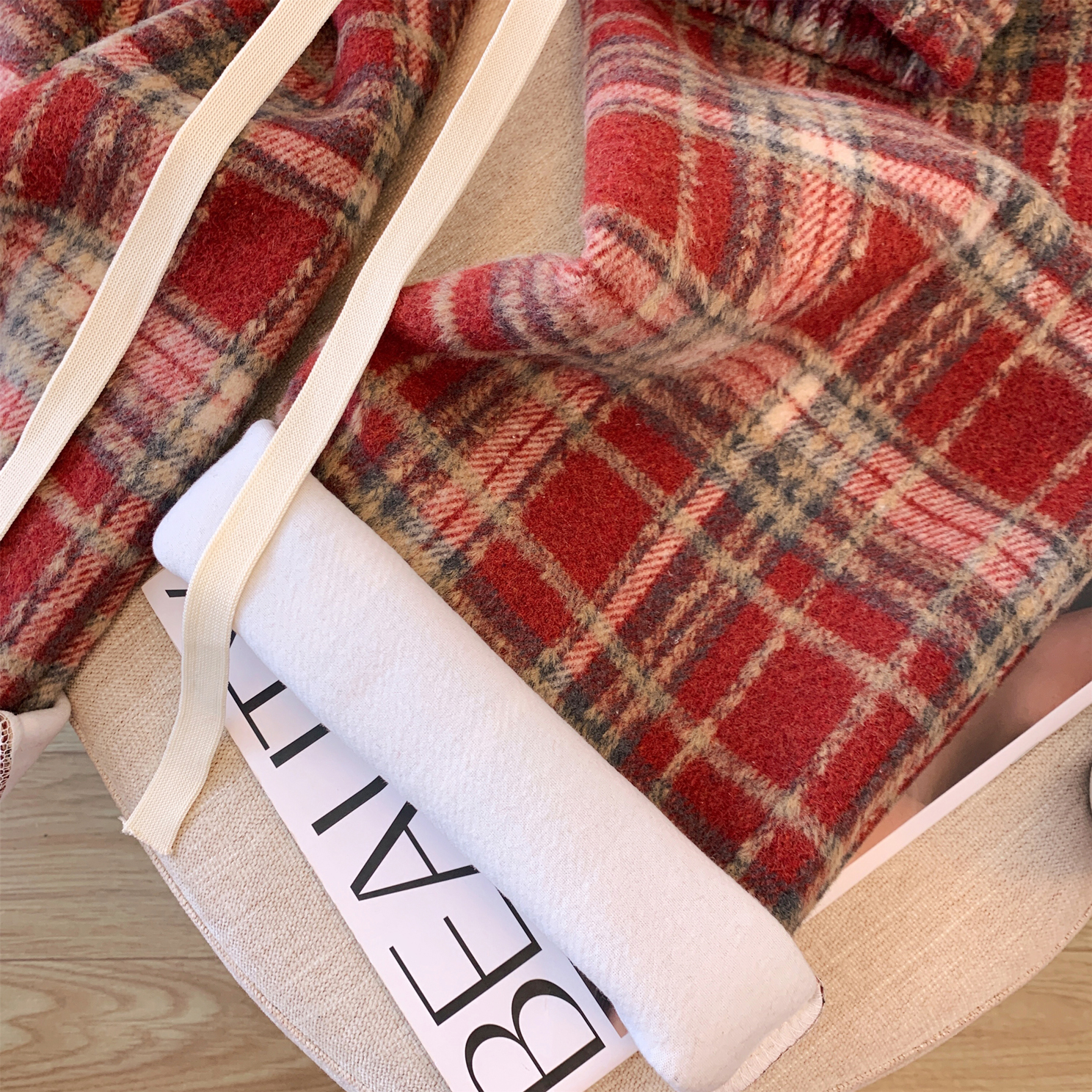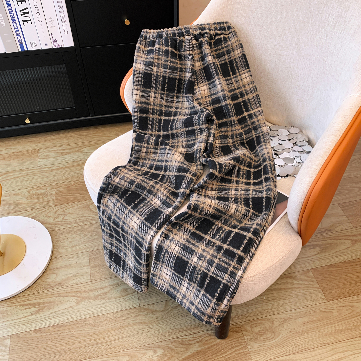RM33729#新款格子长裤百搭显瘦宽松女加绒休闲裤