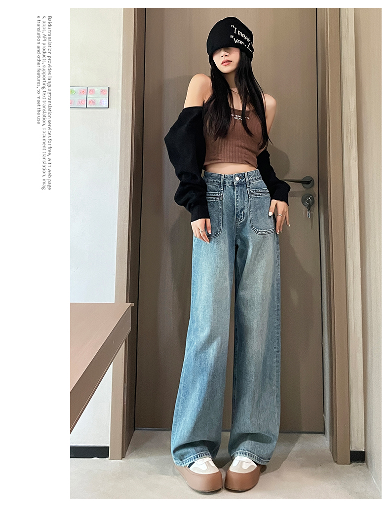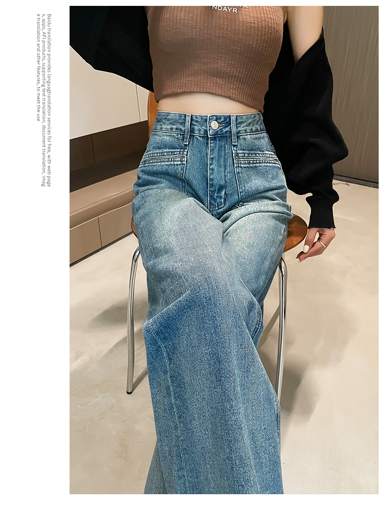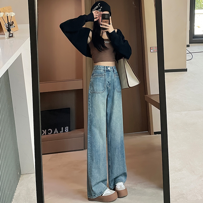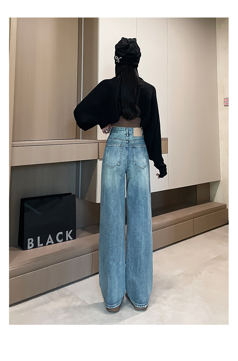 RM33777#蓝色窄版阔腿牛仔裤 新款早春高腰显瘦直筒宽松复古拖地裤