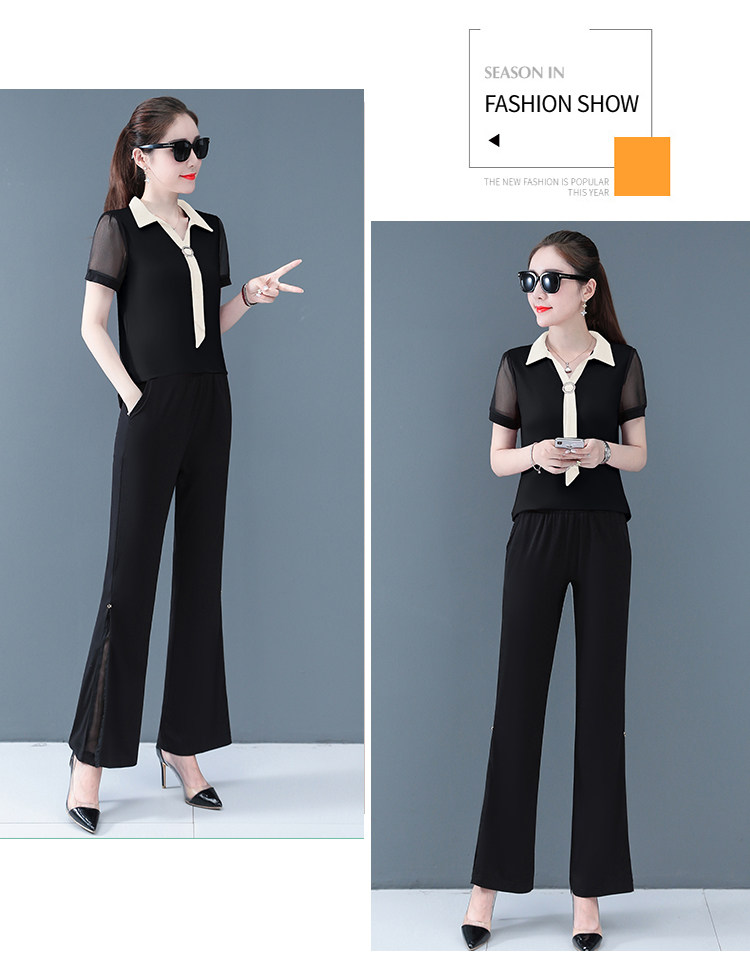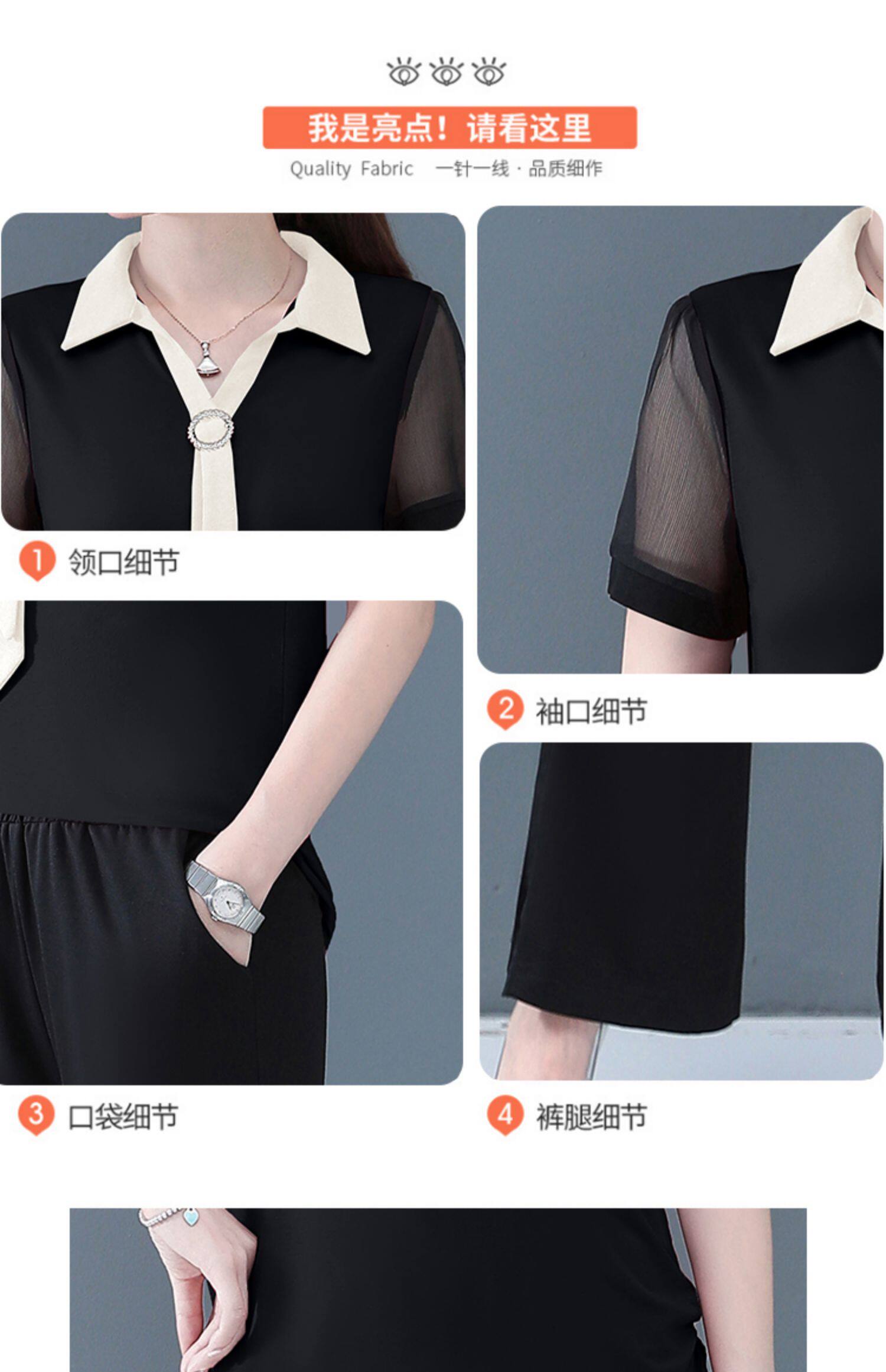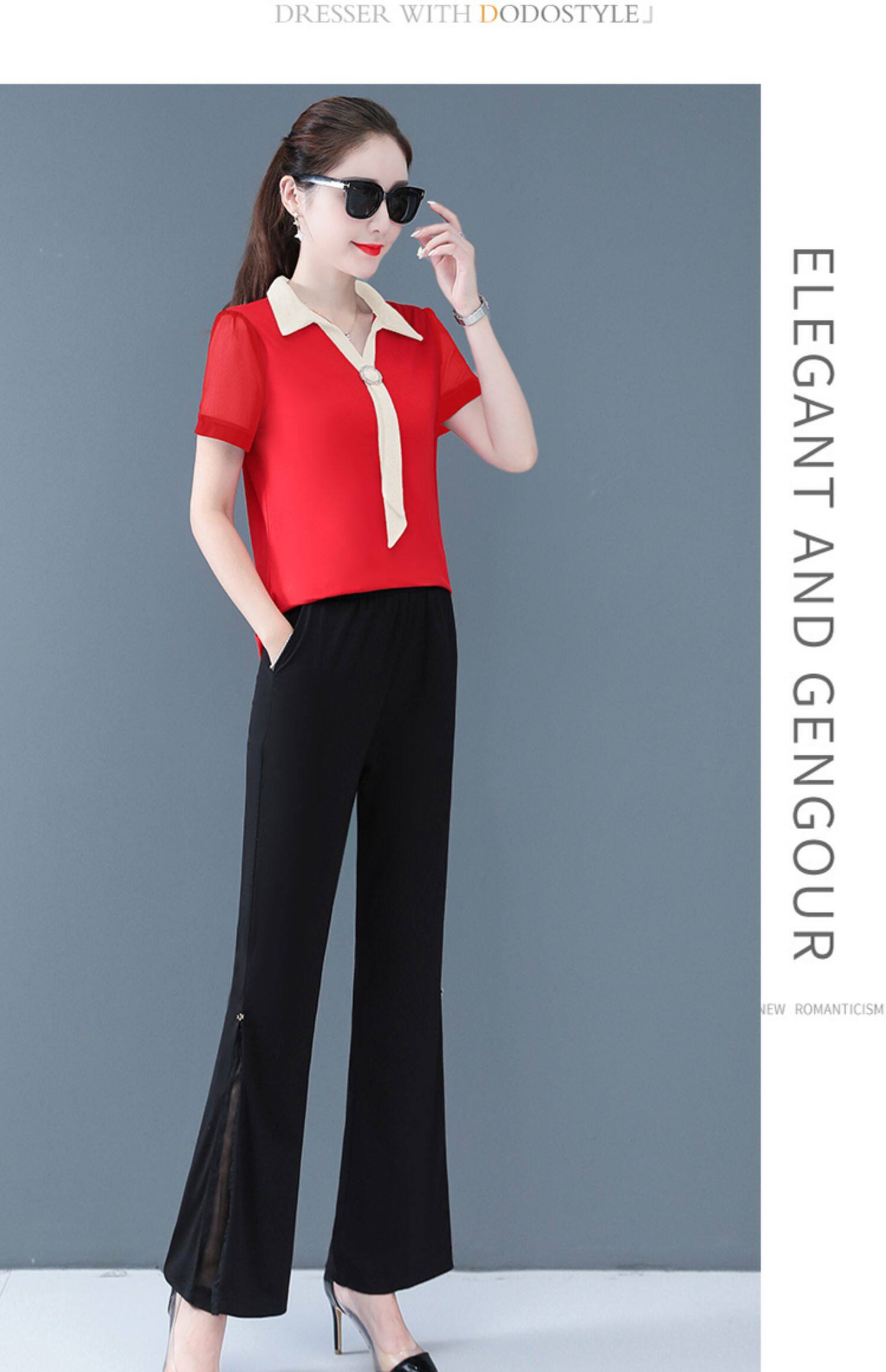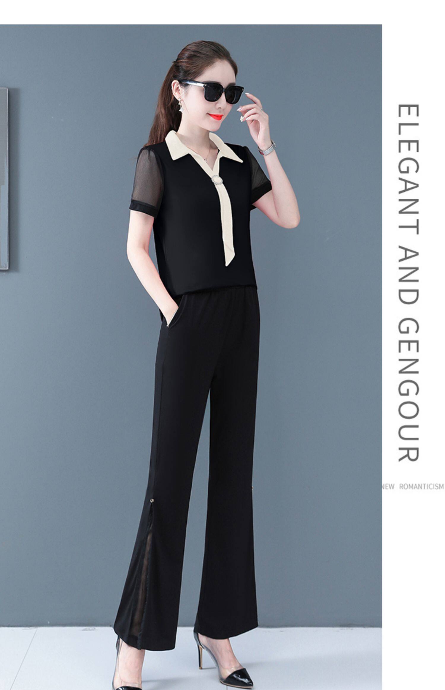 RY2729#赫本风御姐阔脚裤套装女夏季新款洋气轻熟气质休闲套装