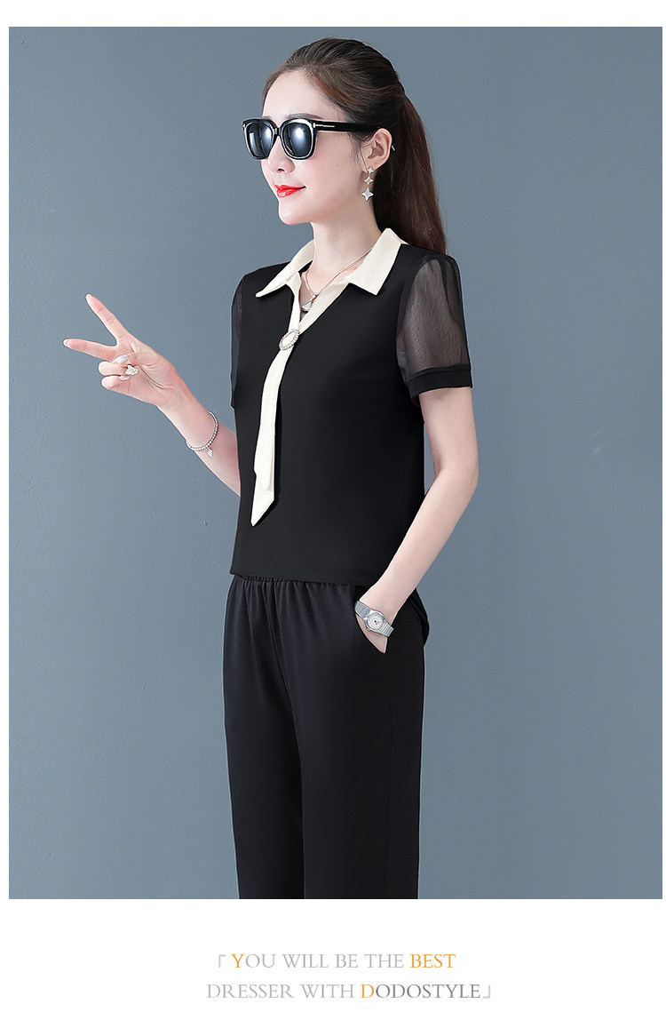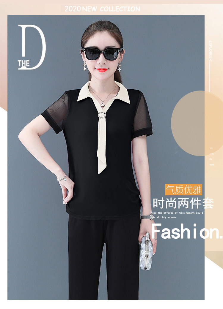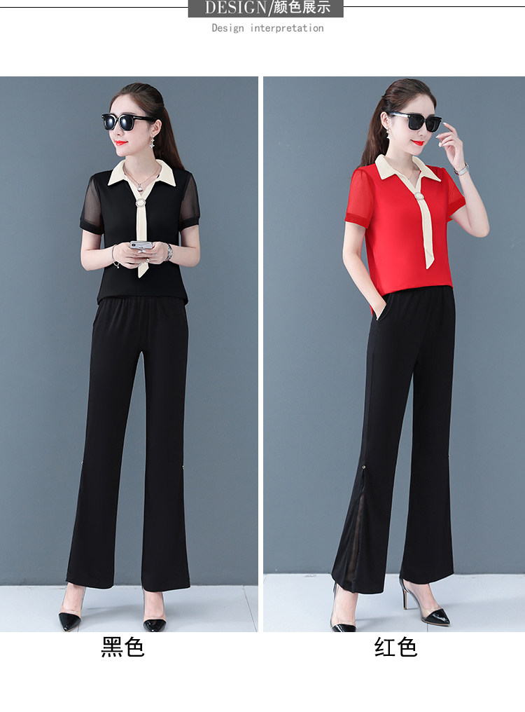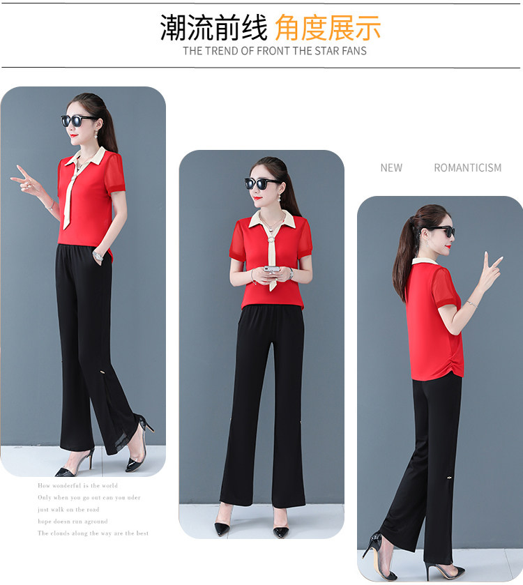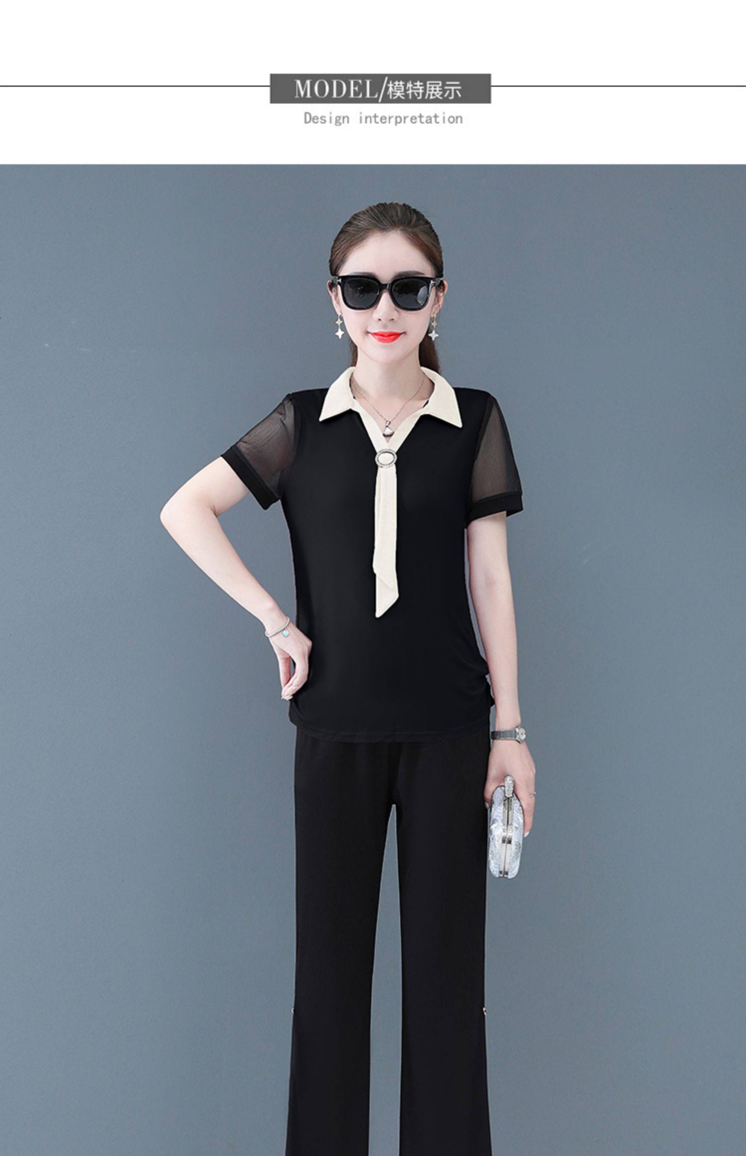 RY2729#赫本风御姐阔脚裤套装女夏季新款洋气轻熟气质休闲套装