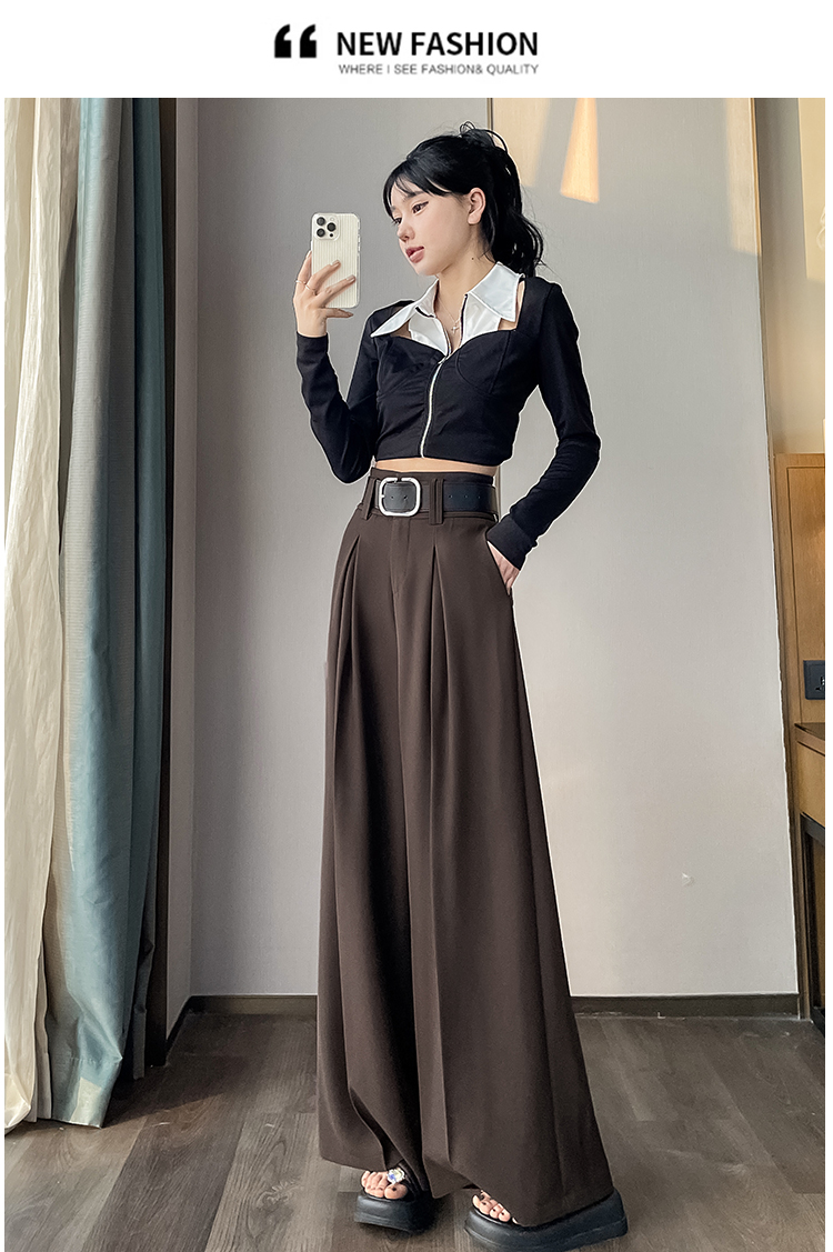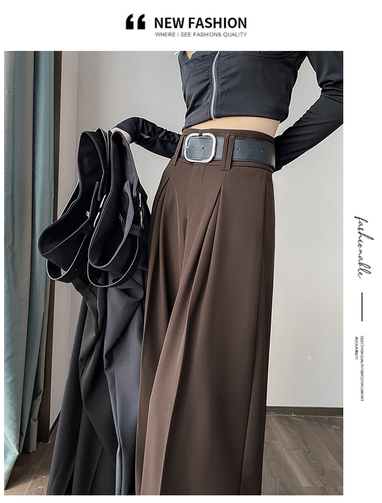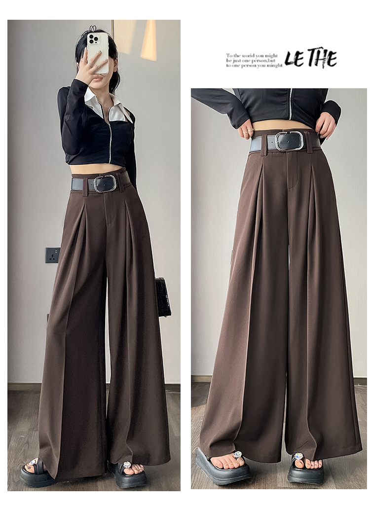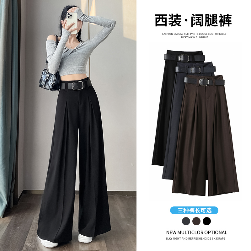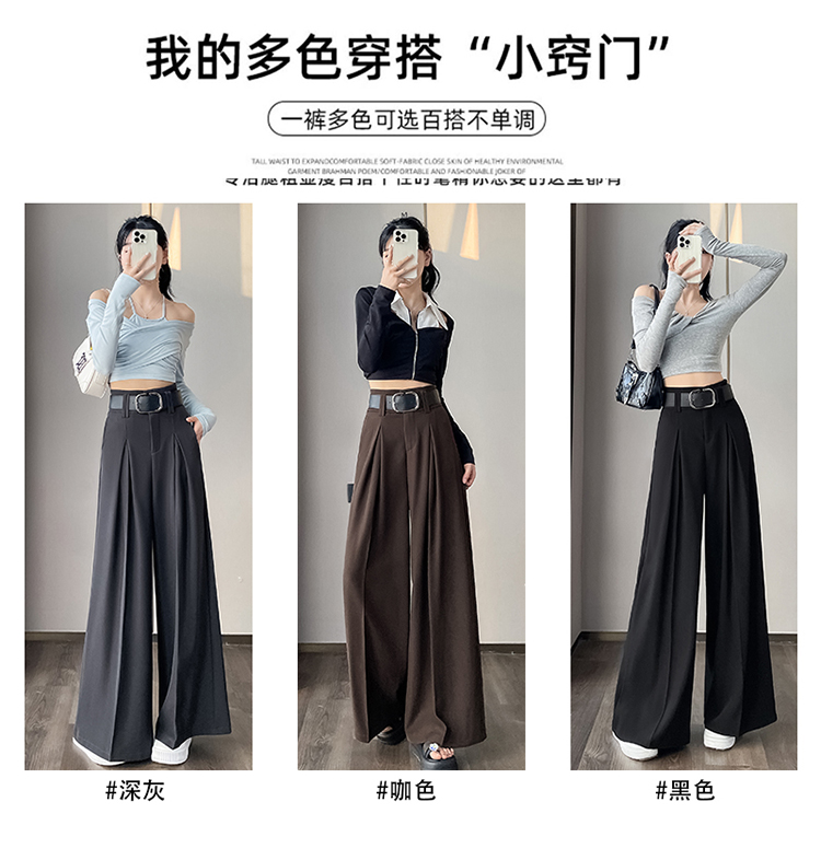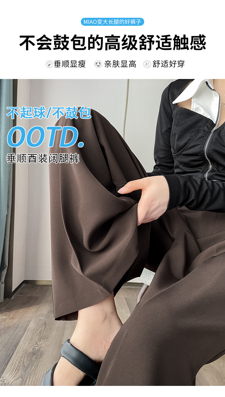 RM33812#新款高腰显瘦休闲西装裤女宽松垂感卡其色阔腿裤拖地长裤