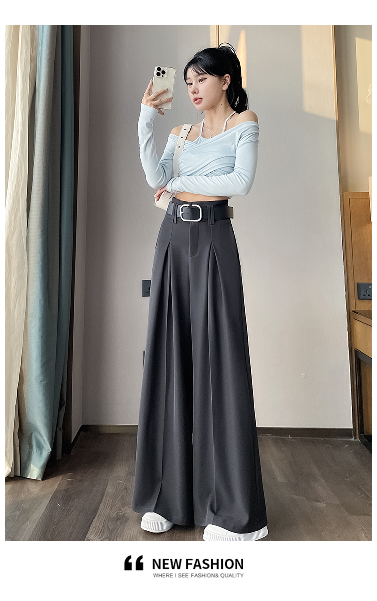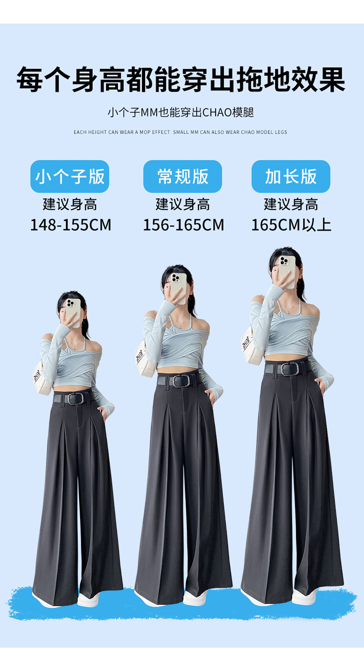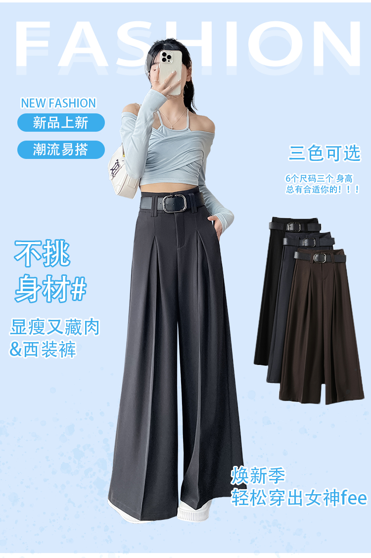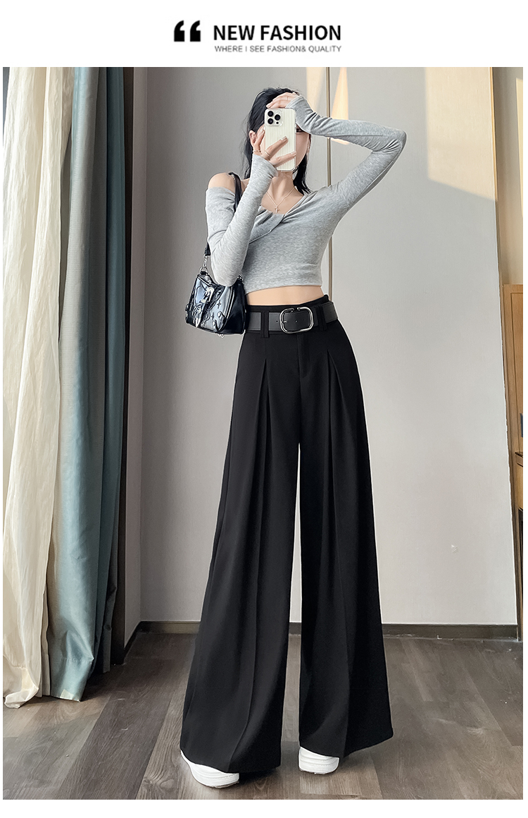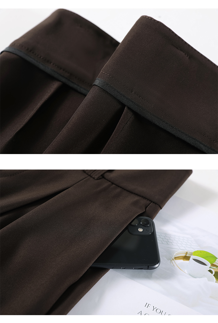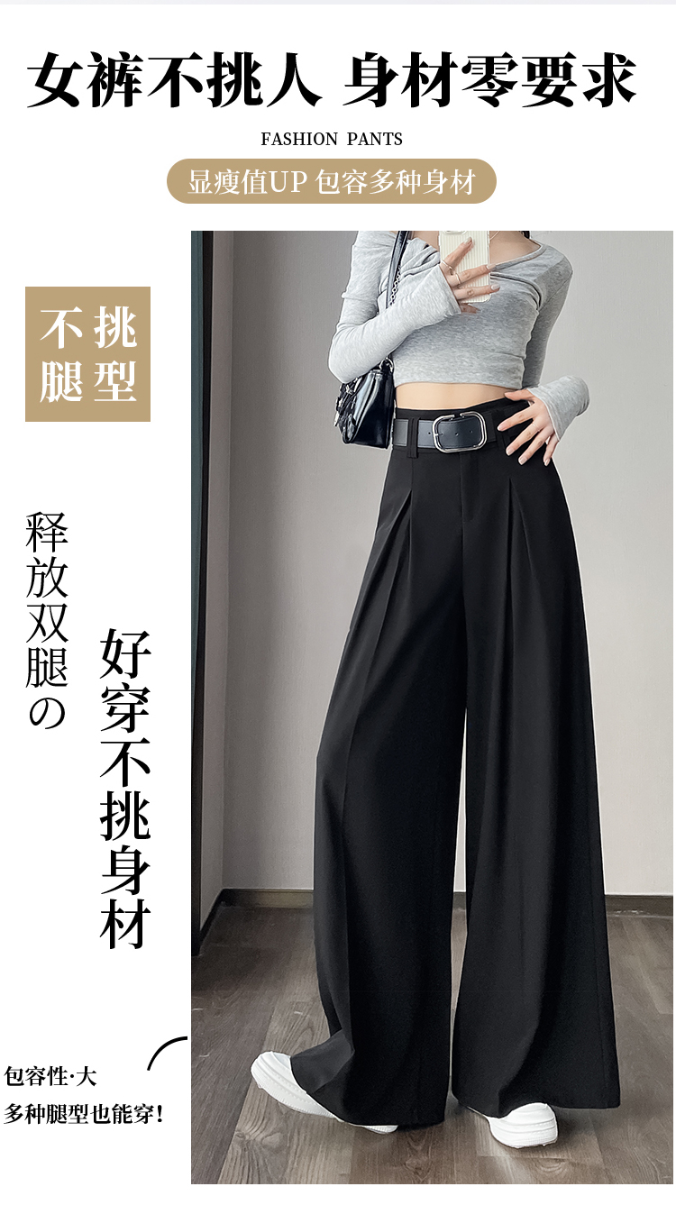 RM33812#新款高腰显瘦休闲西装裤女宽松垂感卡其色阔腿裤拖地长裤